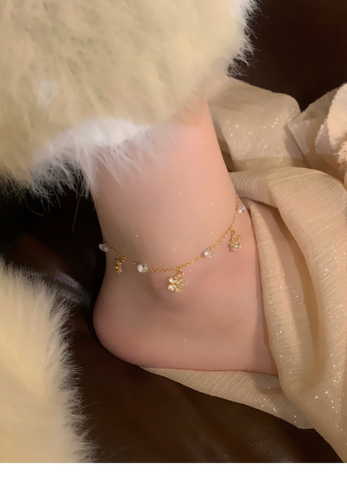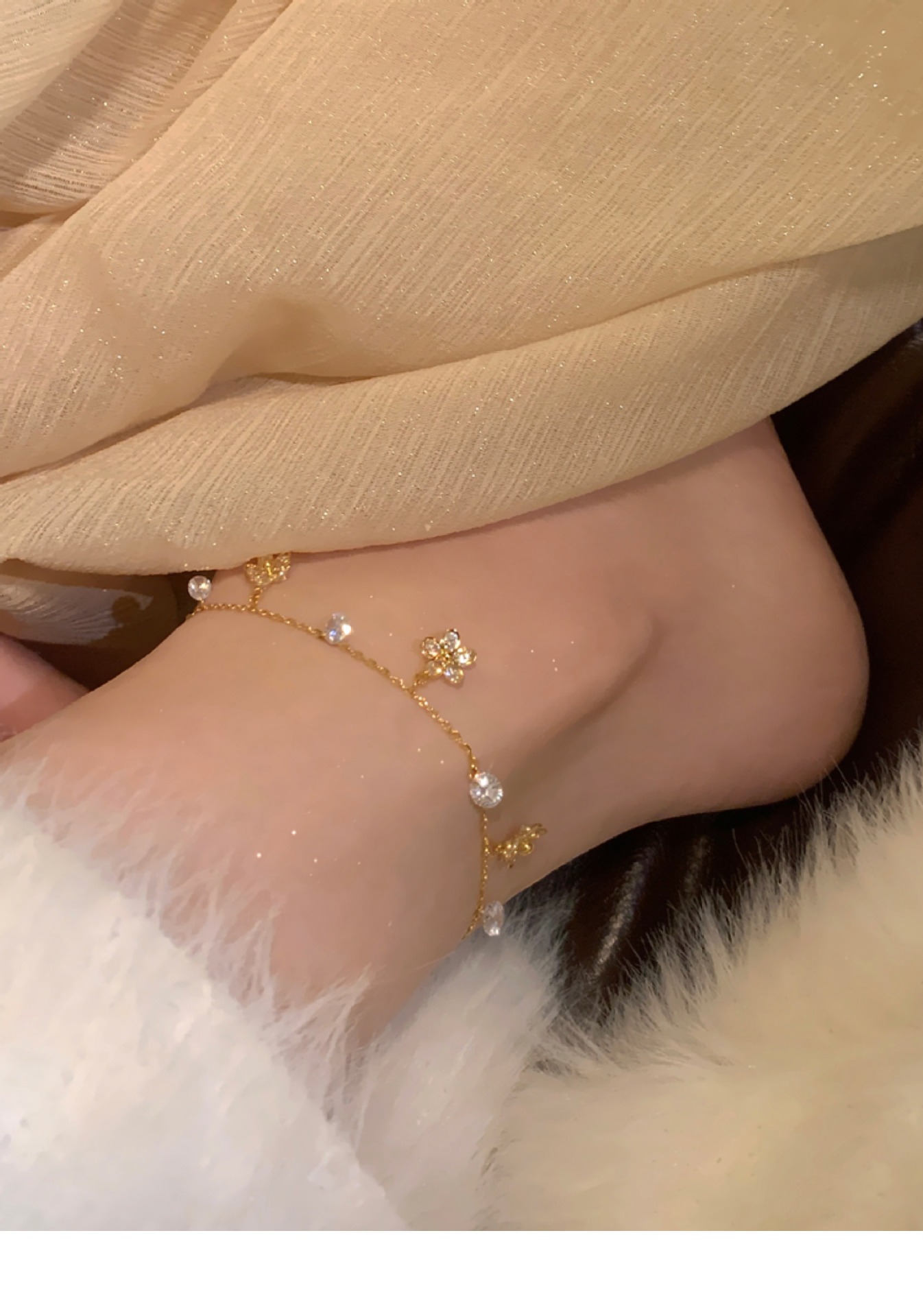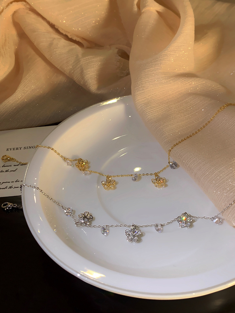 Cadenas de flores redondas de circón, temperamento de nicho simple femenino, anillo de pie de todo fósforo de moda, lujo ligero, adornos de pies de alta calidad al por mayor