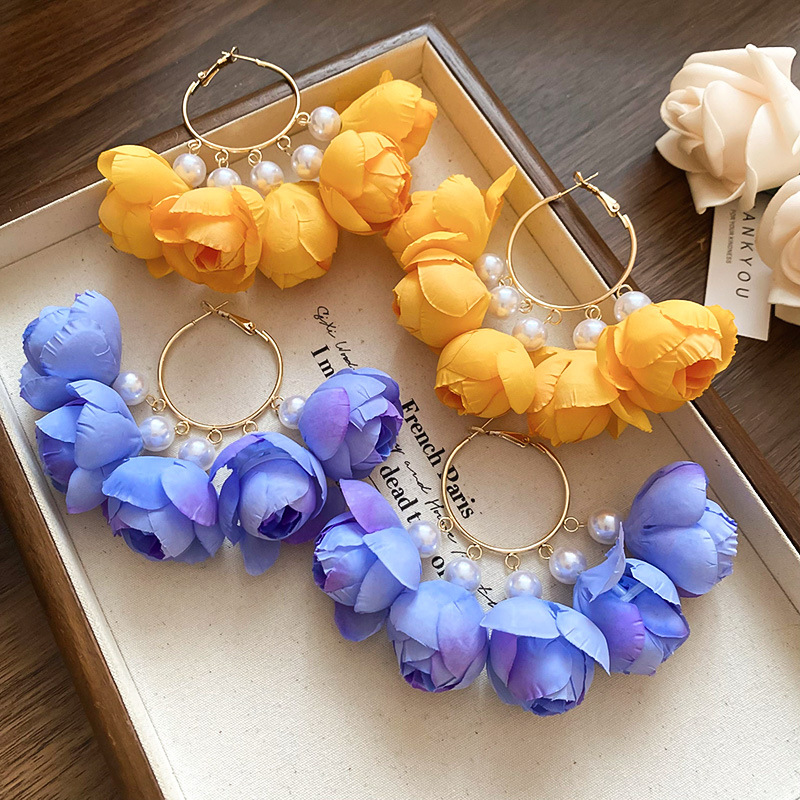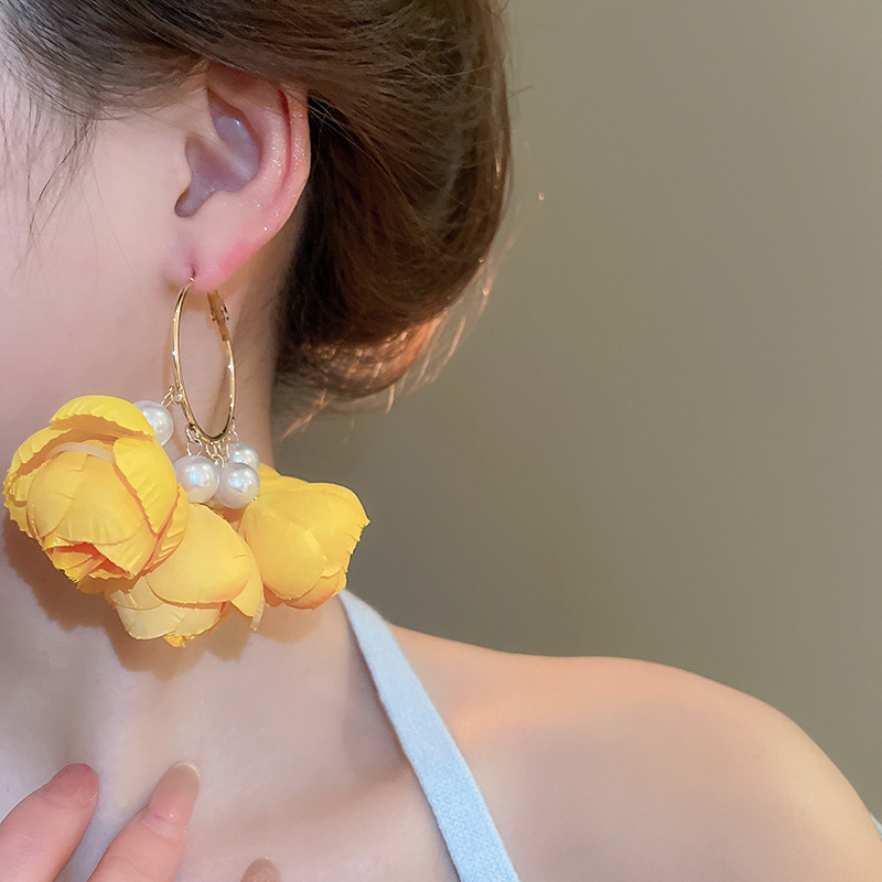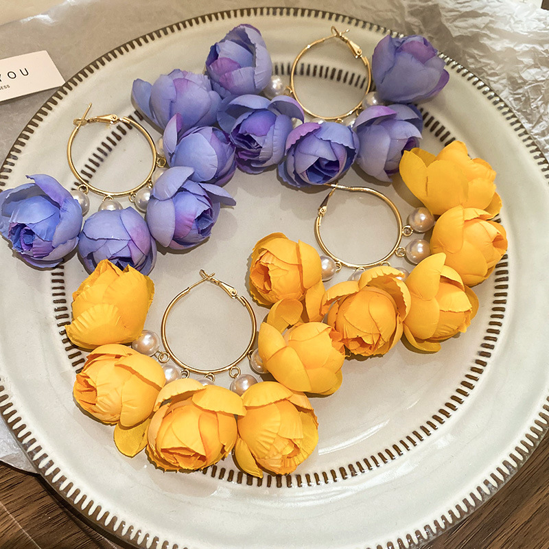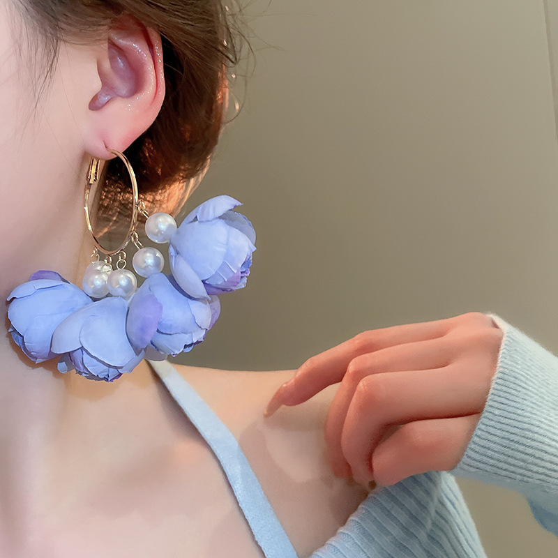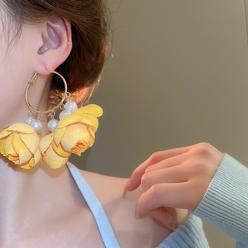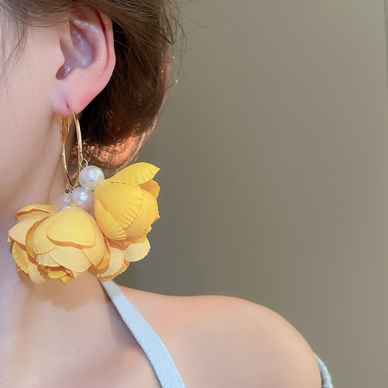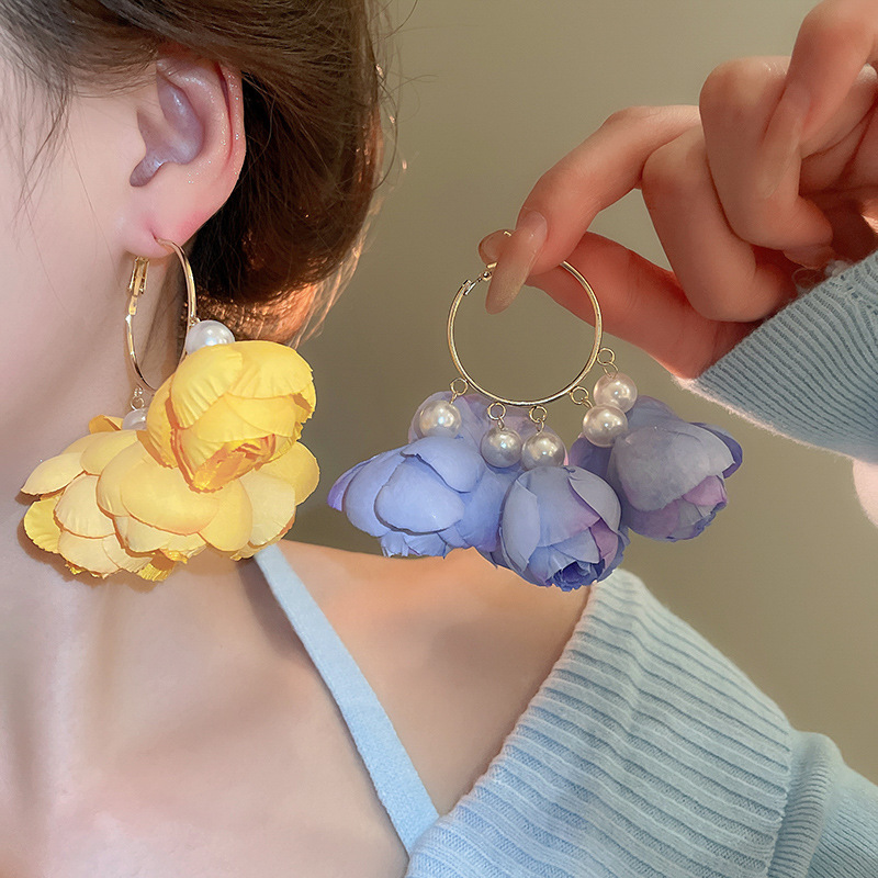 Pendientes de borla de flor de tela de aguja de plata Pendientes de estilo bohemio súper hada femenina Pendientes de moda femenina