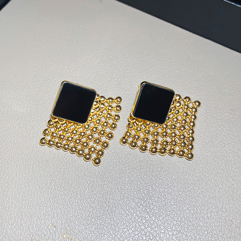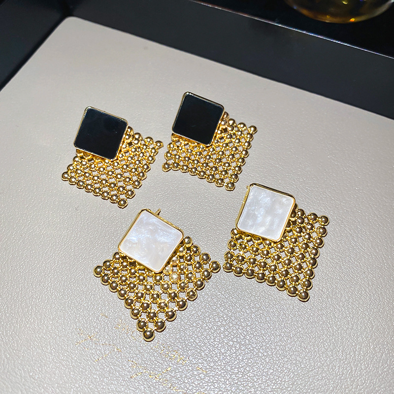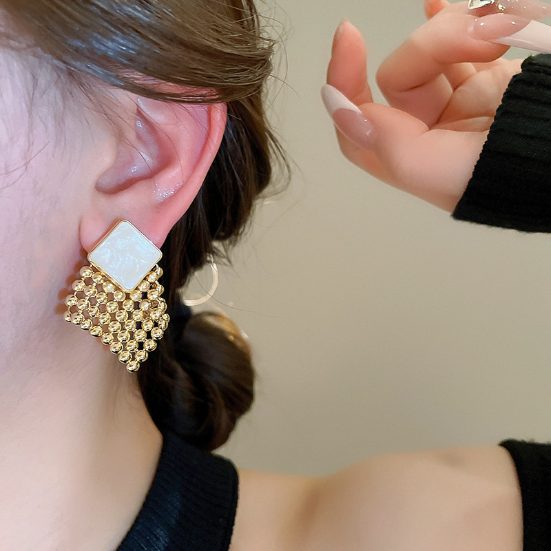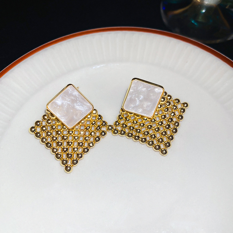 Pendientes en forma de diamante tejidos con aguja de plata Pendientes de temperamento de alta gama de lujo ligero Pendientes de todo fósforo de moda de nicho retro femenino