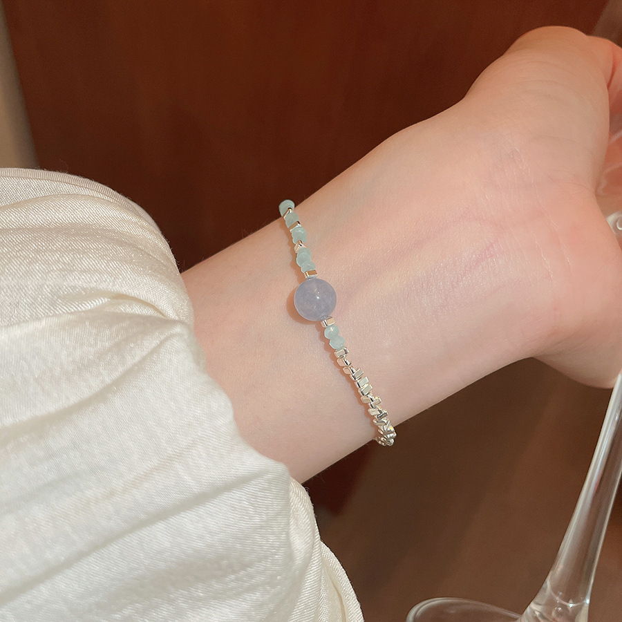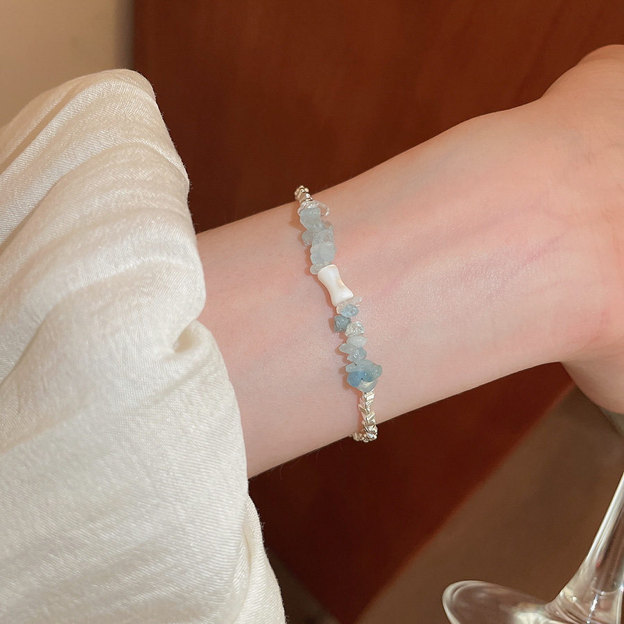 Pulsera de cristal optimizada de piedra biliar negra de aguamarina pulsera fresca, dulce y sencilla de todo fósforo