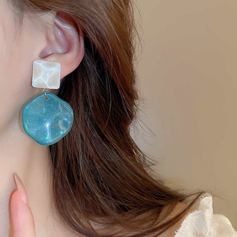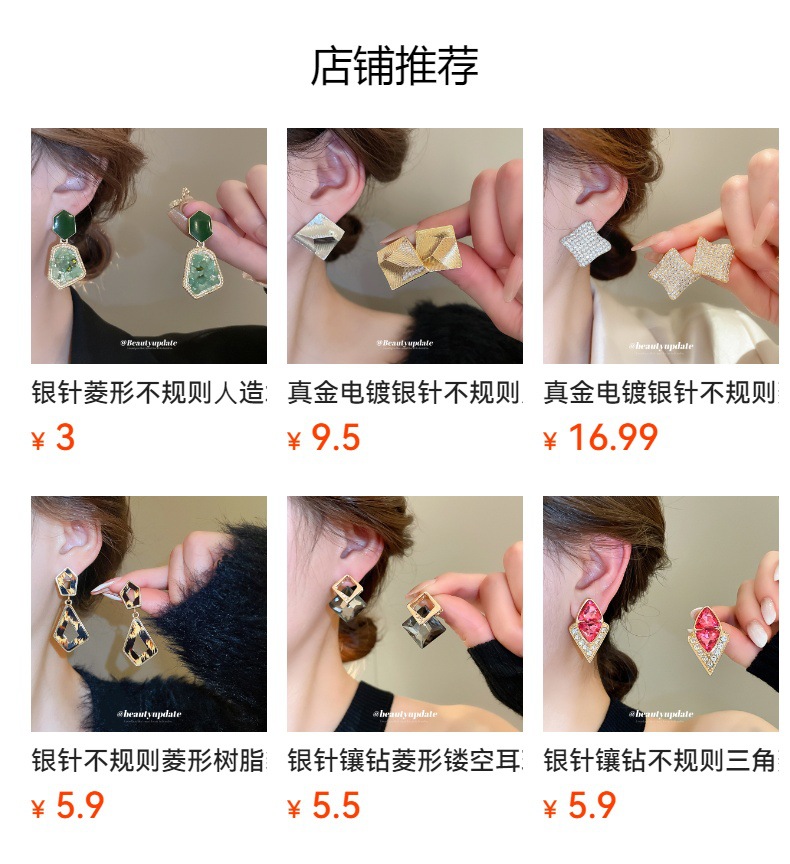 Pendientes de camarones en forma de diamante irregular con aguja de plata Pendientes de temperamento dulce femenino Pendientes de todo fósforo de moda femenina