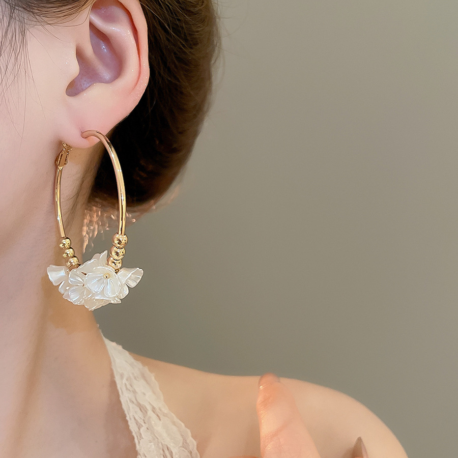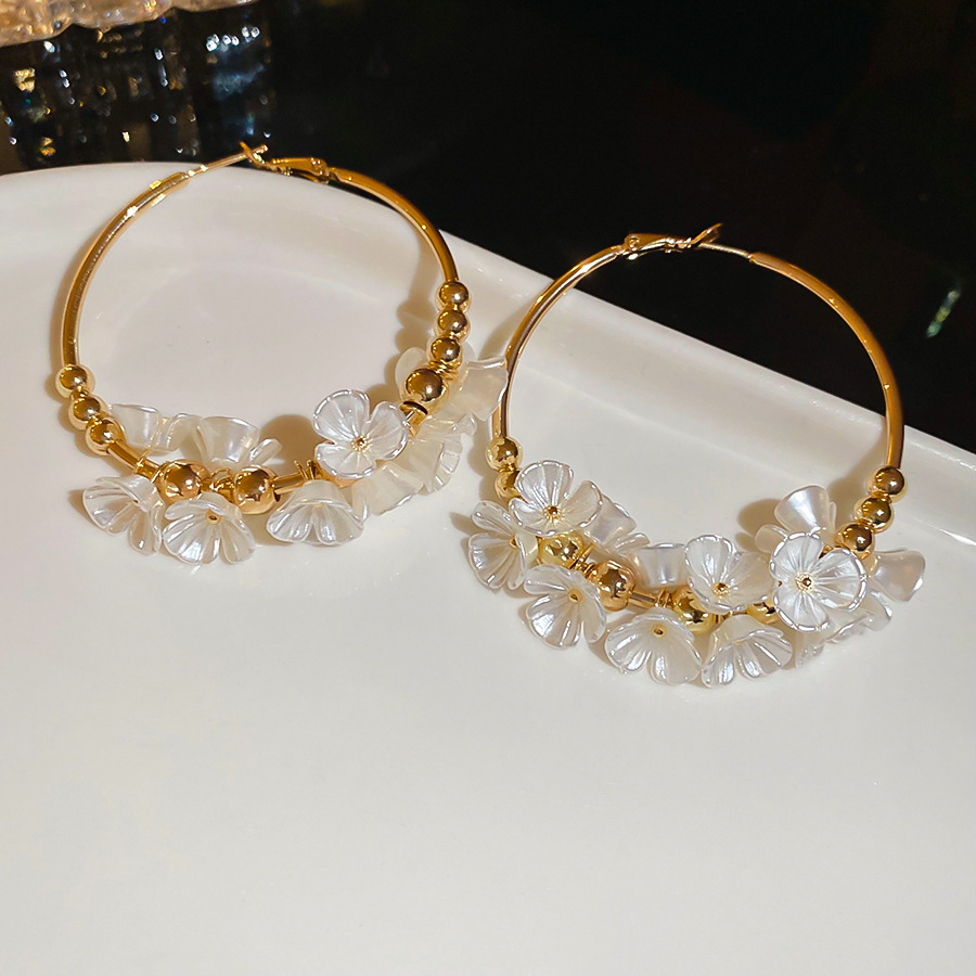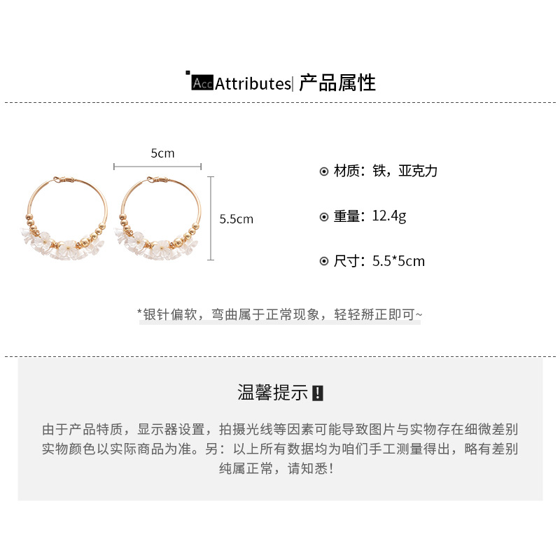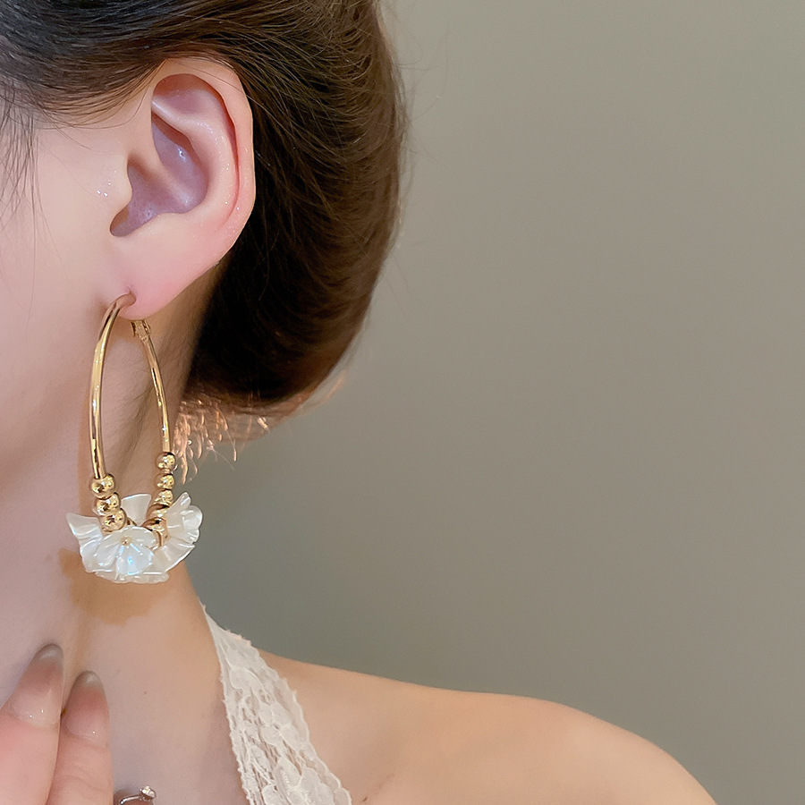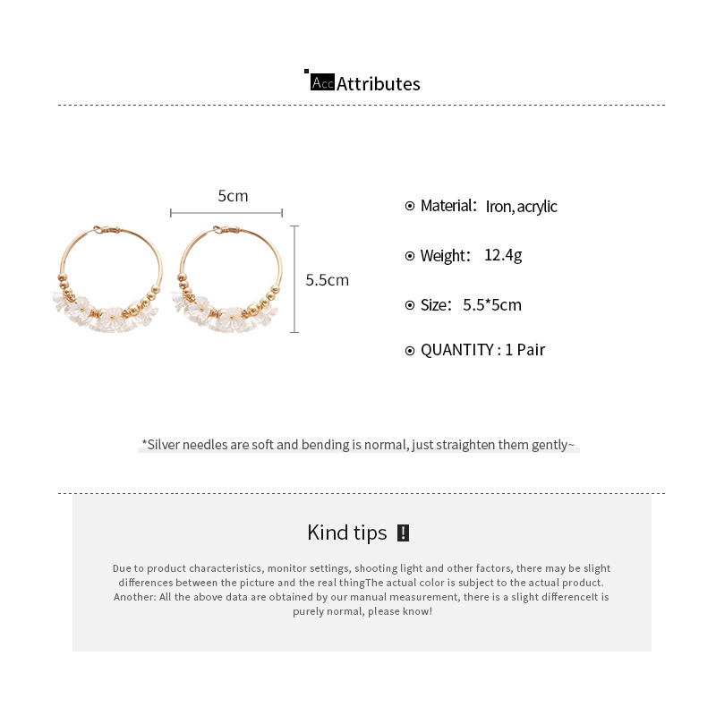 Aguja de plata Acrílico Flor Orejas redondas Pendientes de temperamento de viento frío europeo y americano Pendientes de lujo ligero de alta calidad Mujeres