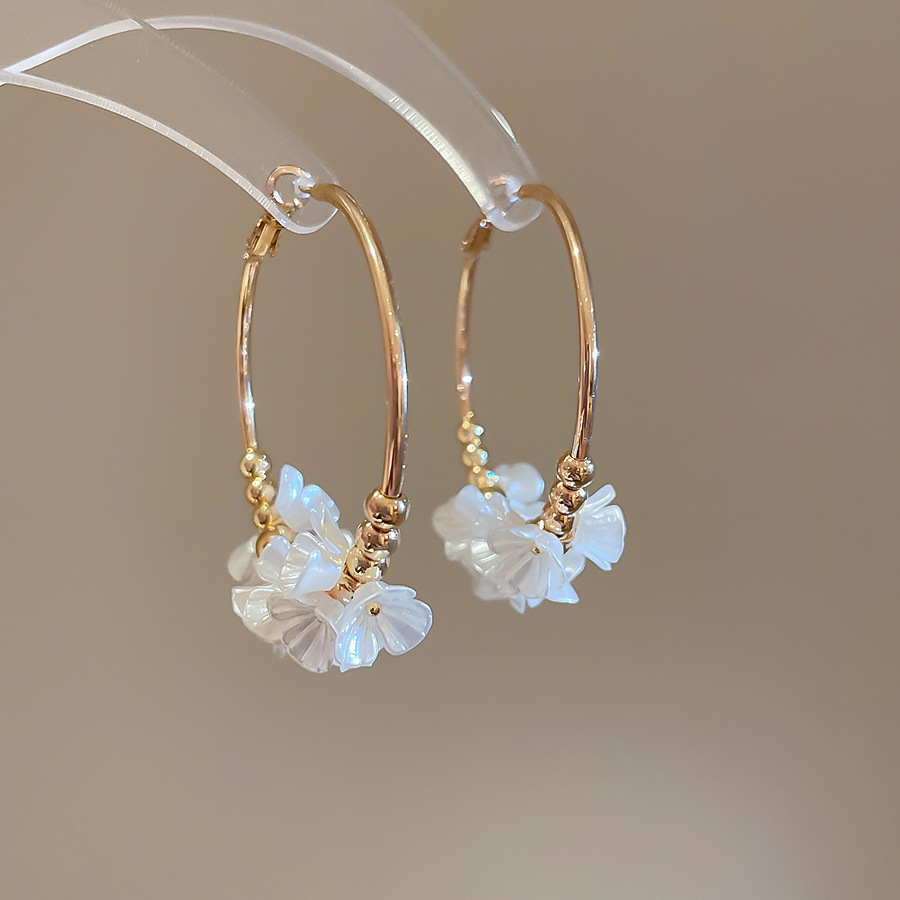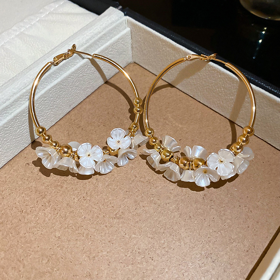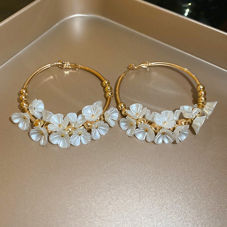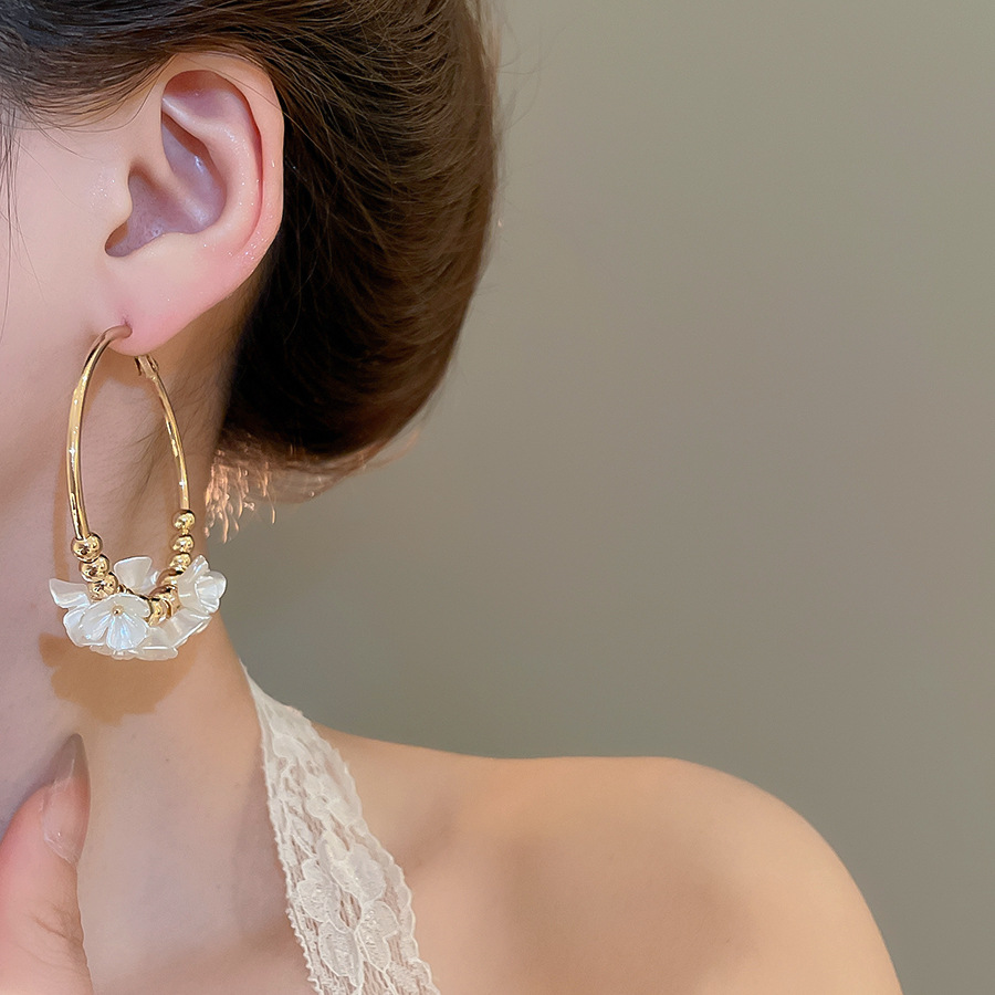 Aguja de plata Acrílico Flor Orejas redondas Pendientes de temperamento de viento frío europeo y americano Pendientes de lujo ligero de alta calidad Mujeres