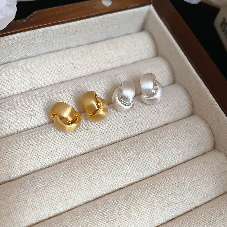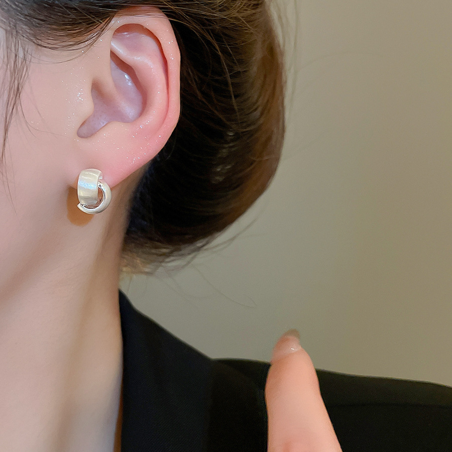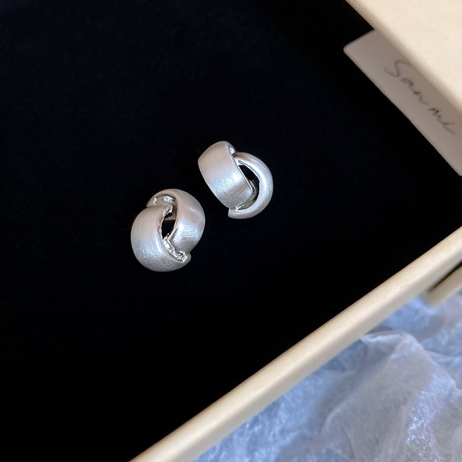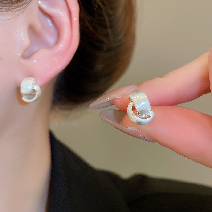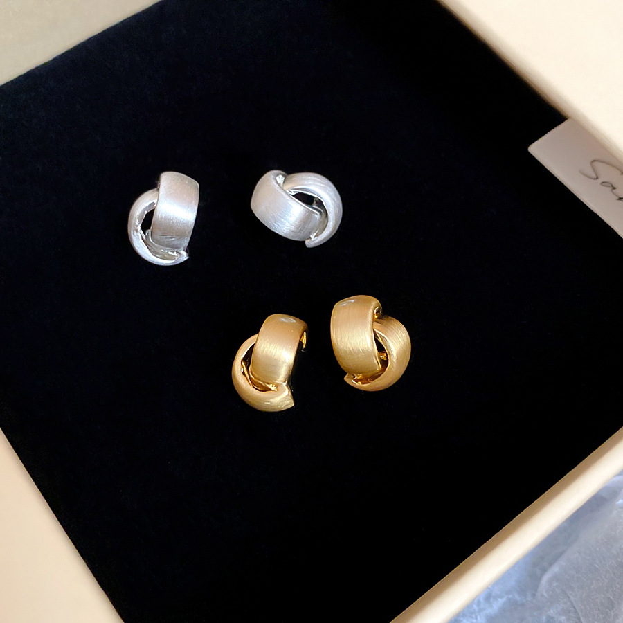 Pendientes en forma de C de metal cepillado irregular con aguja de plata Pendientes de estilo frío de Europa y América Pendientes de lujo ligero de alta calidad