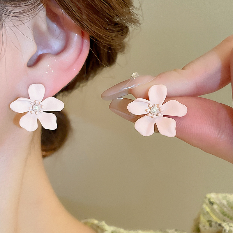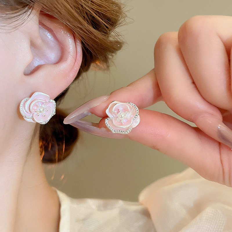 Aguja de plata Pendientes de flores dulces rosas Pendientes lindos de todo fósforo de la serie Mori Pendientes de diseño de moda de nicho al por mayor femenino