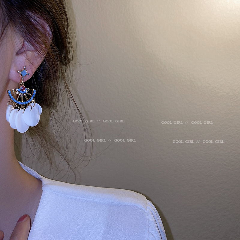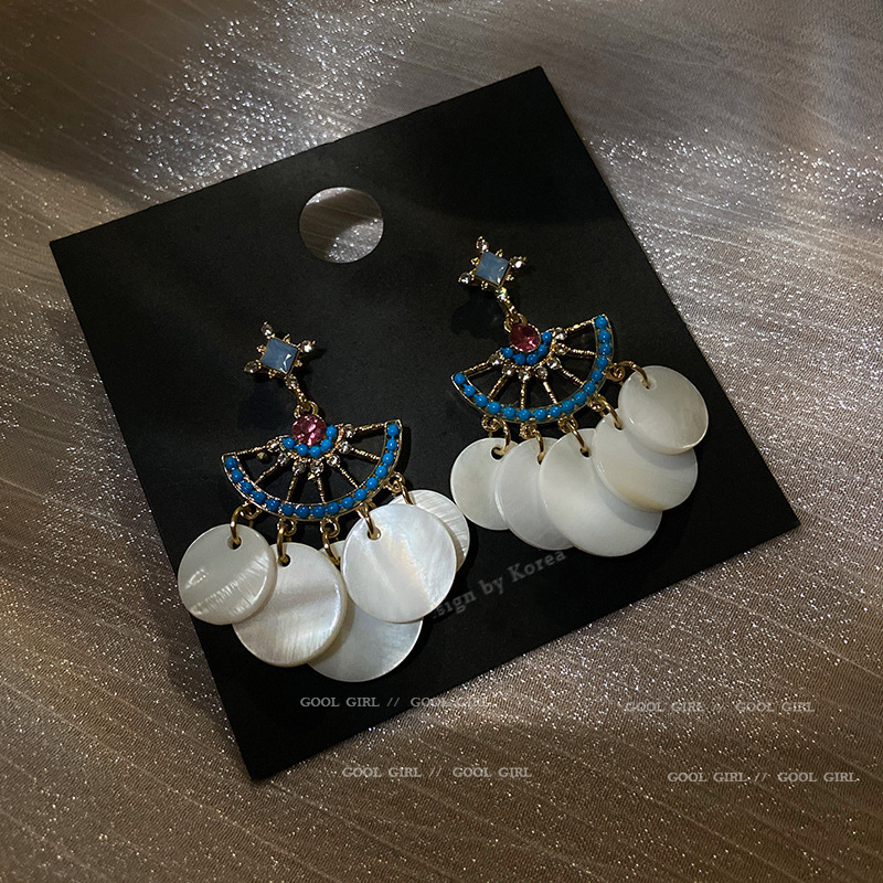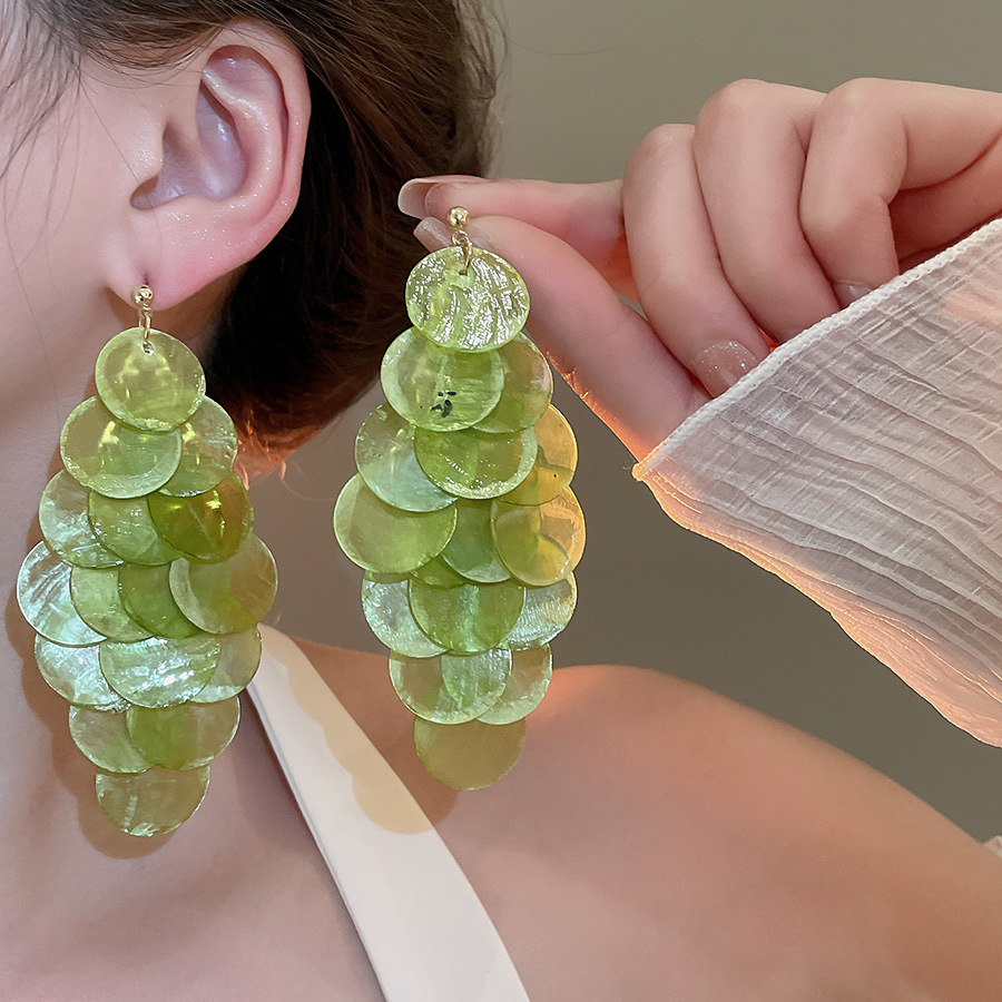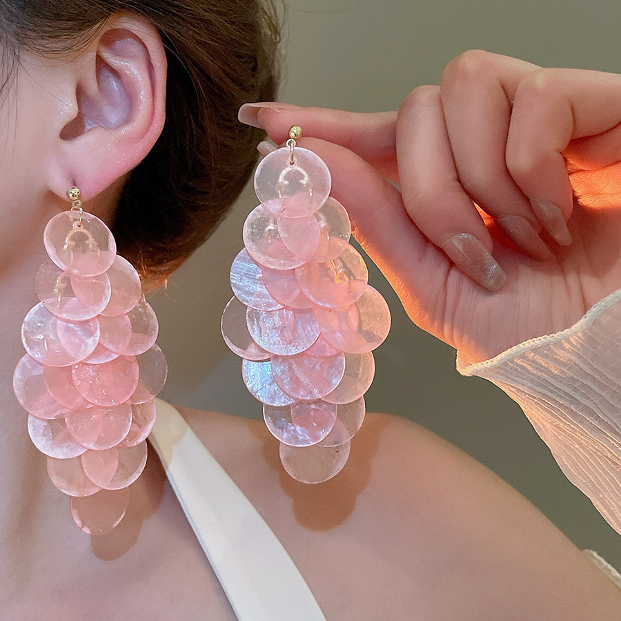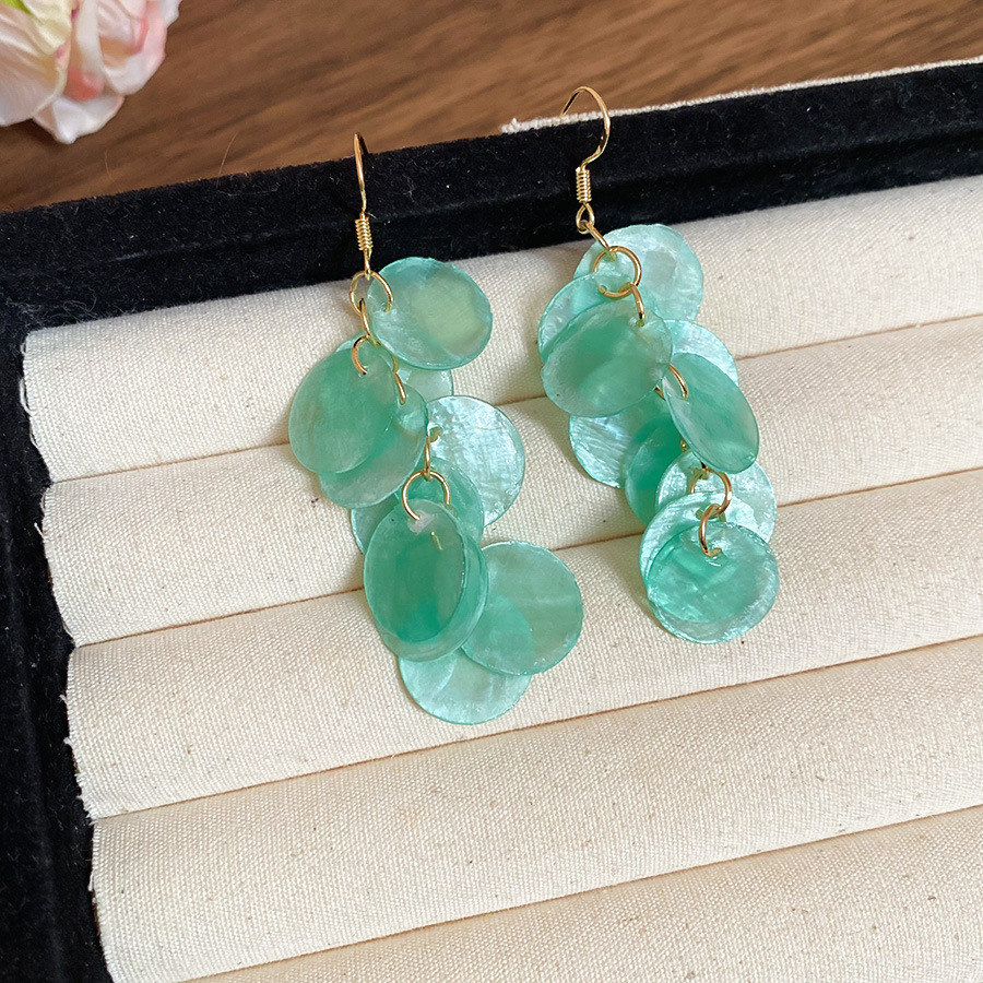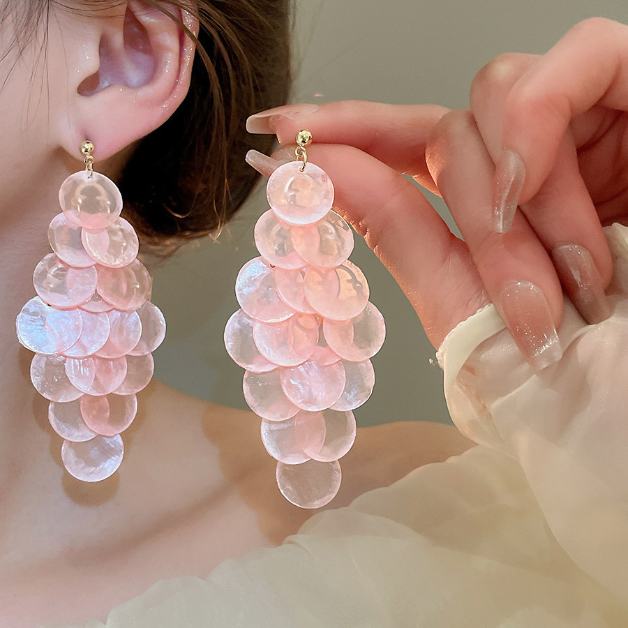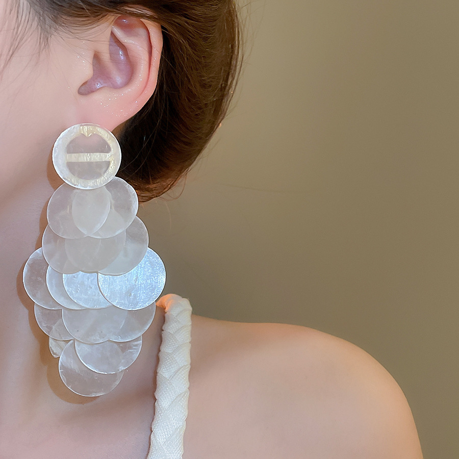 Pendientes de borla de concha redonda con aguja de plata Pendientes de temperamento de estilo de vacaciones junto al mar Pendientes de todo fósforo de alta gama de moda al por mayor