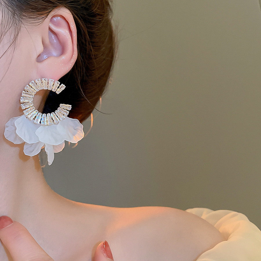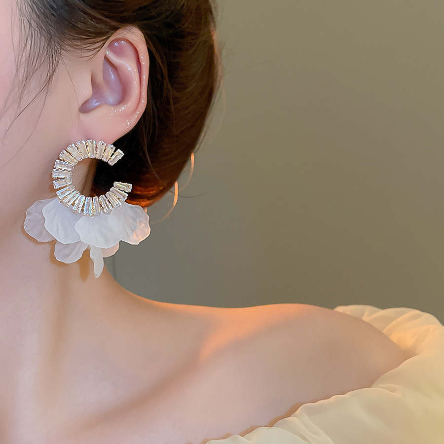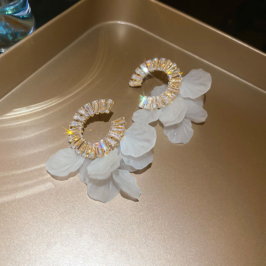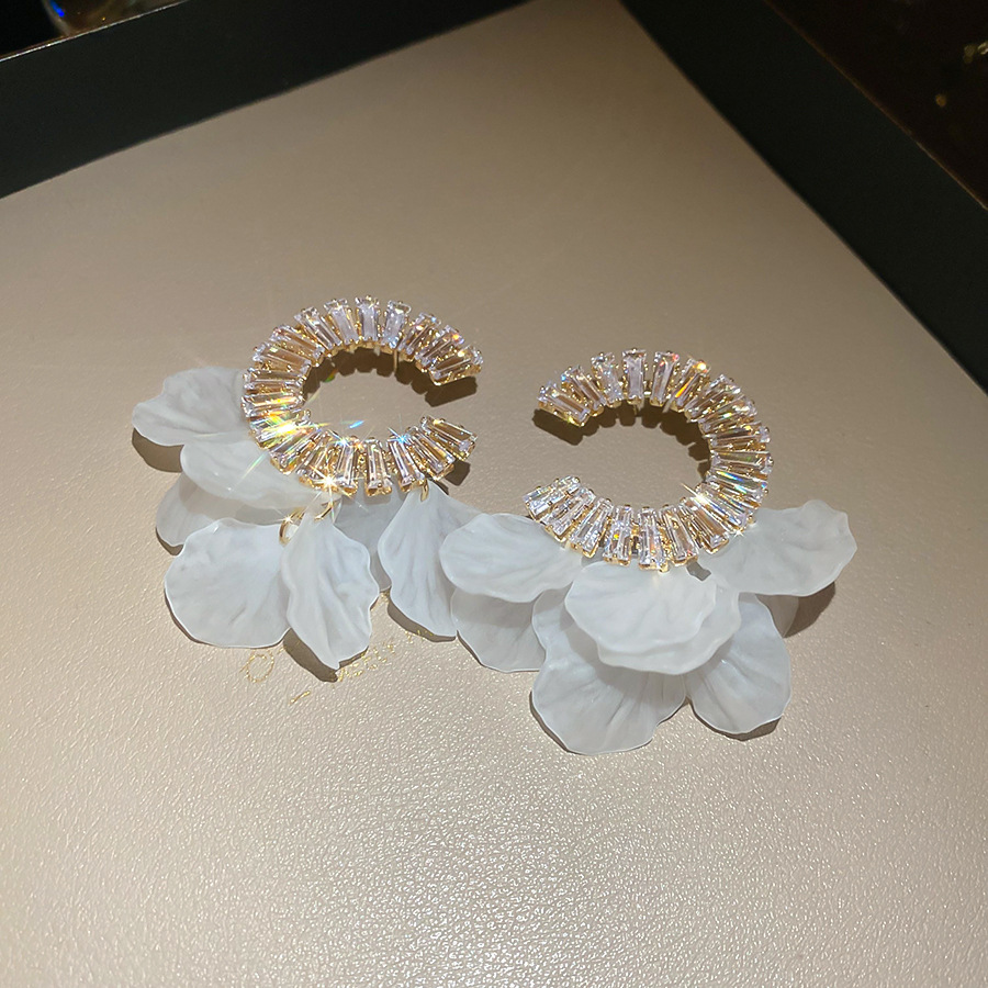 Aguja de plata, pétalo de circón, borla, pendientes en forma de C, pendientes simples y de moda para mujer, pendientes de todo fósforo, lujo ligero, pendientes de alta gama al por mayor