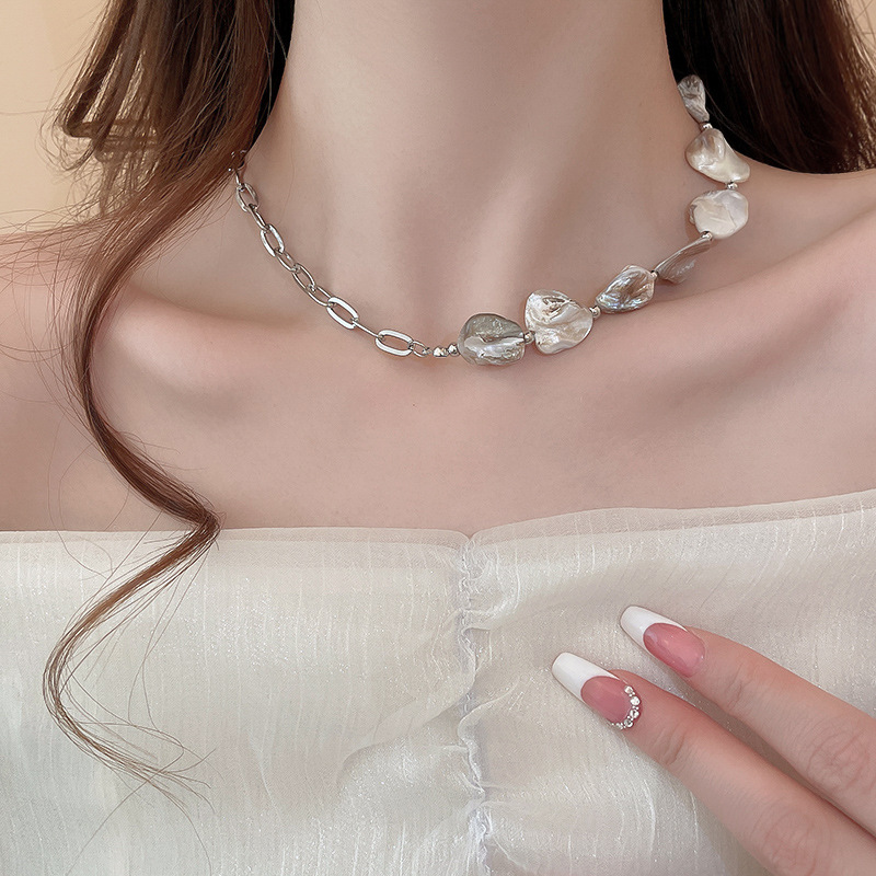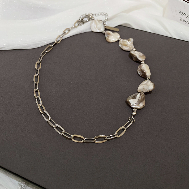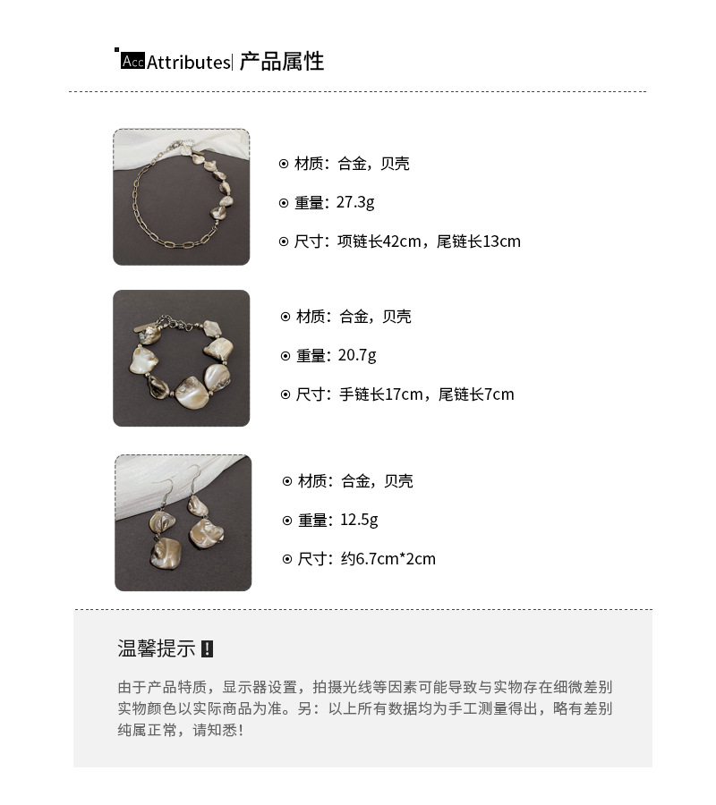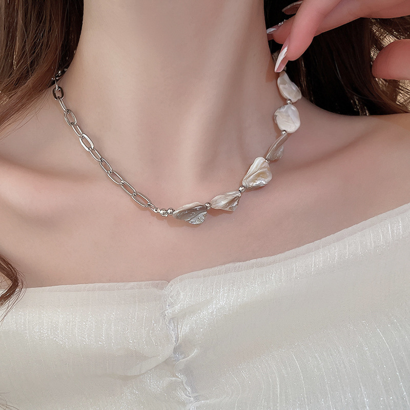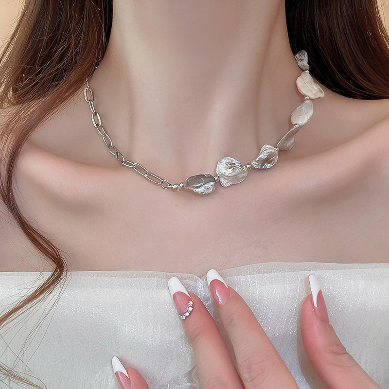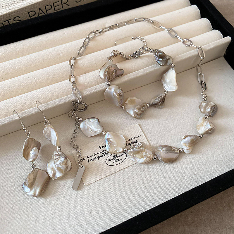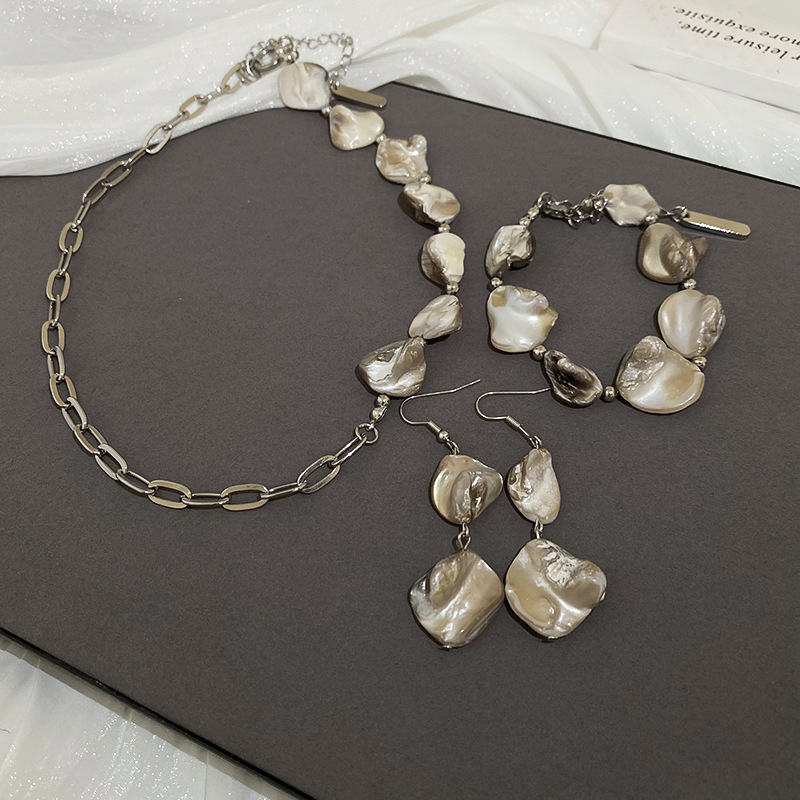 Cadena de concha de metal, costura, pendientes, pulsera, juego de collar, cadena de clavícula fresca pequeña, estilo de vacaciones, joyería de alta calidad