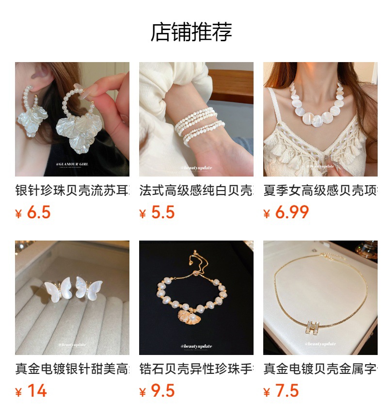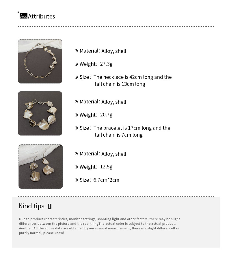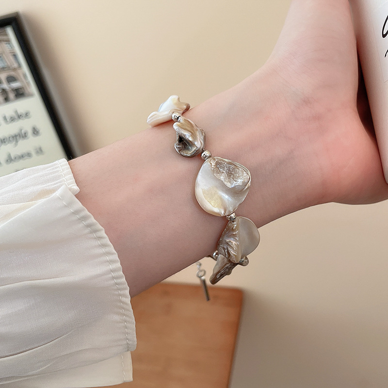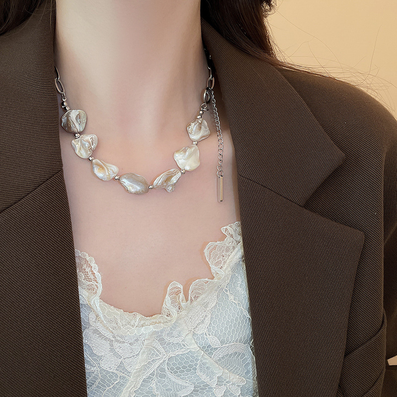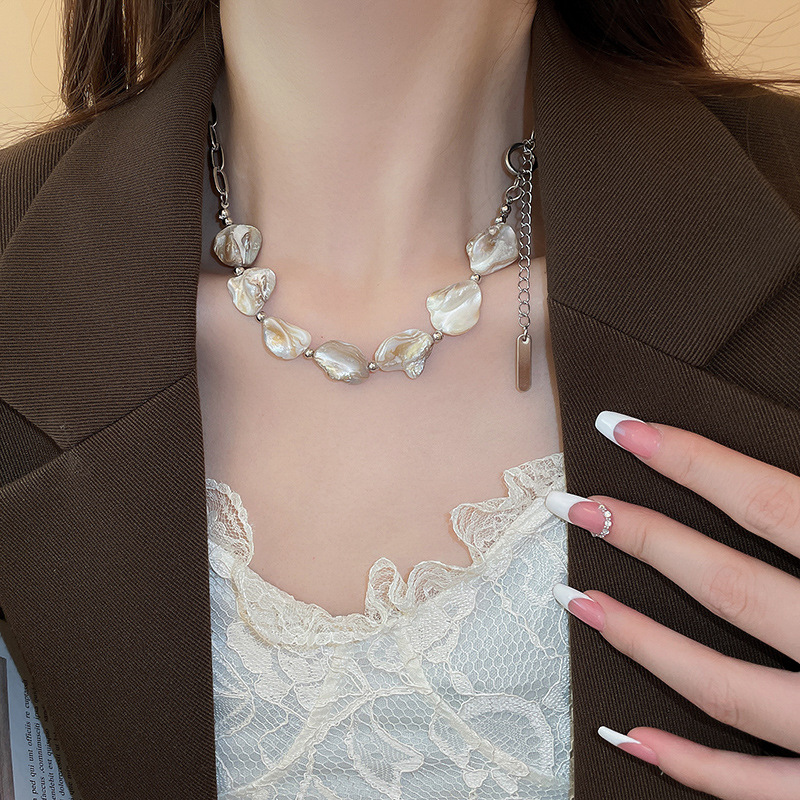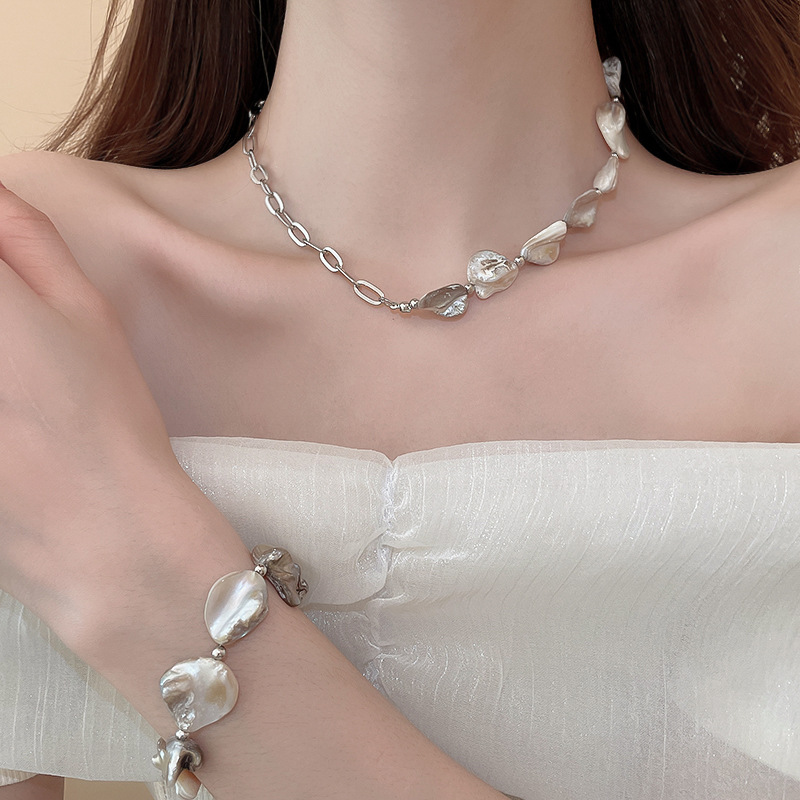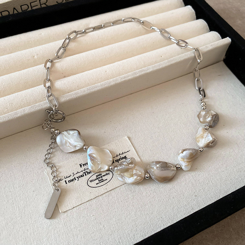 Cadena de concha de metal, costura, pendientes, pulsera, juego de collar, cadena de clavícula fresca pequeña, estilo de vacaciones, joyería de alta calidad