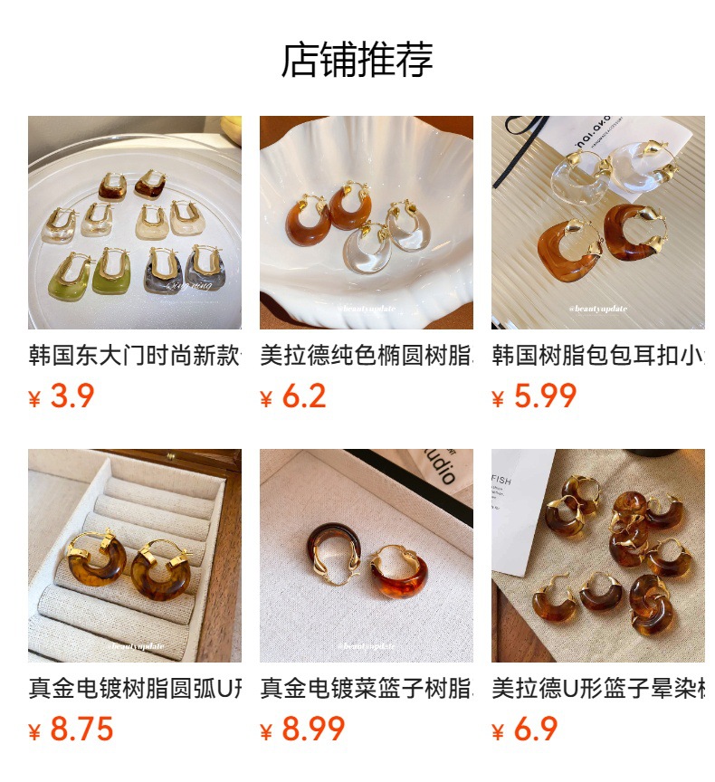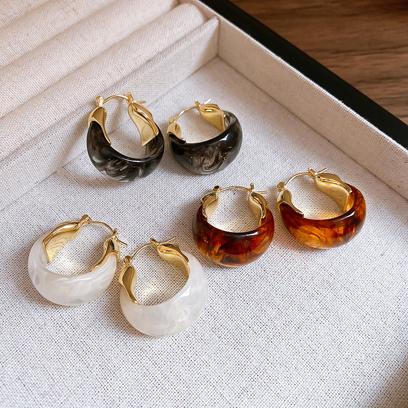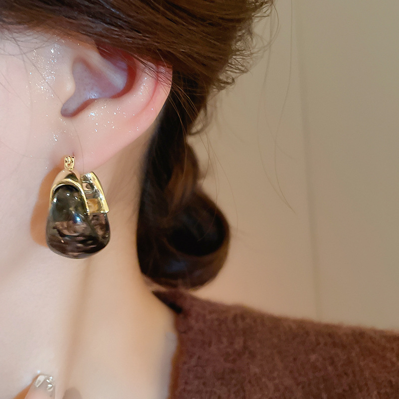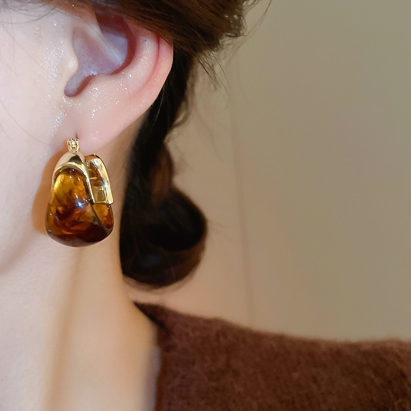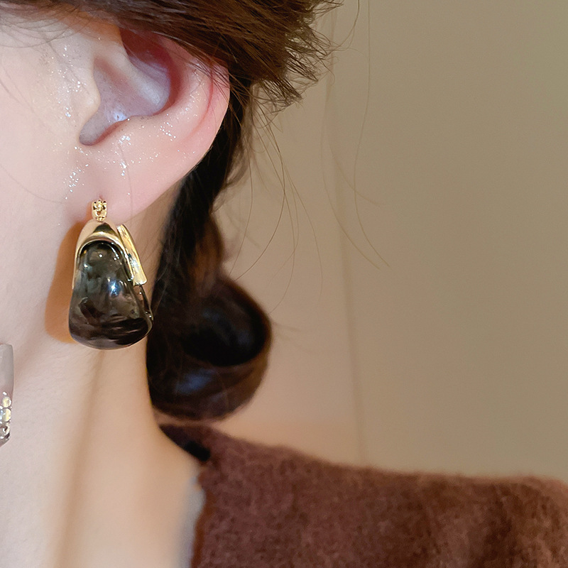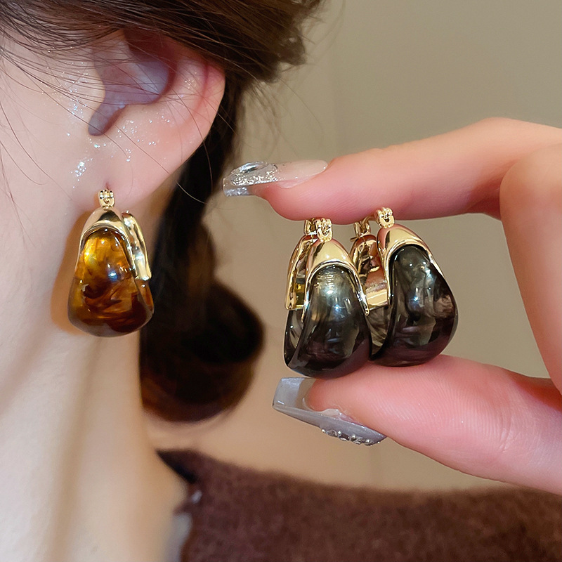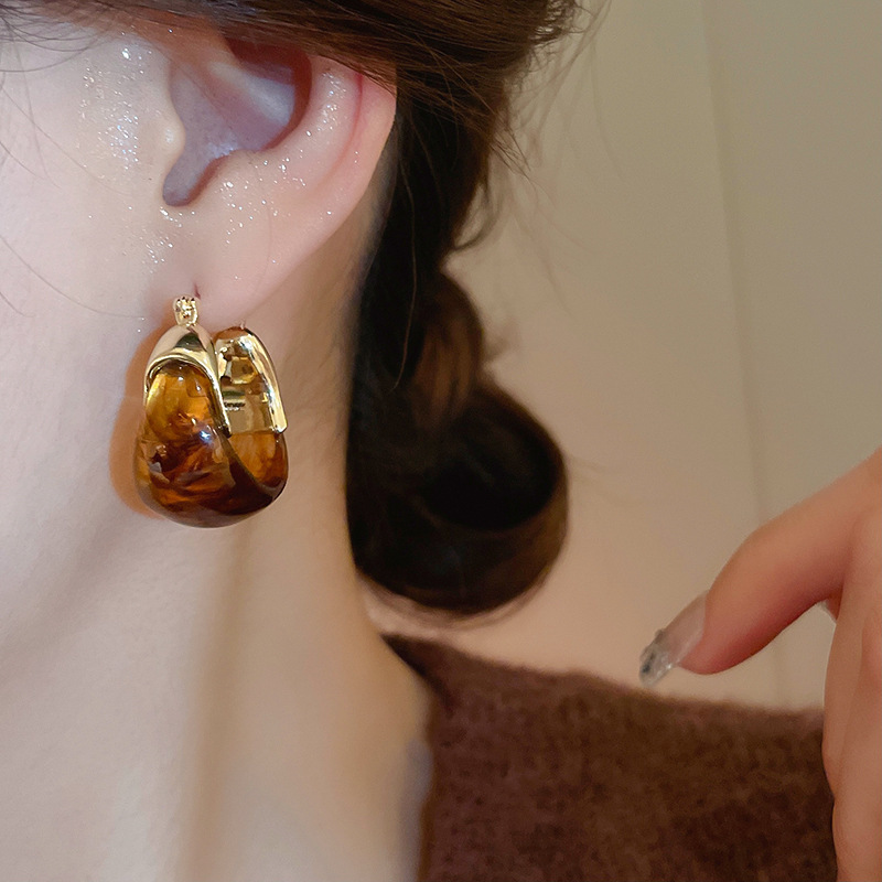 Maillard resina en forma de U hebillas de oreja retro nicho todo fósforo Pendientes de lujo ligero de temperamento de moda otoño e invierno de alta gama