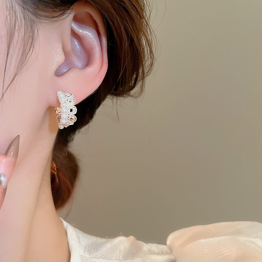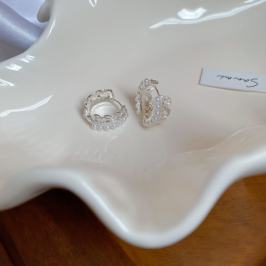 Corona encaje perla hebilla de oreja elegante francés aretes de lujo ligero pendiente de alta calidad sentido del diseño nicho