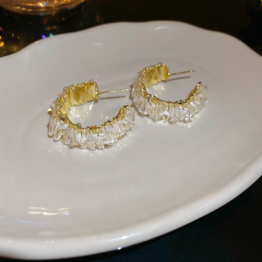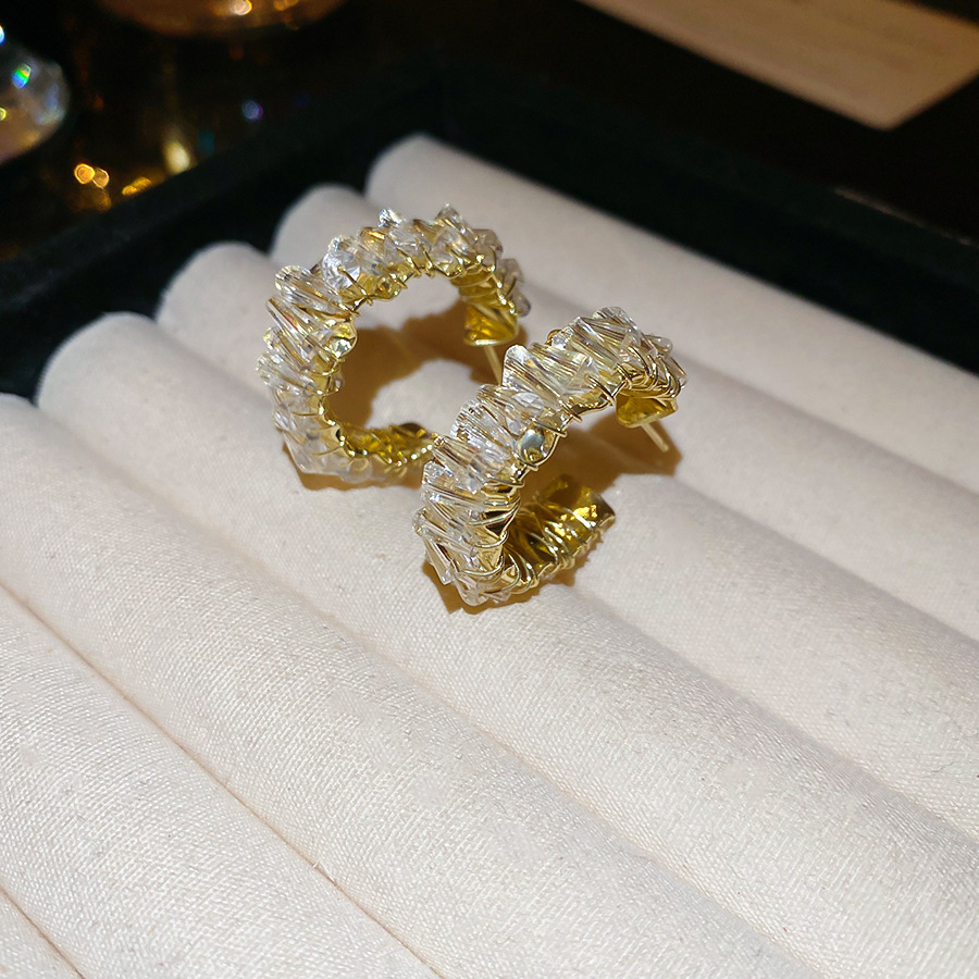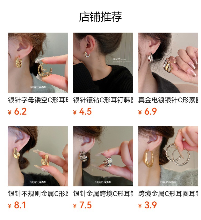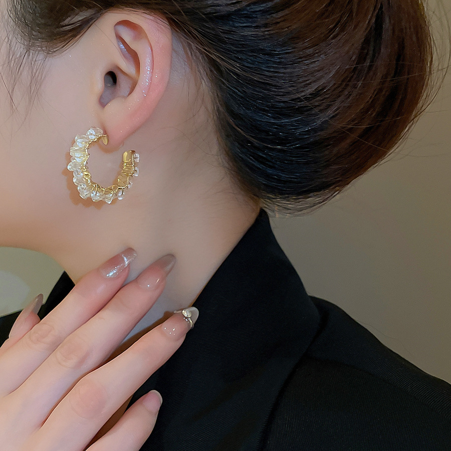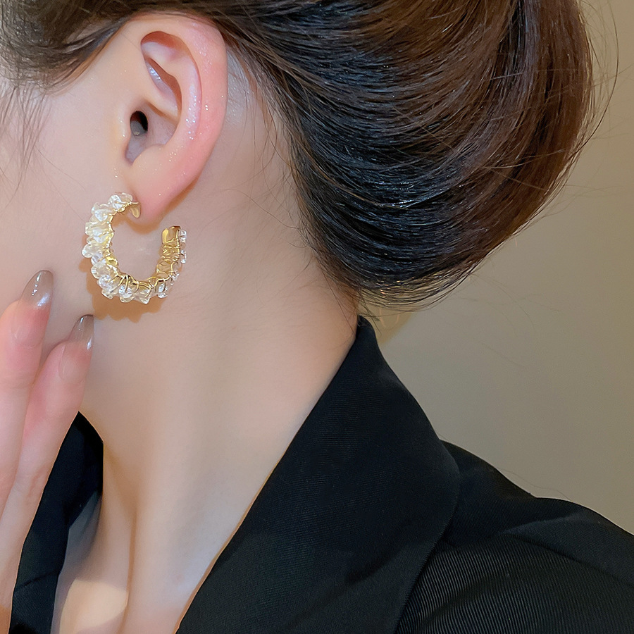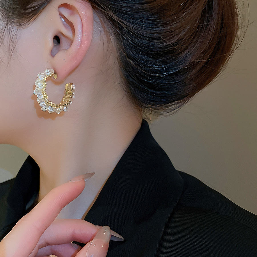 Pendientes en forma de C enrollados de metal con aguja de plata Pendientes de temperamento retro europeo y americano Pendientes de lujo ligero de alta gama mujeres