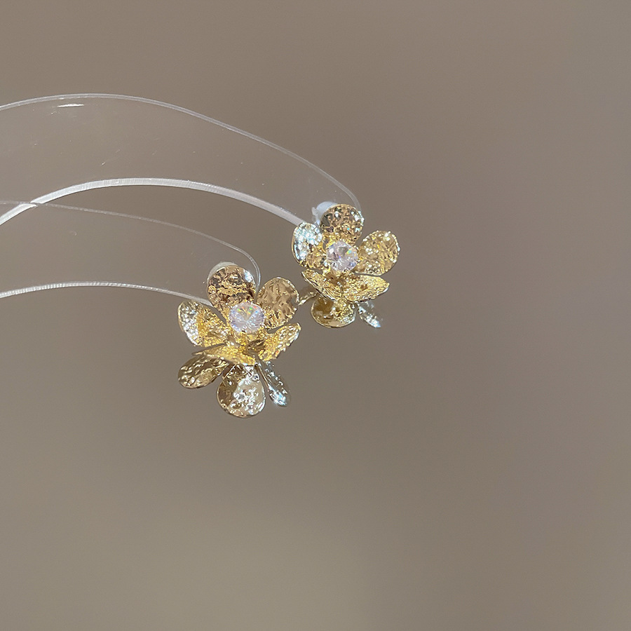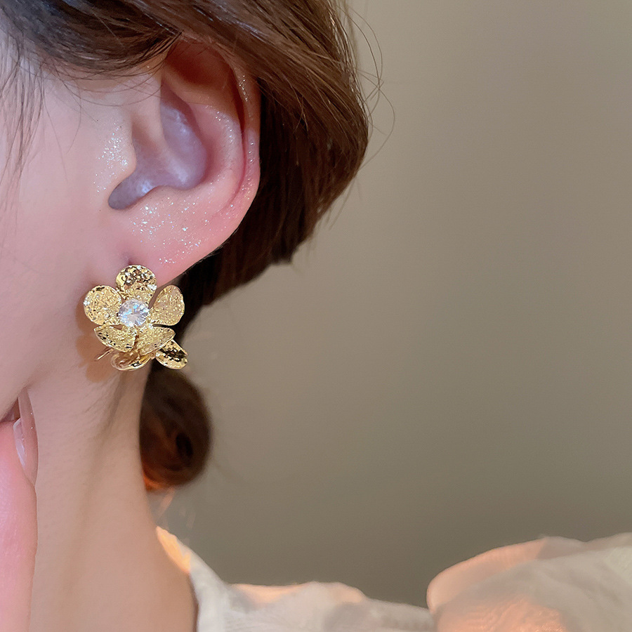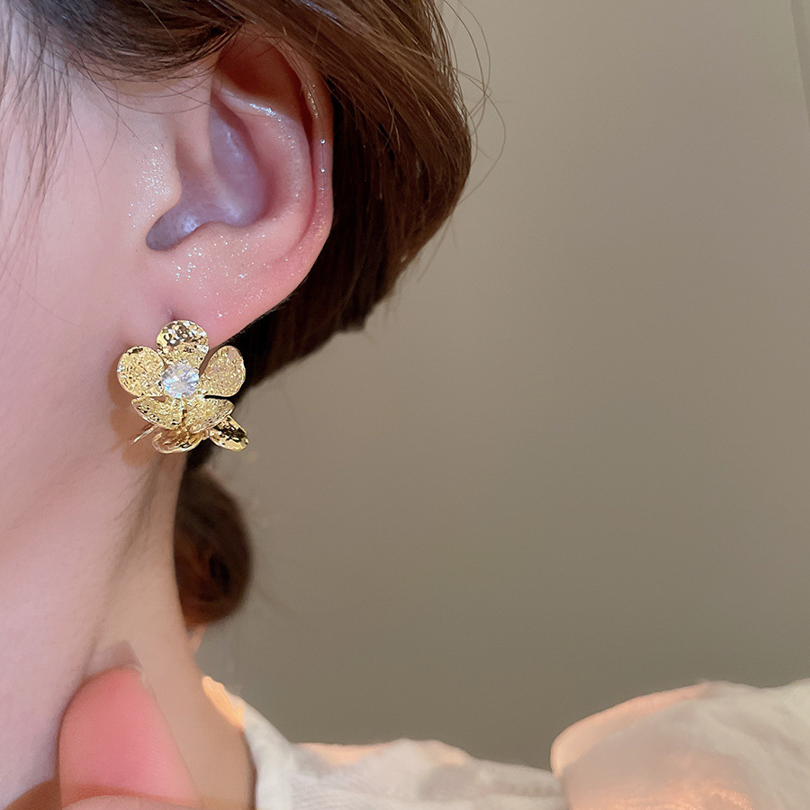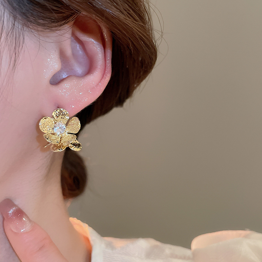 Pendientes de flor de circonita con aguja de plata Pendientes de temperamento de personalidad exquisita retro Pendientes de lujo ligero de alta gama Diseño de nicho