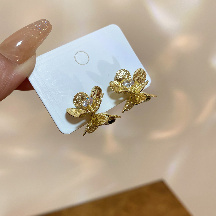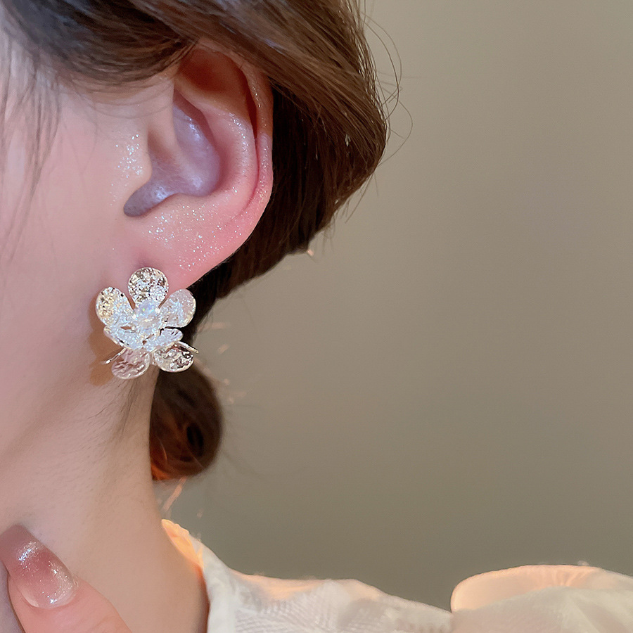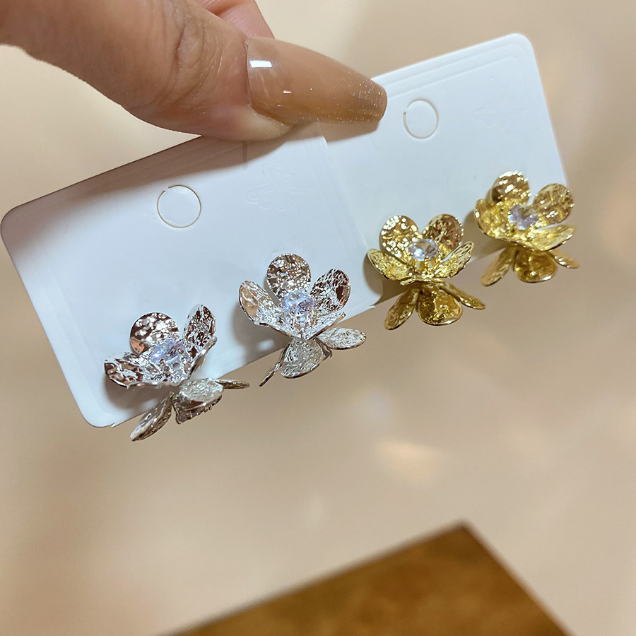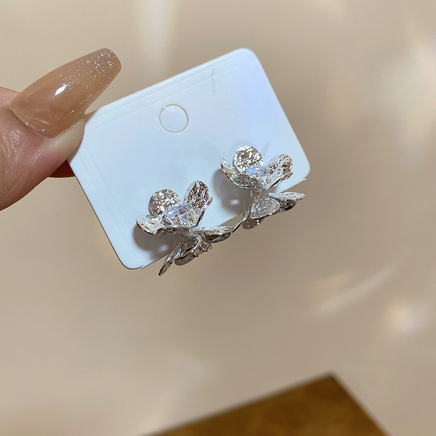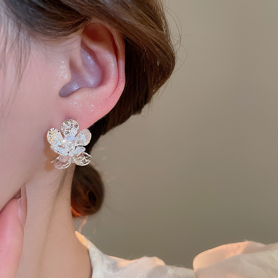 Pendientes de flor de circonita con aguja de plata Pendientes de temperamento de personalidad exquisita retro Pendientes de lujo ligero de alta gama Diseño de nicho