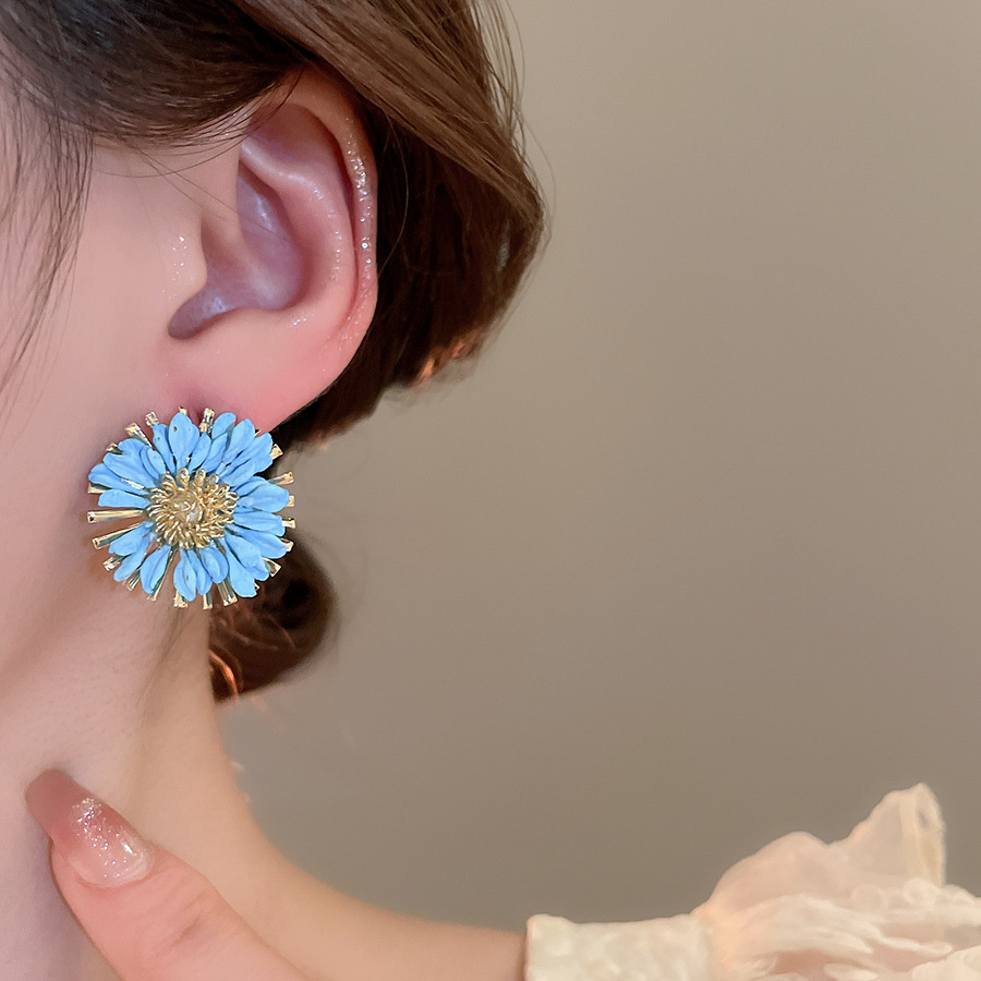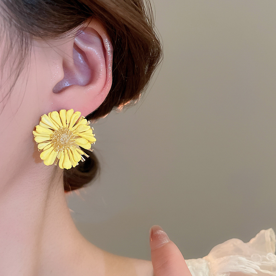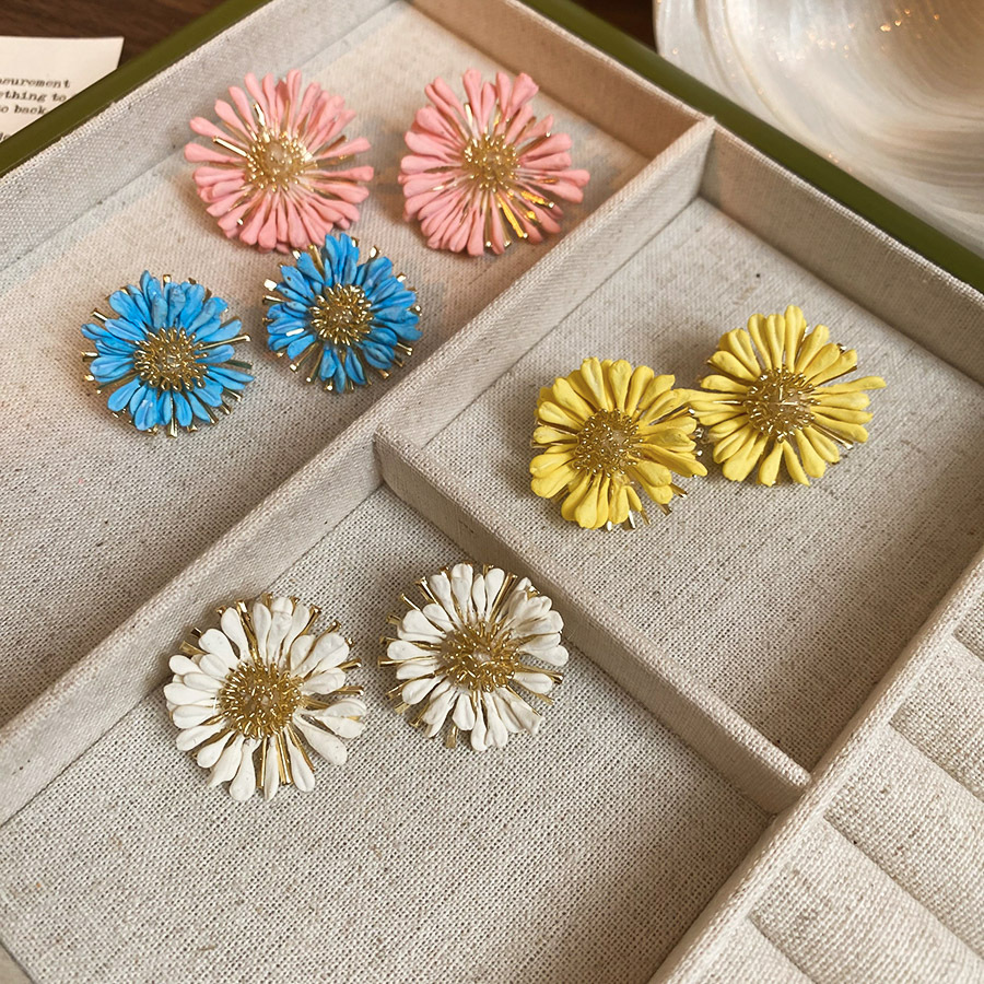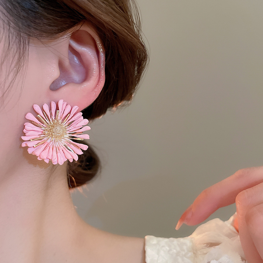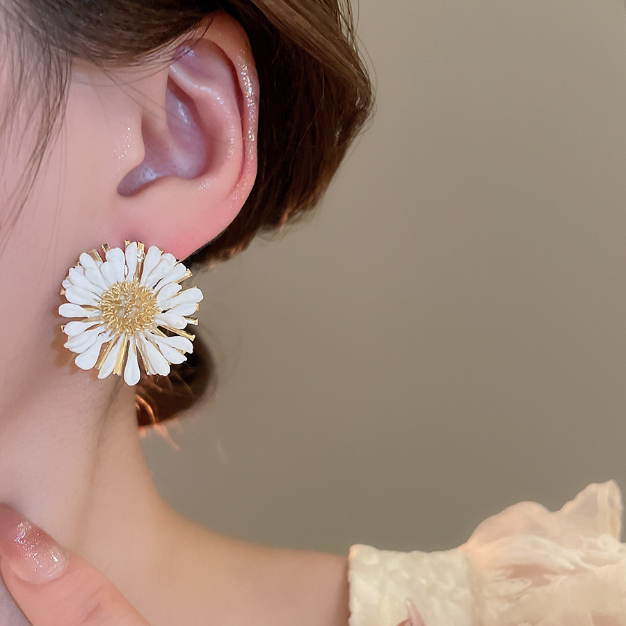 Pendientes de margarita de Lafite con aguja de plata, pendientes de estilo de vacaciones junto al mar, temperamento dulce y único, pendientes de todo fósforo para fotos, mujeres