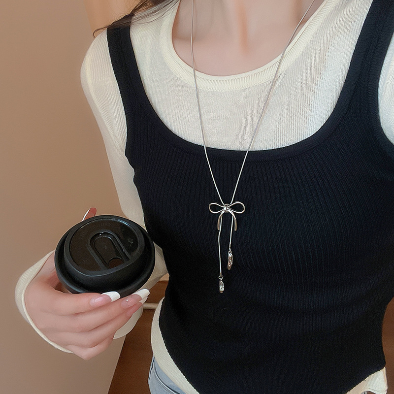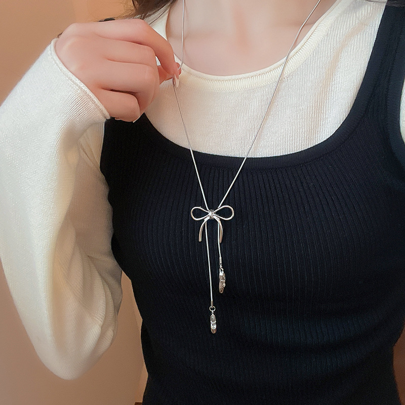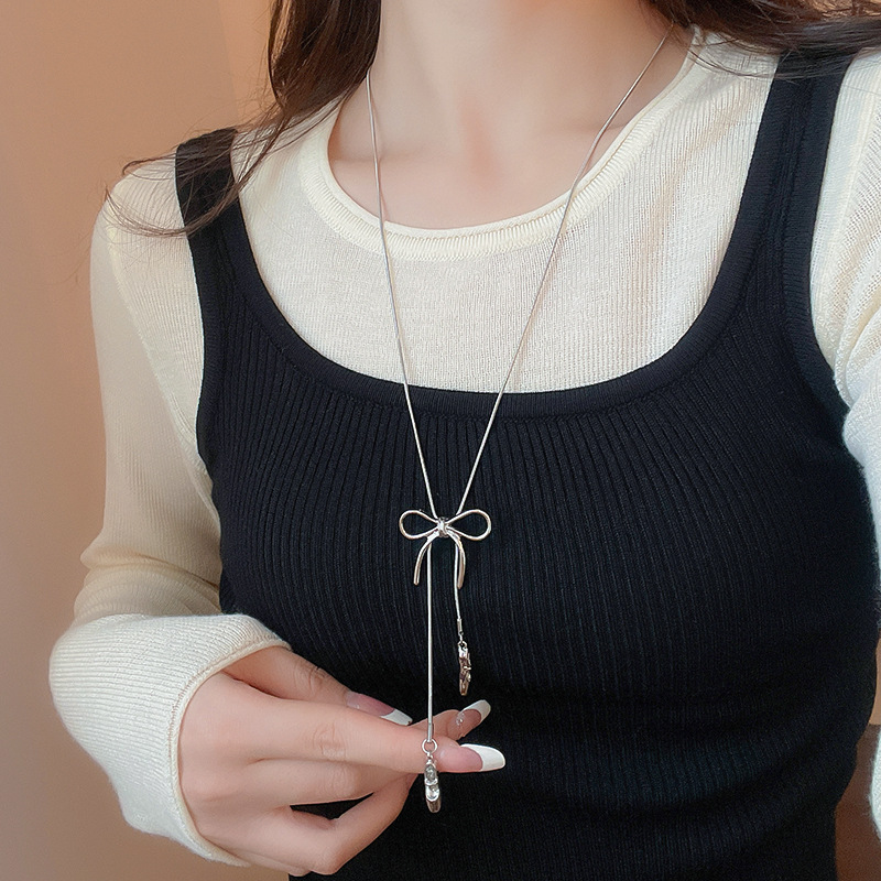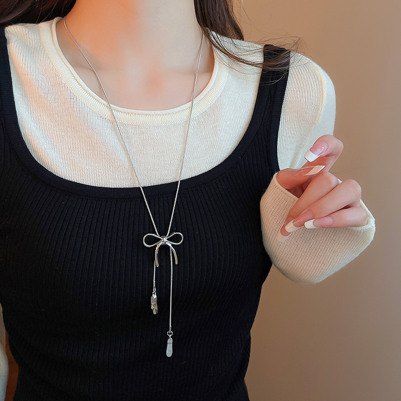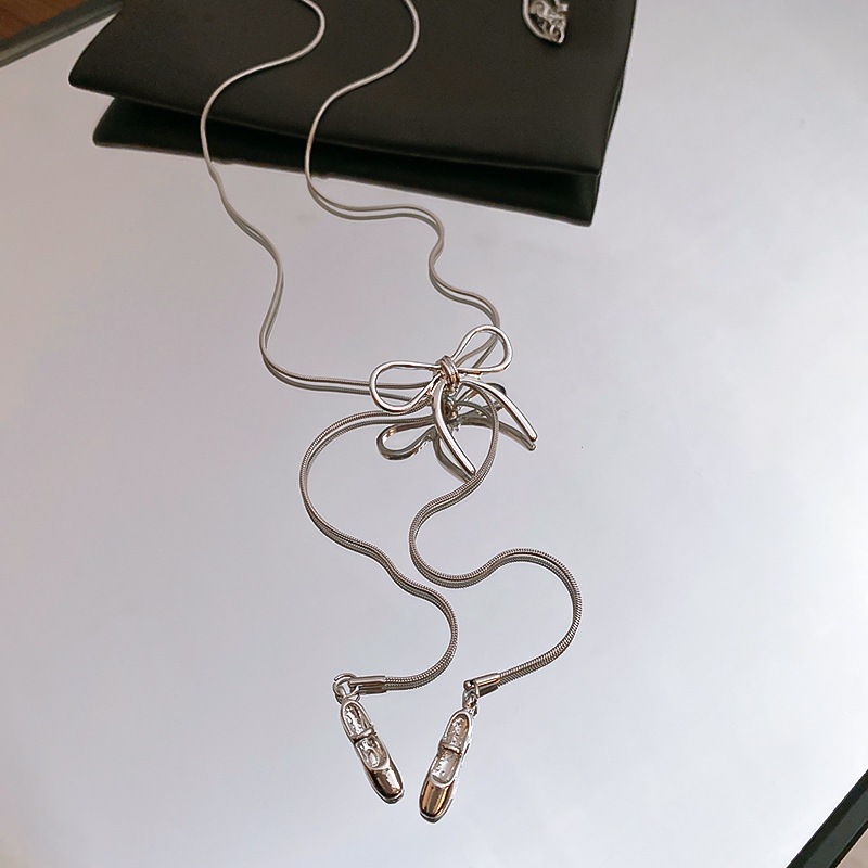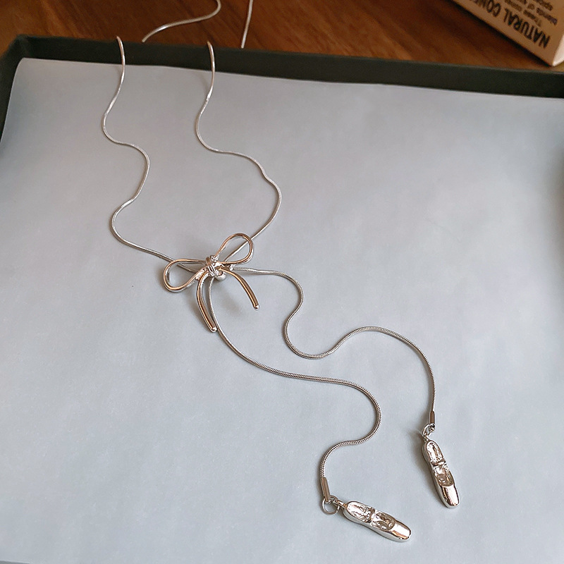 Zapatos de ballet con lazo coreano, collar colgante, cadena de suéter de diseño de moda de todo fósforo para mujer, joyería simple de alta gama