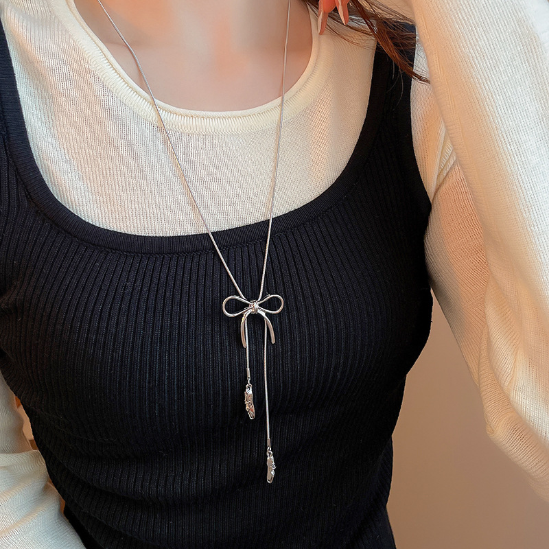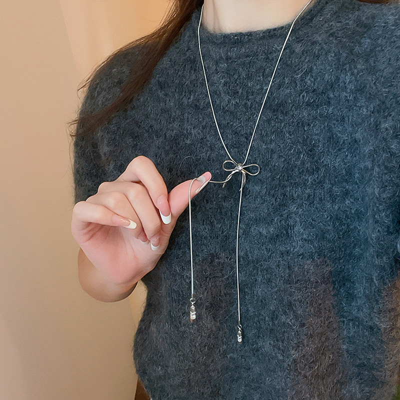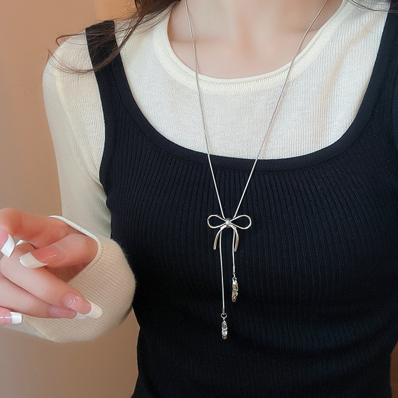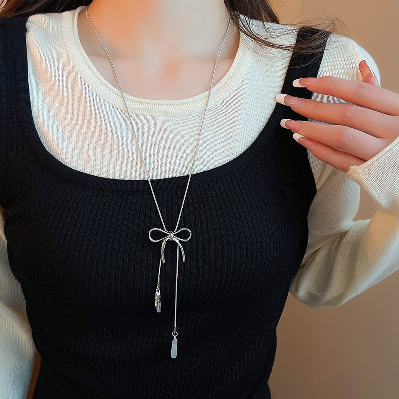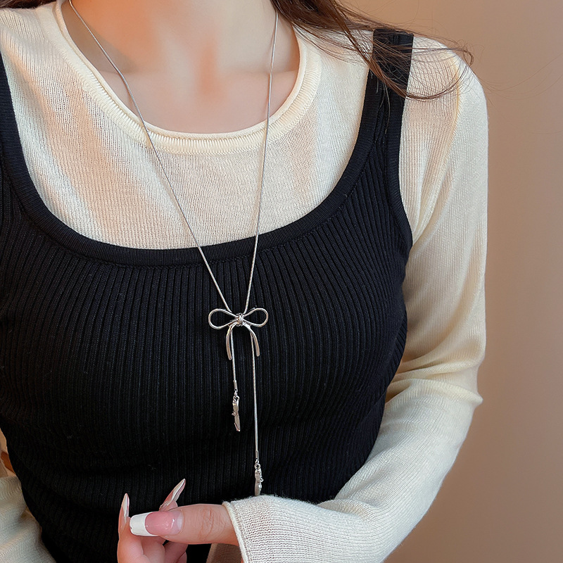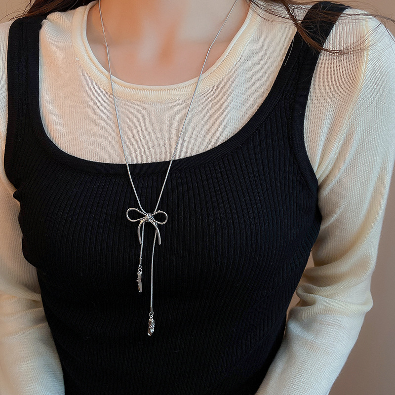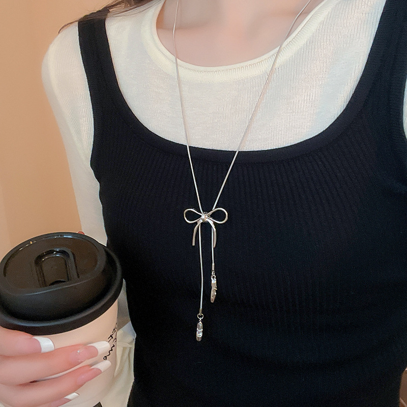 Zapatos de ballet con lazo coreano, collar colgante, cadena de suéter de diseño de moda de todo fósforo para mujer, joyería simple de alta gama