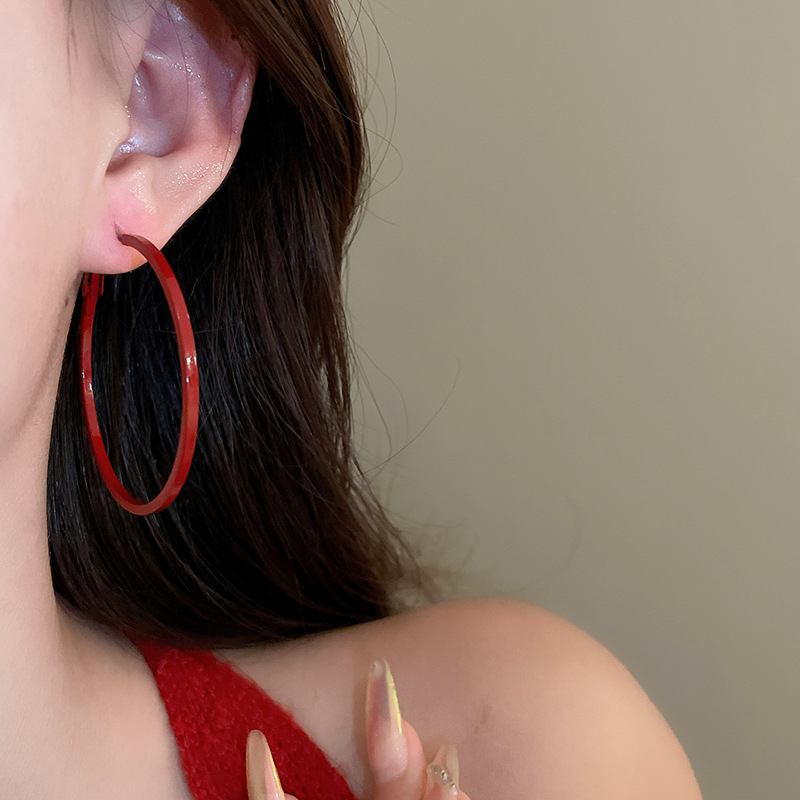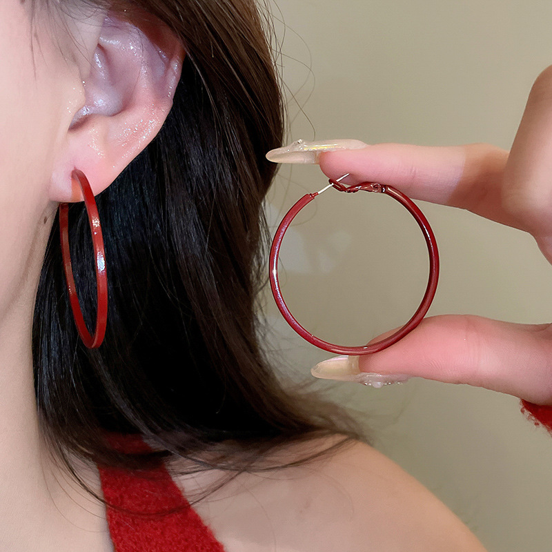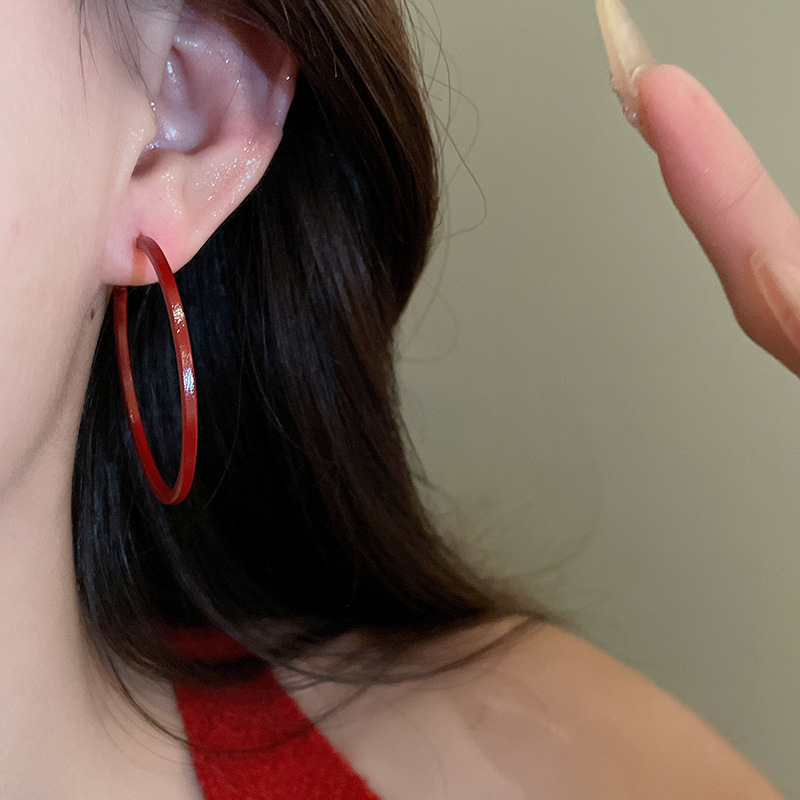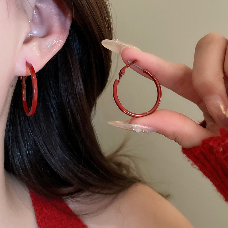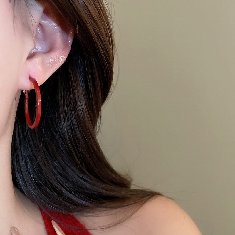 Aguja de plata, anillo de oreja rojo Encola, pendientes de temperamento de nicho retro de moda, pendientes europeos y americanos, lujo ligero, mujeres de alta gama