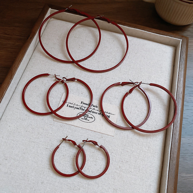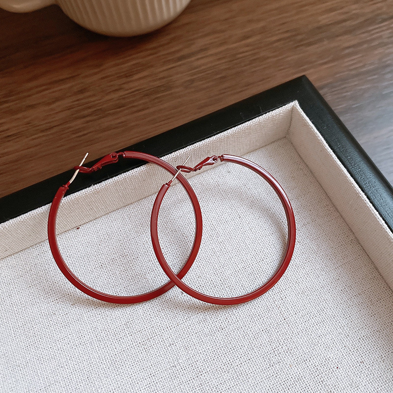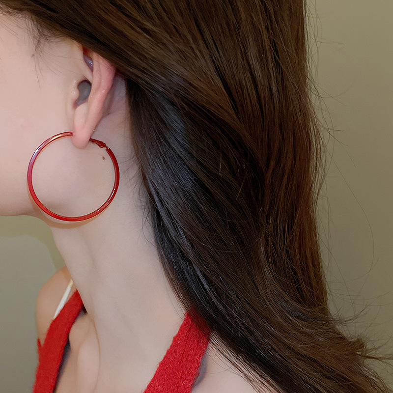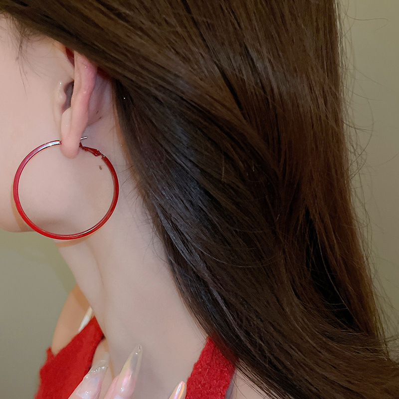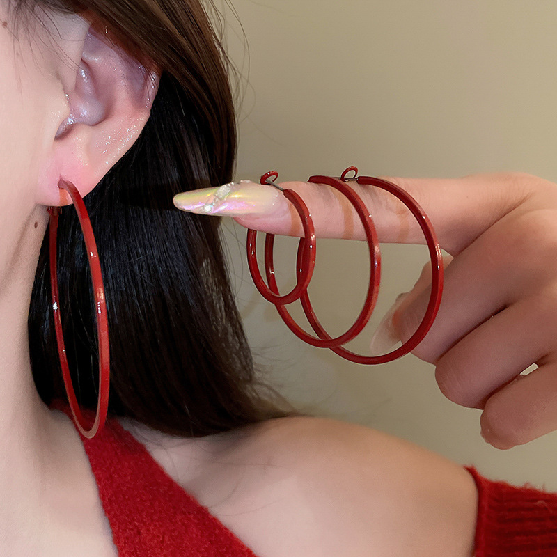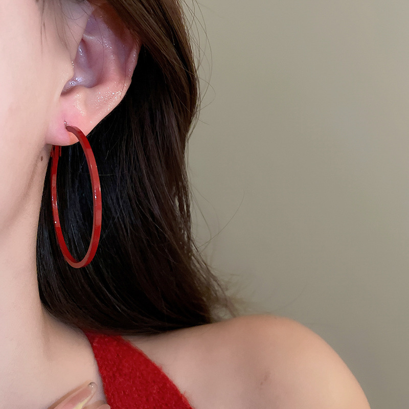 Aguja de plata, anillo de oreja rojo Encola, pendientes de temperamento de nicho retro de moda, pendientes europeos y americanos, lujo ligero, mujeres de alta gama