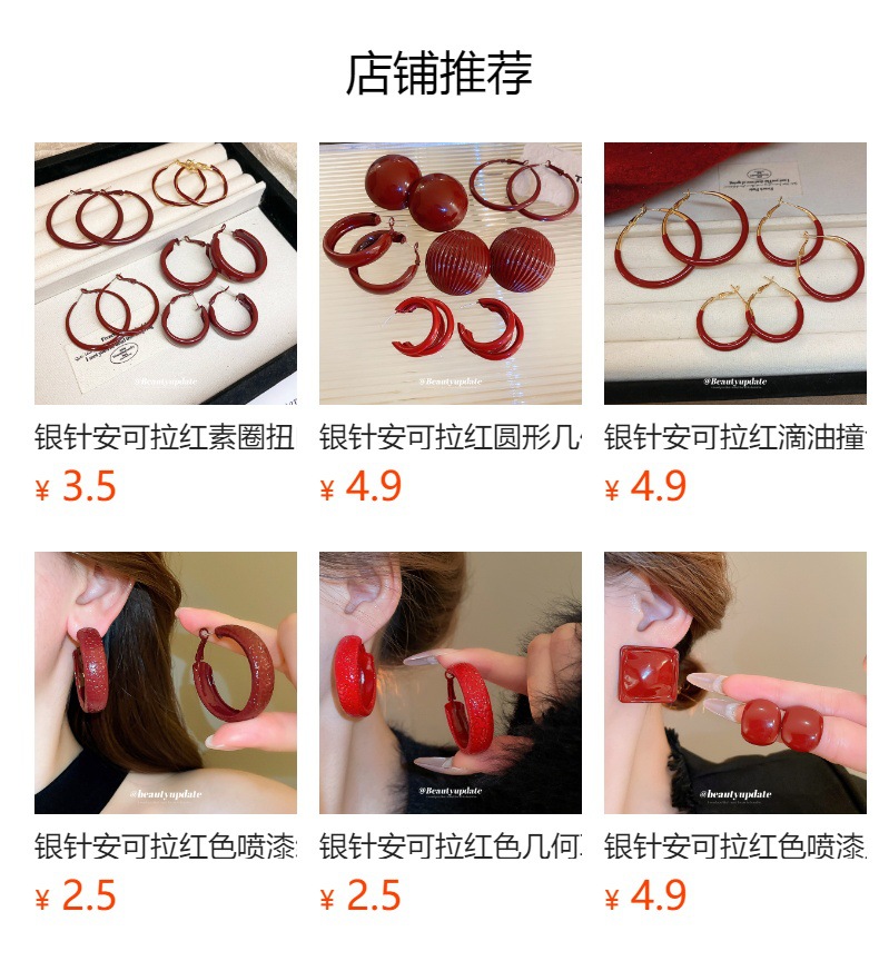 Pendientes de amor con goteo de aceite rojo con aguja de plata, botones de oreja de temperamento de moda de nicho, pendientes simples y de alta gama de estilo de Hong Kong