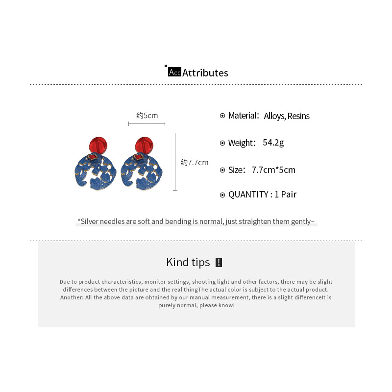 | Colores | Aguja de plata-rojo-azul,Gancho para la oreja-rojo-azul |