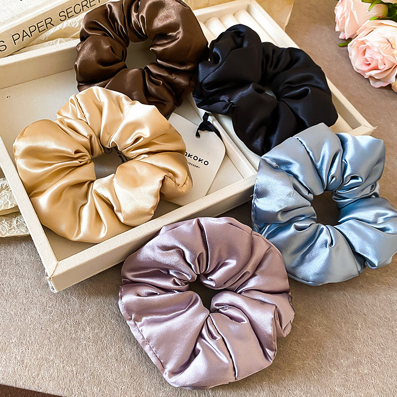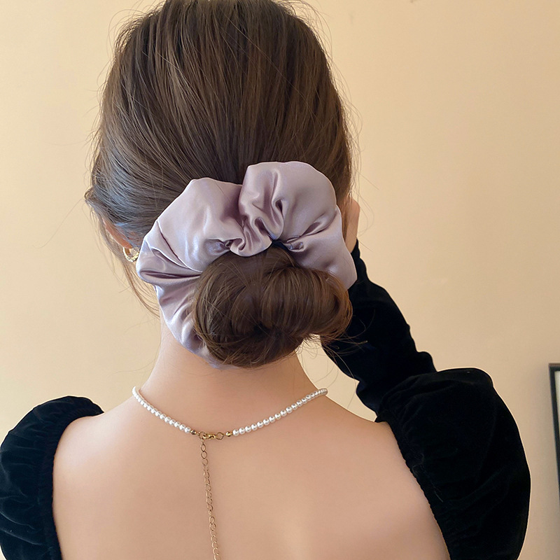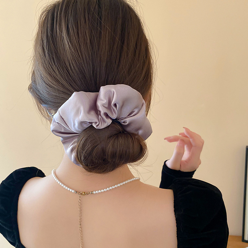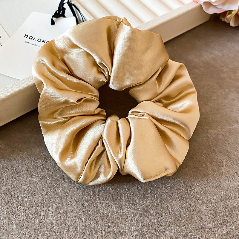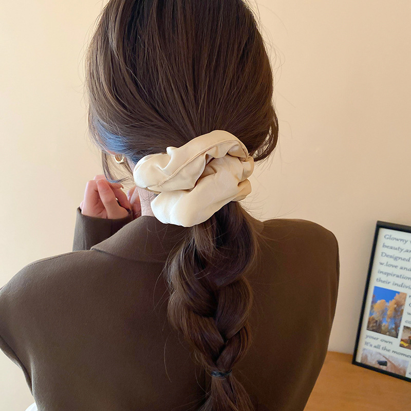 Nuevo producto color crema, pliegues brillantes, círculos para el cabello del intestino grueso, lazo para el cabello en la parte posterior de la cabeza, cuerda para el cabello, ambiente suave y versátil, accesorios para el cabello para mujeres