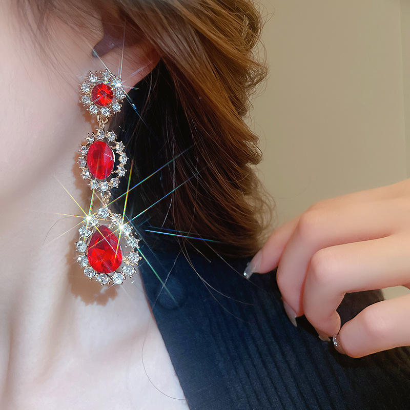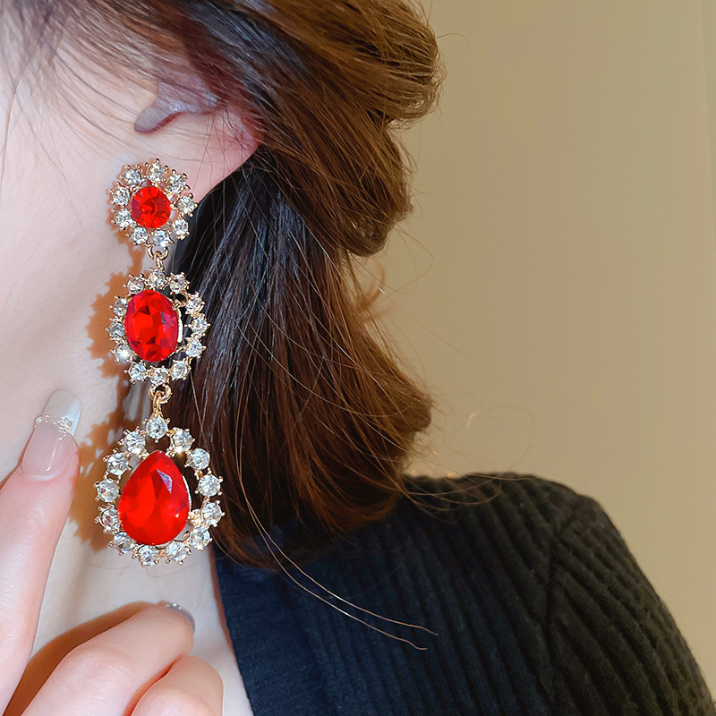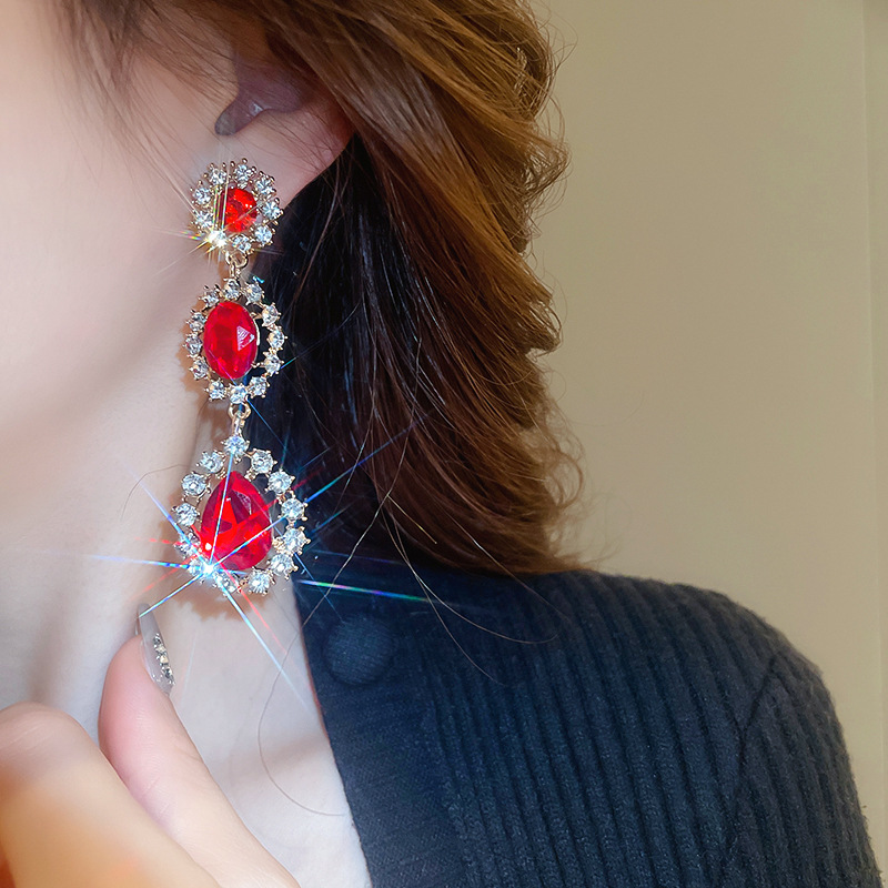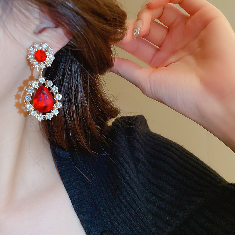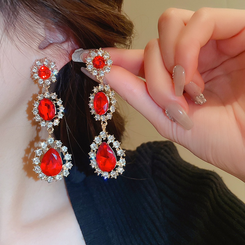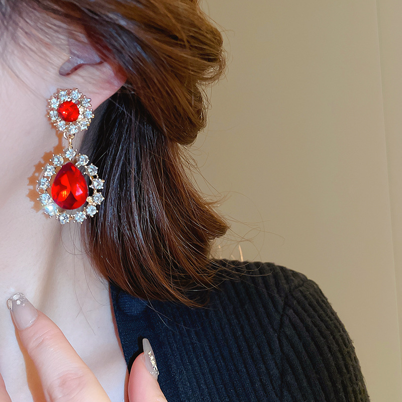 Pendientes de gota de agua de flores de diamantes de aguja de plata Pendientes de temperamento de nicho retro femenino Pendientes de personalidad de moda Lujo ligero Sentido de alta gama