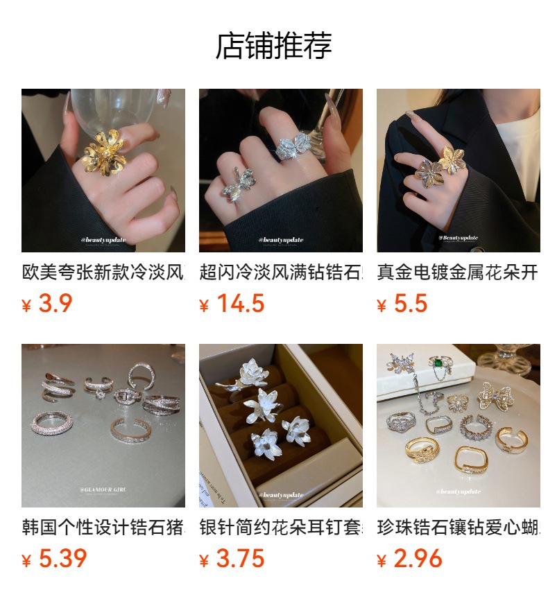 Viento frío, color de contraste de oro y plata, anillo abierto de margarita, diseño simple, anillo de sentido, nuevo producto, joyería de temperamento de moda exquisita