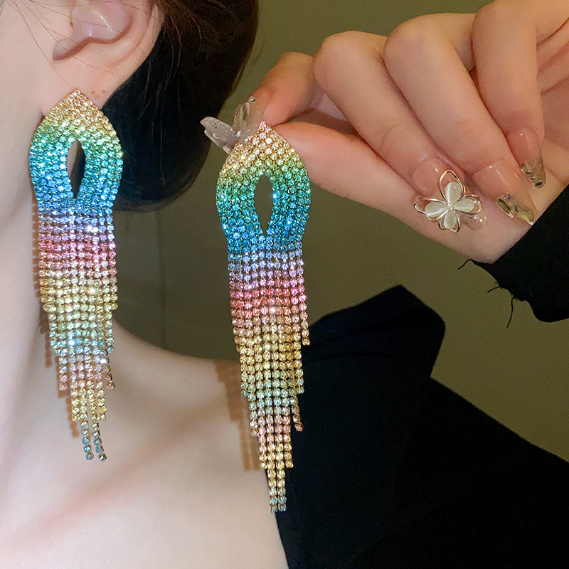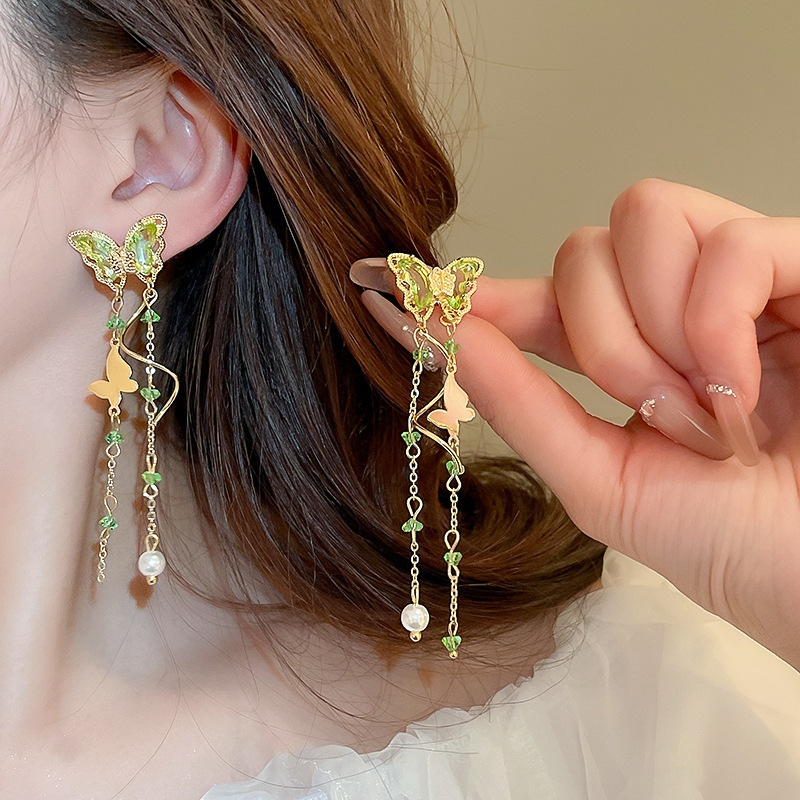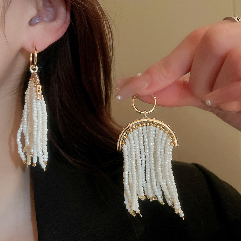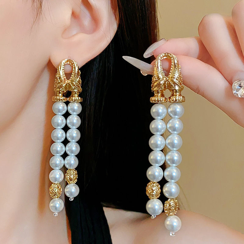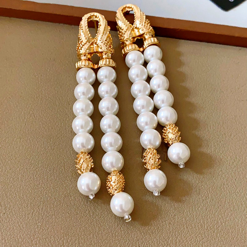 Pendientes de perla de diamantes con aguja de plata de súper hada, pendientes de borla de flores, pendientes de moda francesa, pendientes de nicho para mujer, lujo ligero, sentido de alta gama