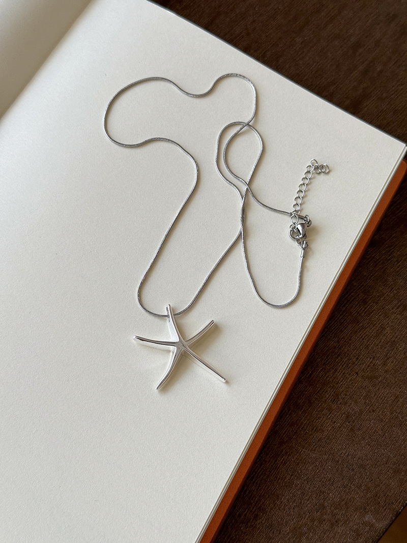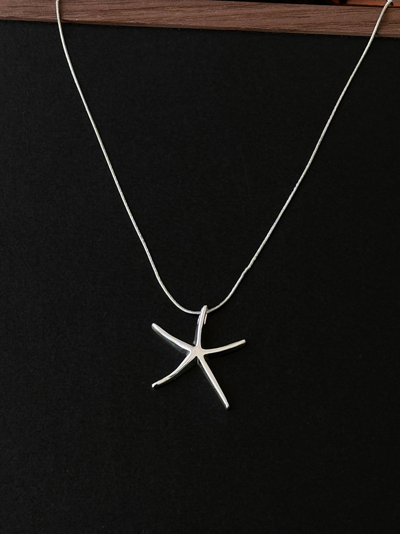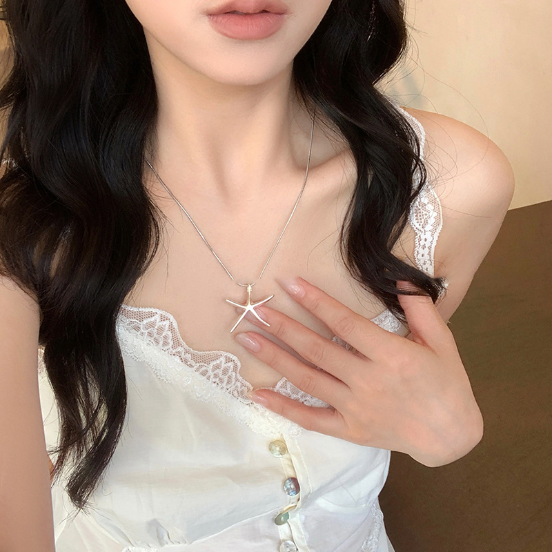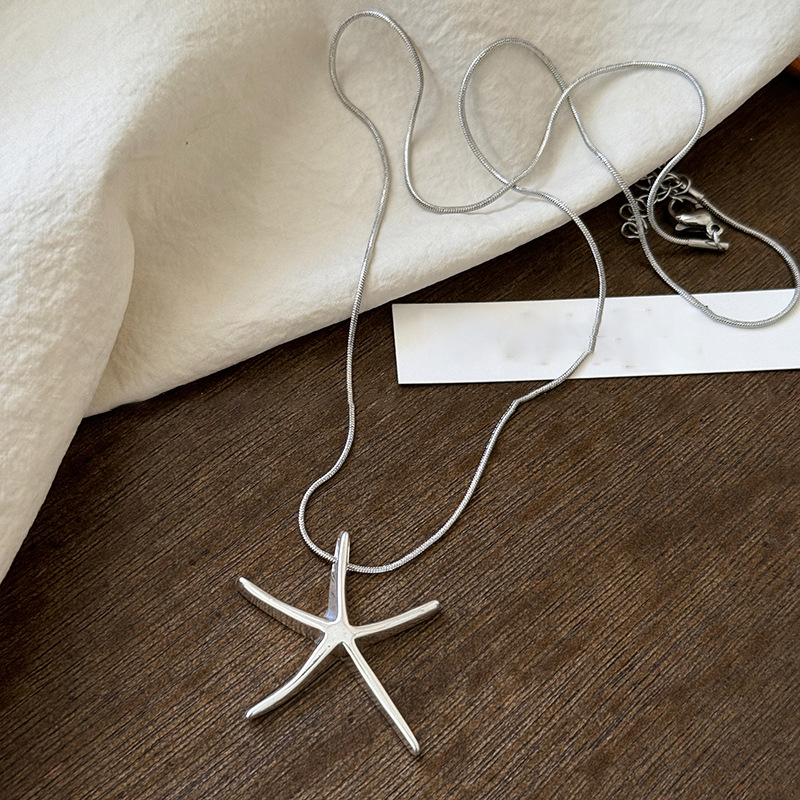 Collar de estrella de mar tridimensional de plata lisa, simple, personalidad, viento frío, cadena de clavícula de todo fósforo, collar de sentido avanzado de nicho femenino