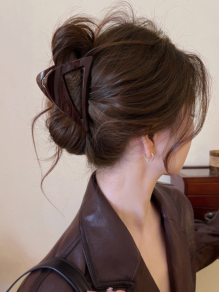 Agarre para el cabello acrílico triangular estilo coreano simple en la parte posterior de la cabeza, clip de tiburón, muchos accesorios para el cabello, lujo ligero, sensación de alto nivel