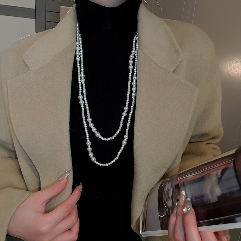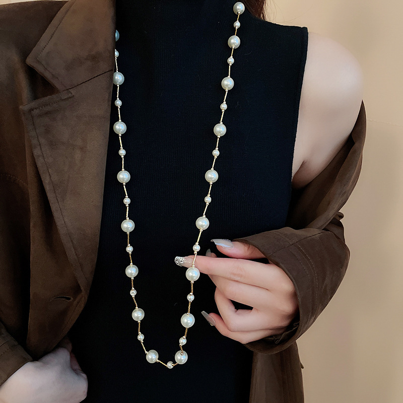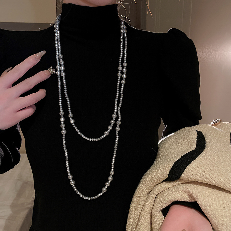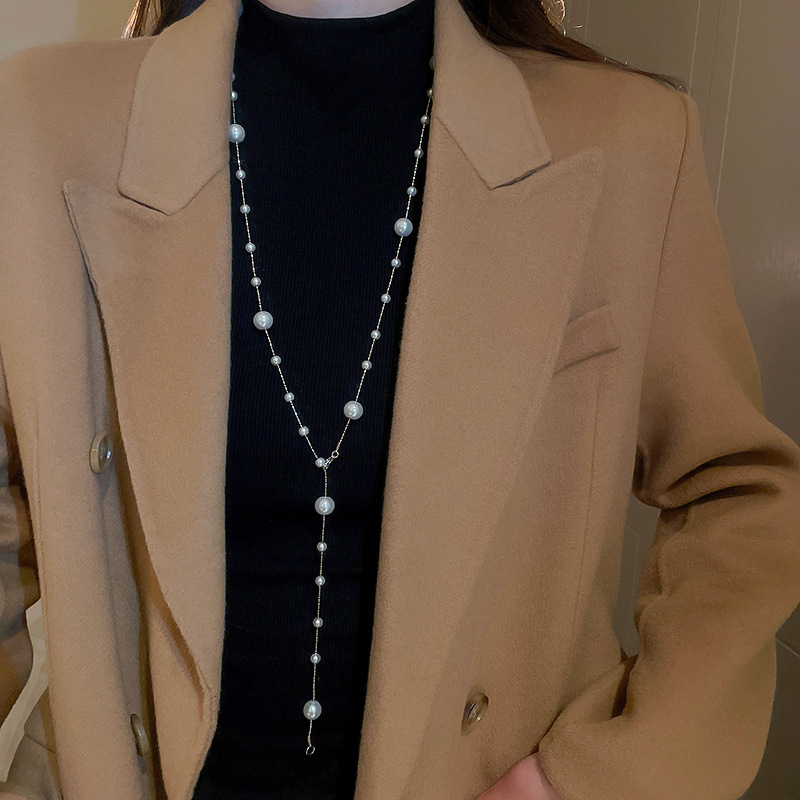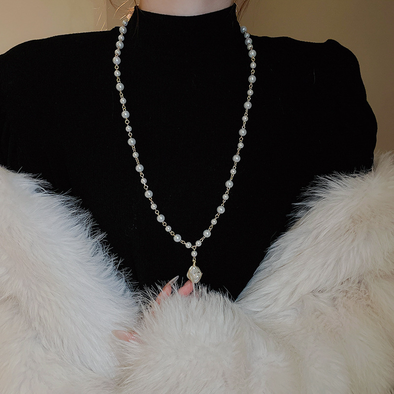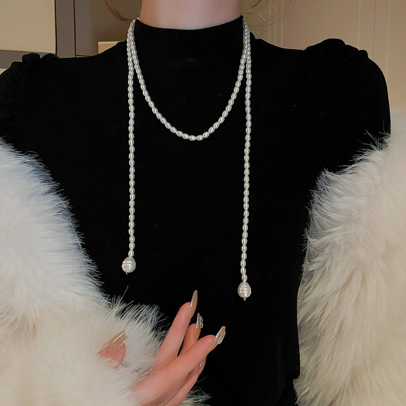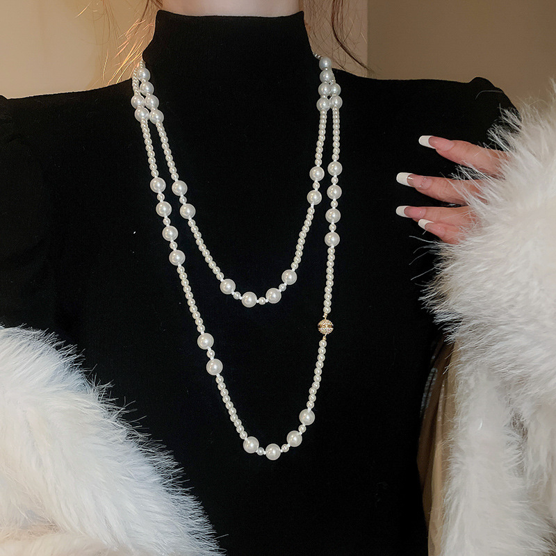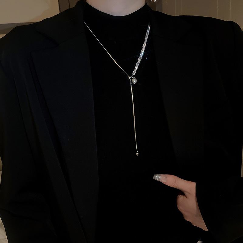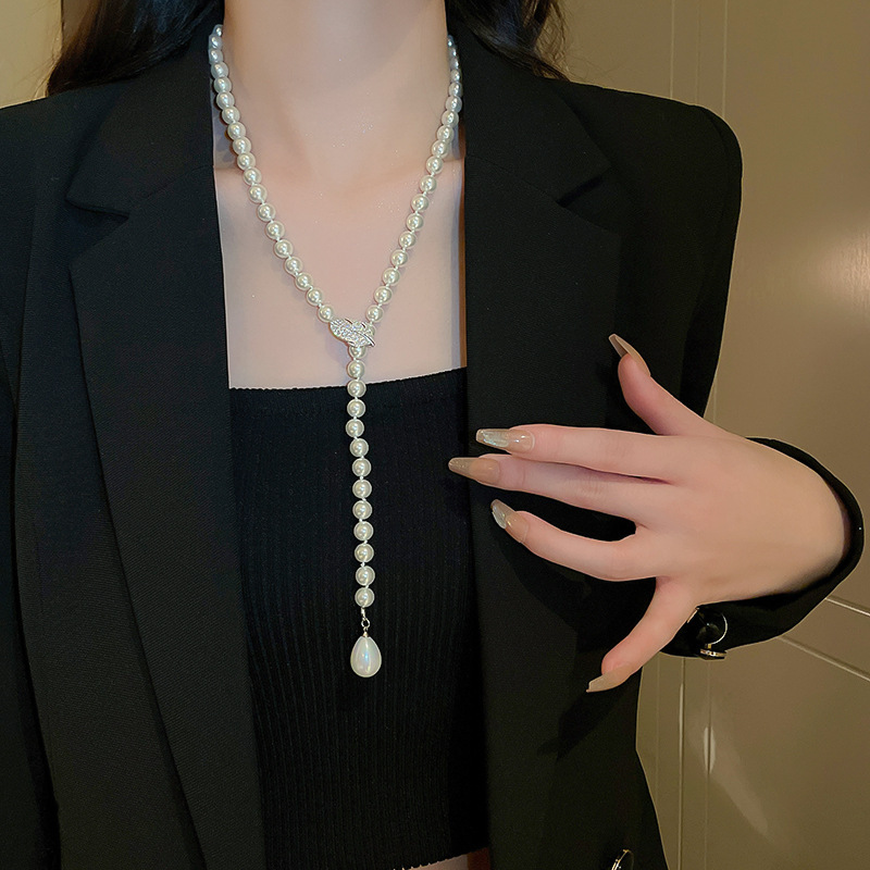 Collar con cuentas de perlas de gota de agua con diamantes transfronterizos otoño e invierno cadena de suéter de lujo ligero francés moda todo fósforo joyería de alta gama