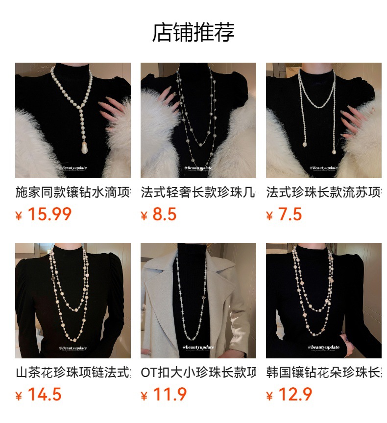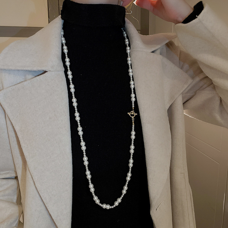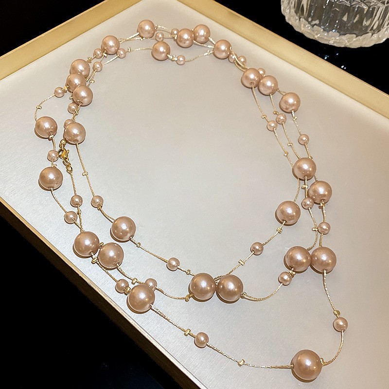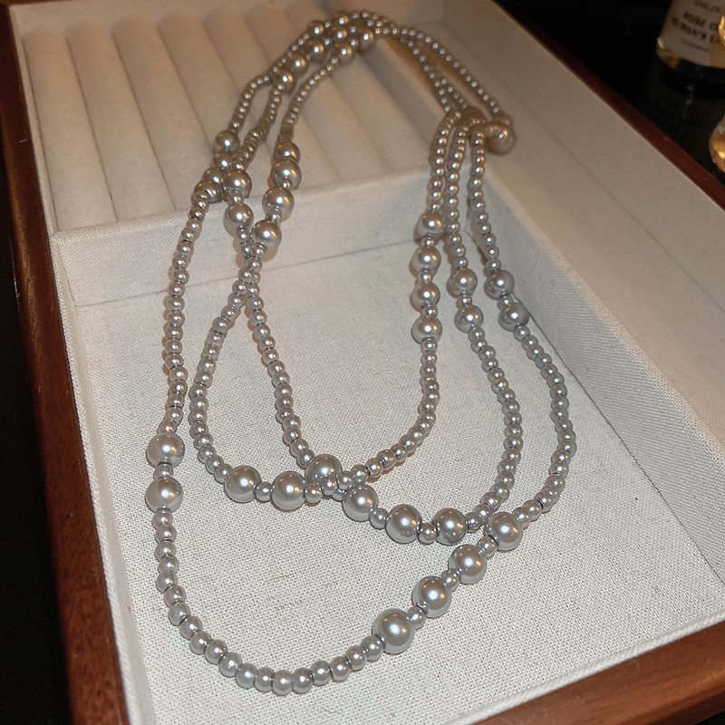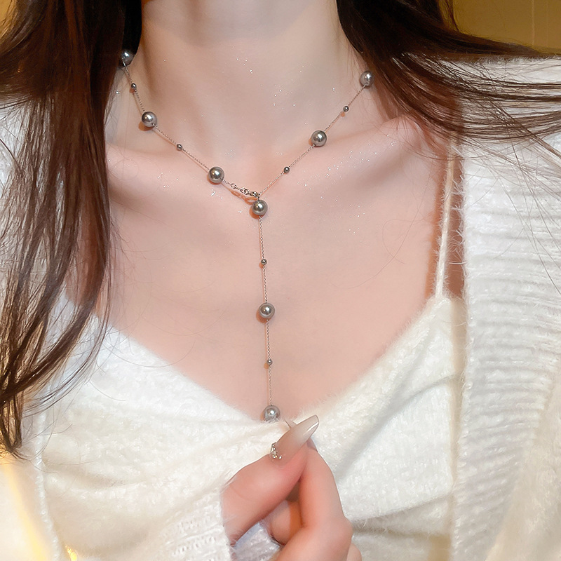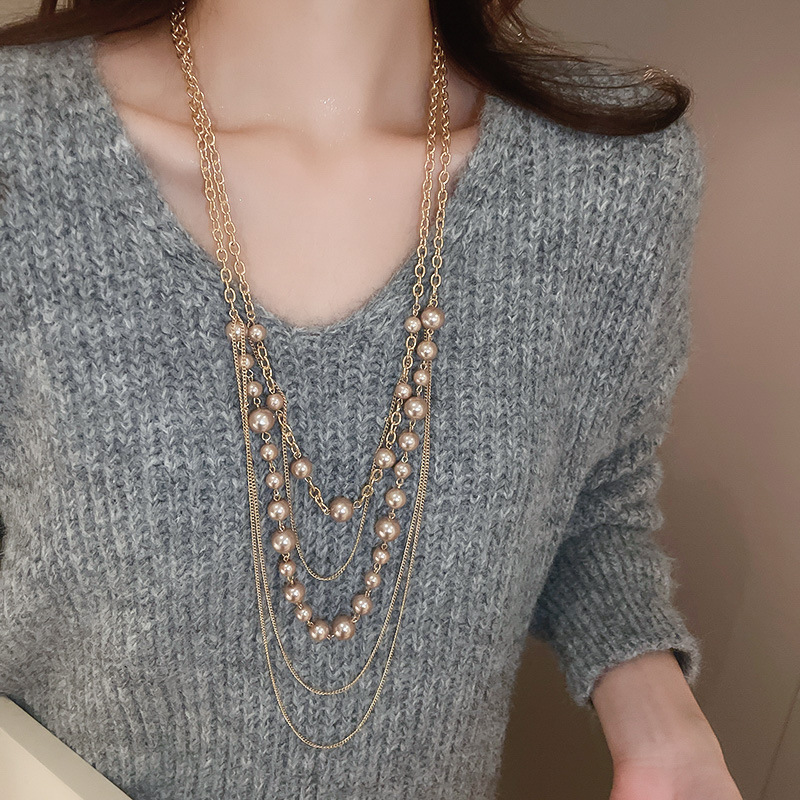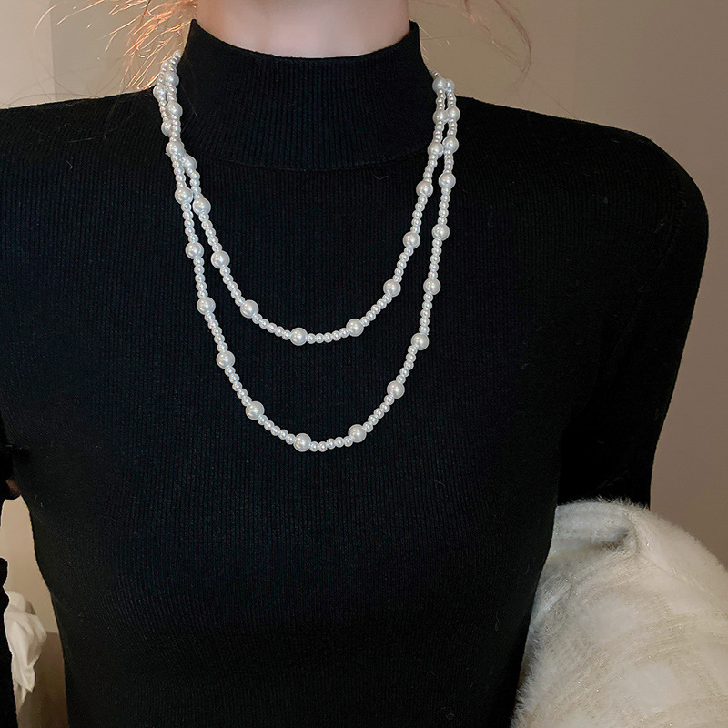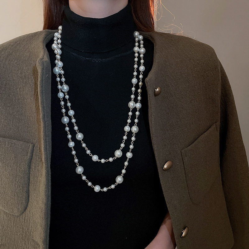 Collar con cuentas de perlas de gota de agua con diamantes transfronterizos otoño e invierno cadena de suéter de lujo ligero francés moda todo fósforo joyería de alta gama