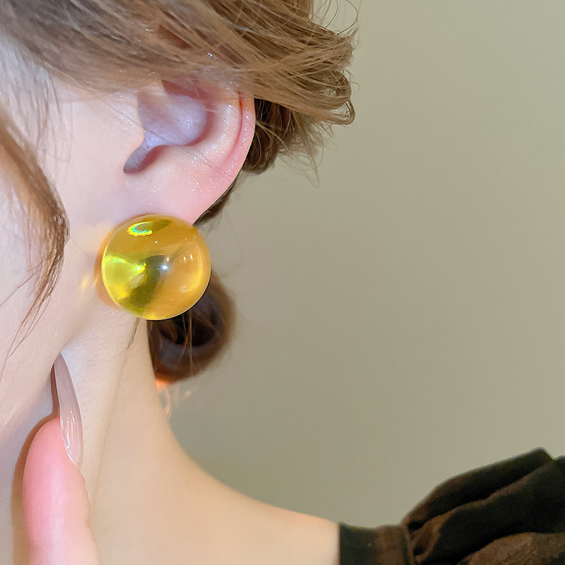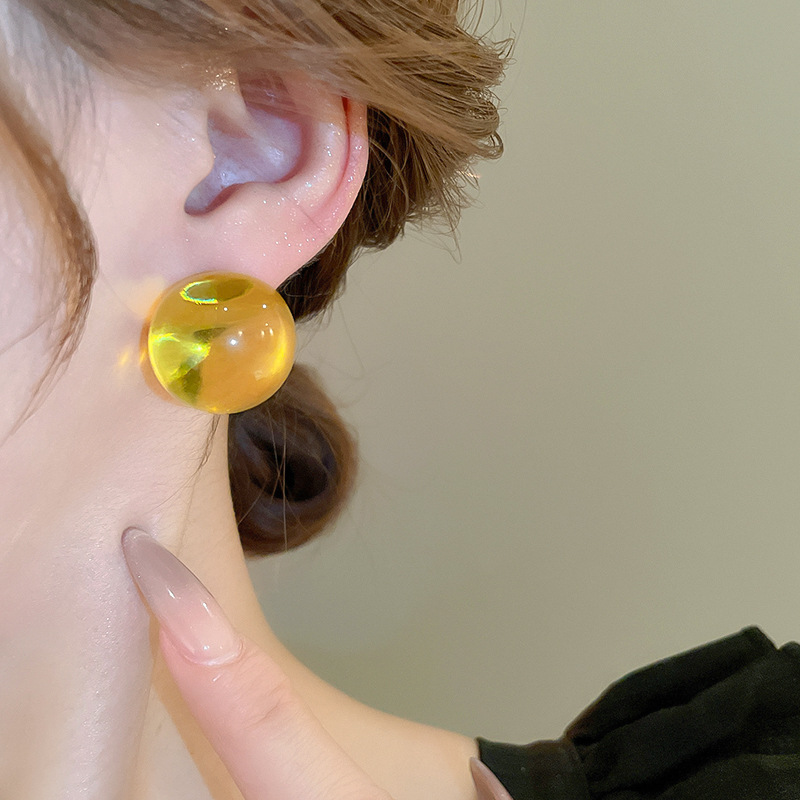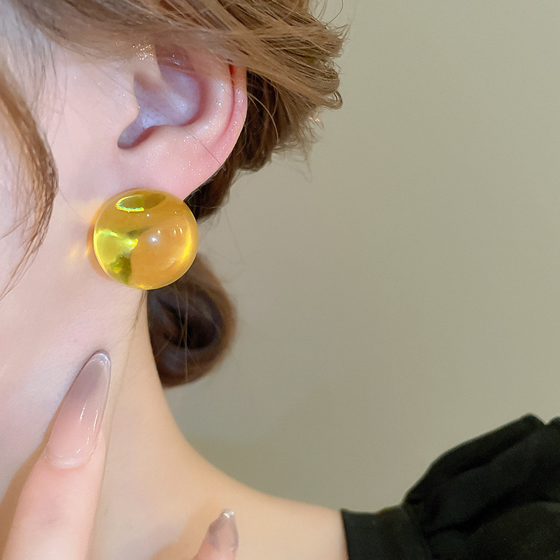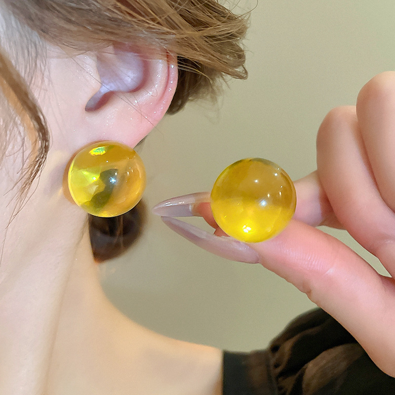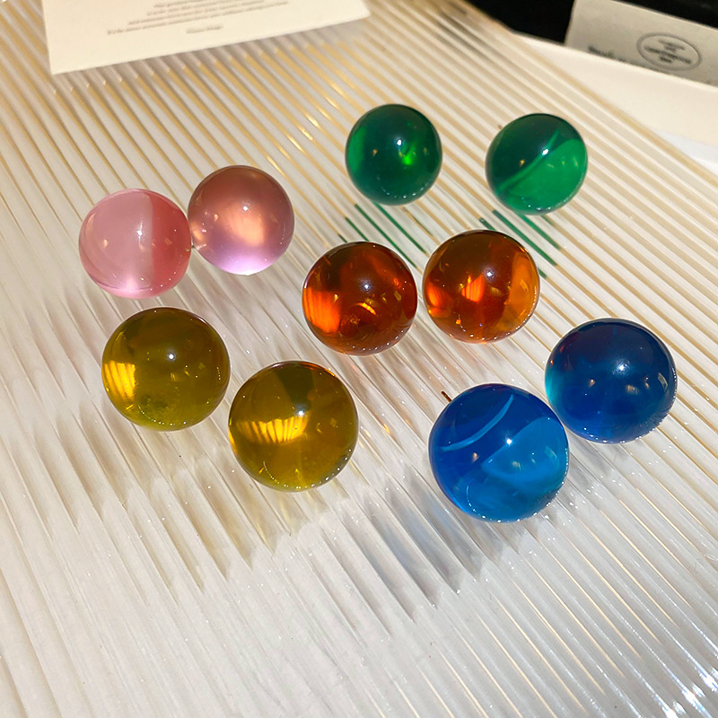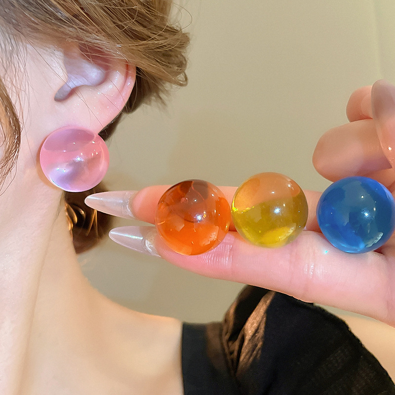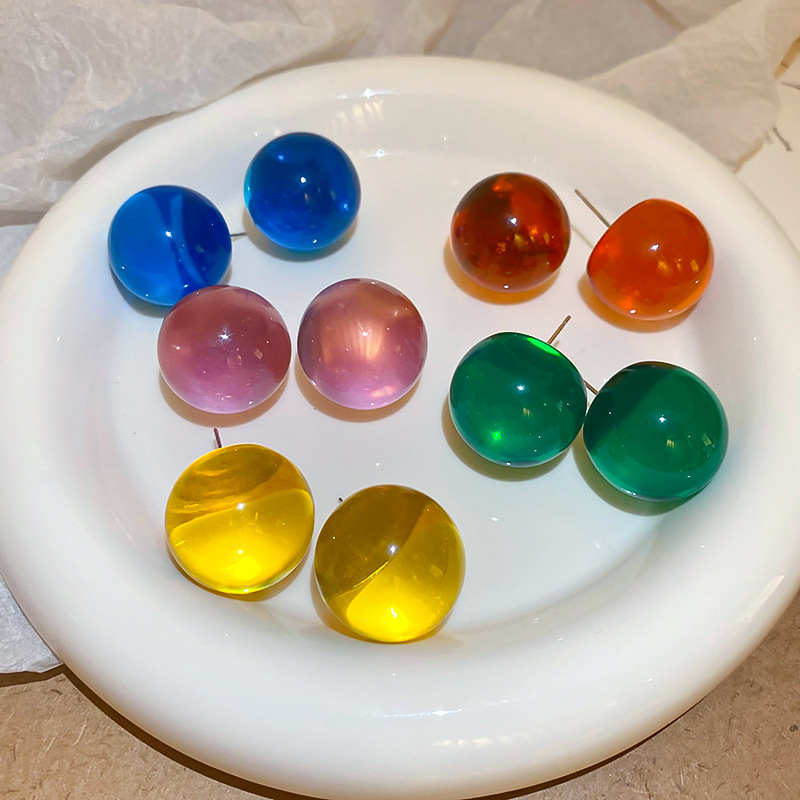 Pendientes de resina de bola transparente de color de dopamina de aguja de plata Pendientes de moda simple de estilo ins Pendientes de estilo literario femenino