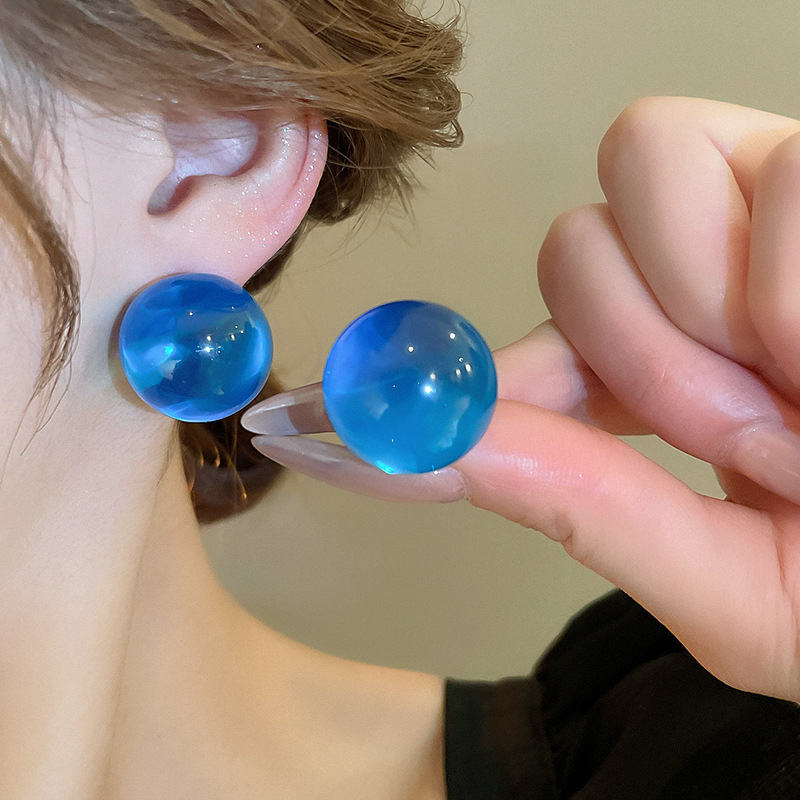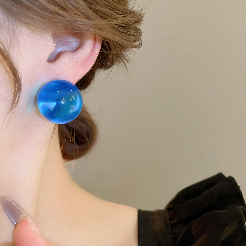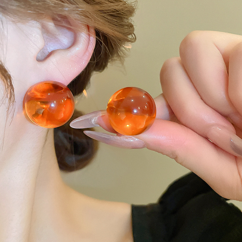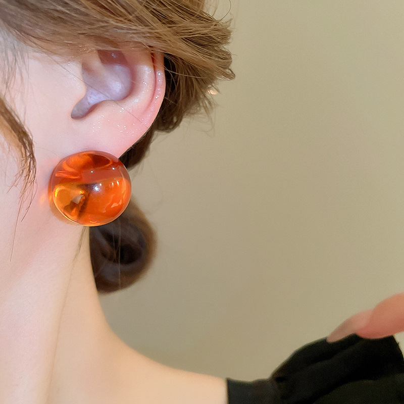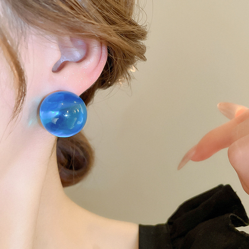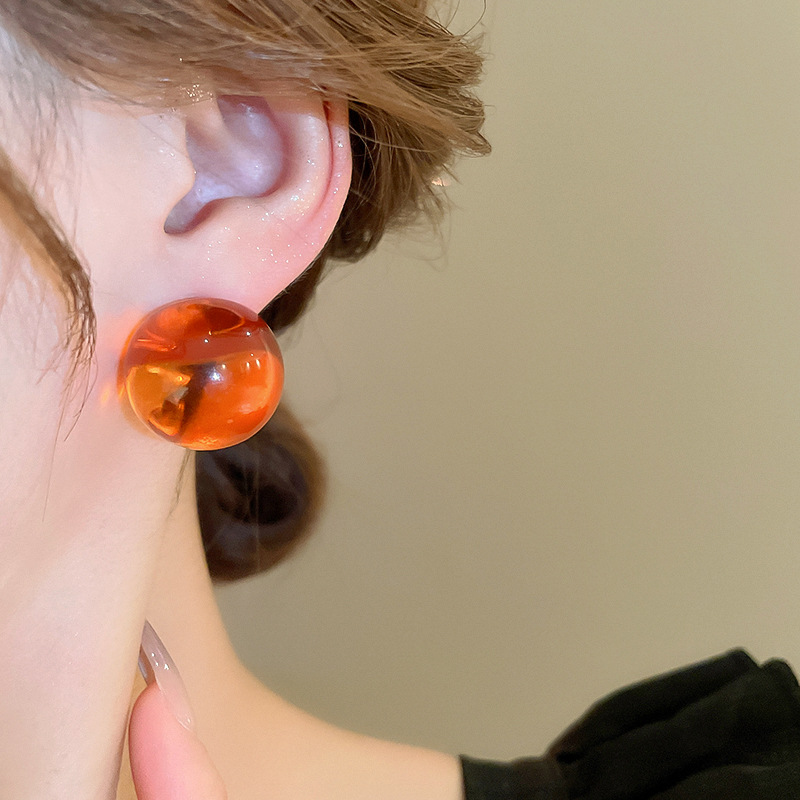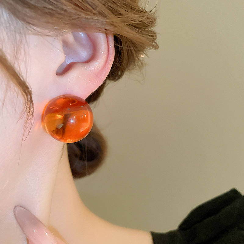 Pendientes de resina de bola transparente de color de dopamina de aguja de plata Pendientes de moda simple de estilo ins Pendientes de estilo literario femenino
