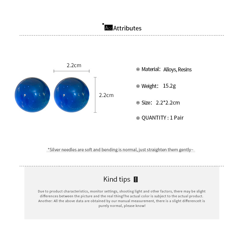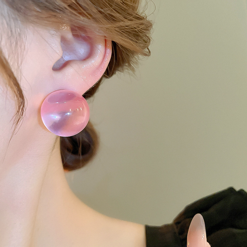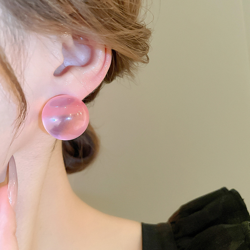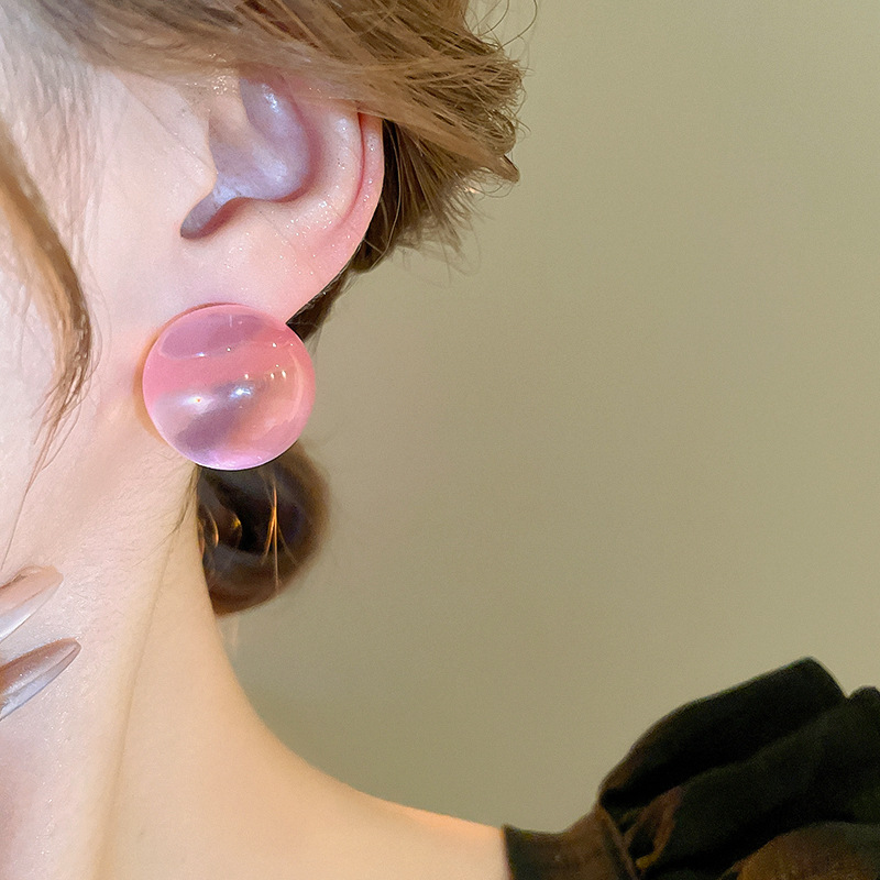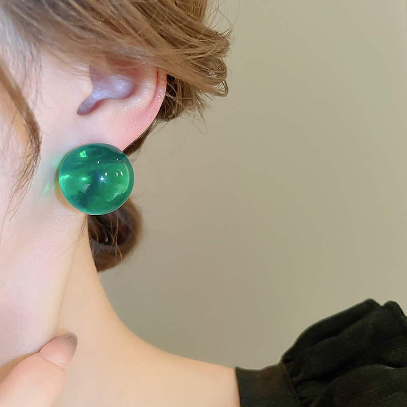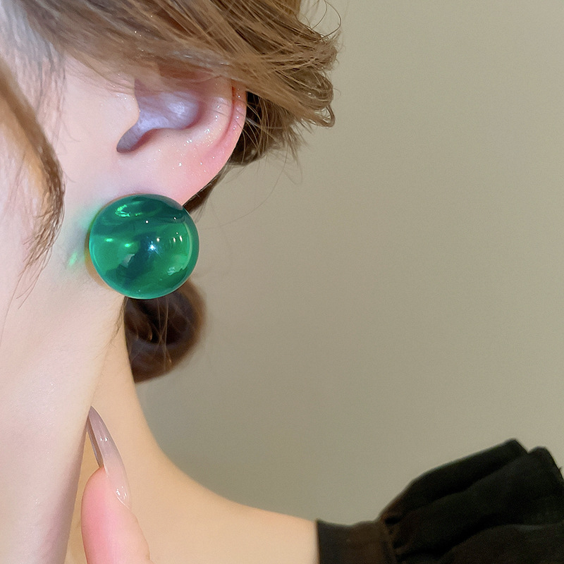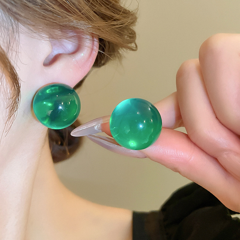 Pendientes de resina de bola transparente de color de dopamina de aguja de plata Pendientes de moda simple de estilo ins Pendientes de estilo literario femenino