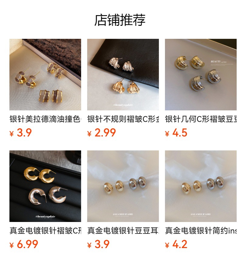 Pendientes geométricos en forma de C con pliegues de aguja de plata Pendientes simples de todo fósforo de nicho retro europeo y americano Pendientes de lujo ligero de alta gama mujeres
