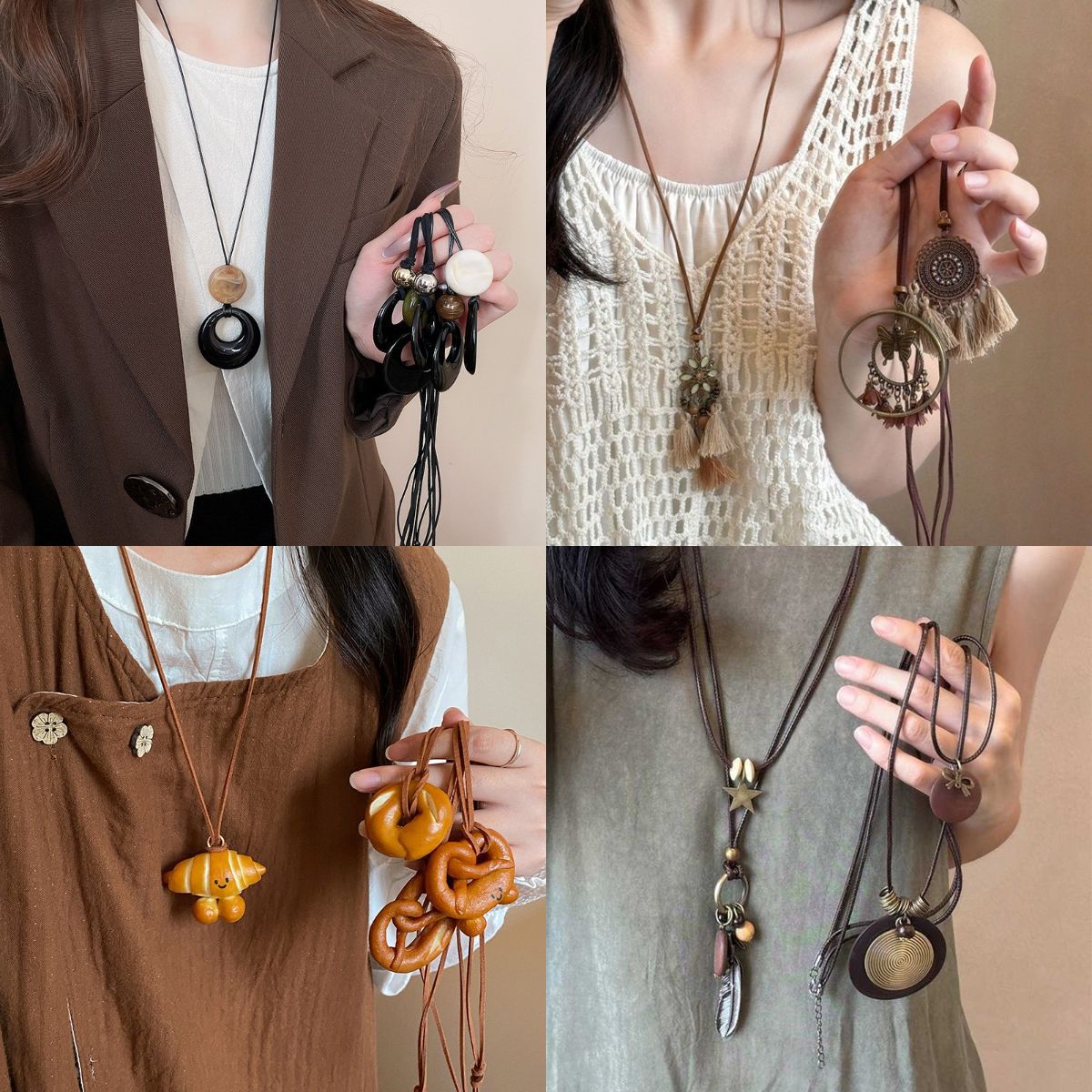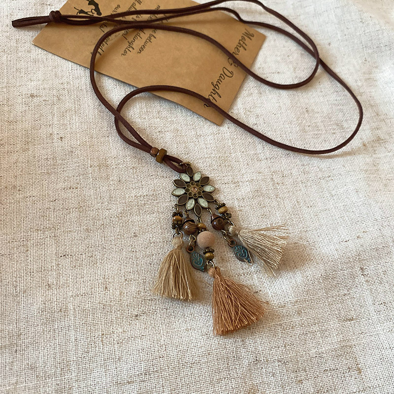 Nuevo estilo de cuero chino, colgante, collar de borlas, estilo étnico femenino, cadena de suéter retro de nicho, moda, artículos de alta gama