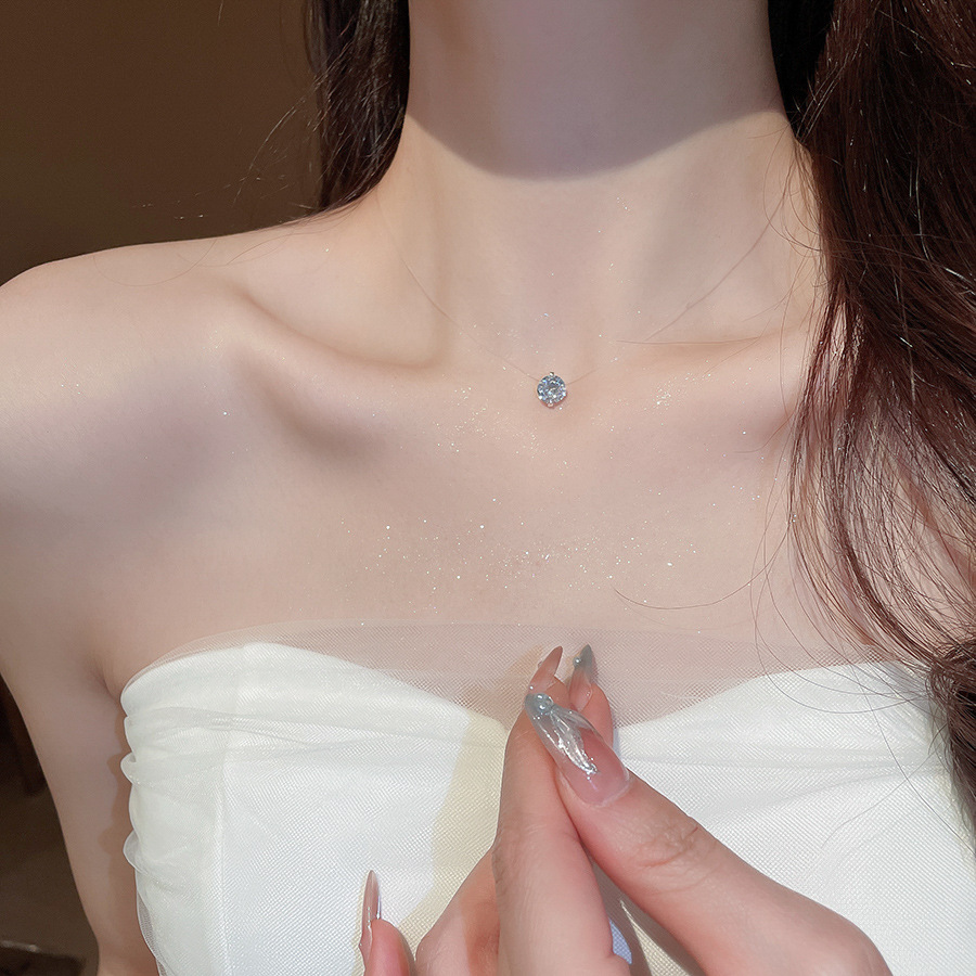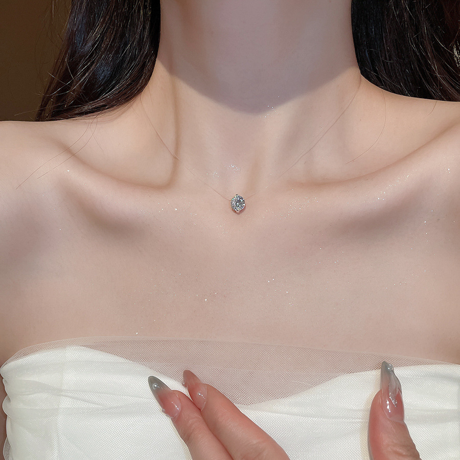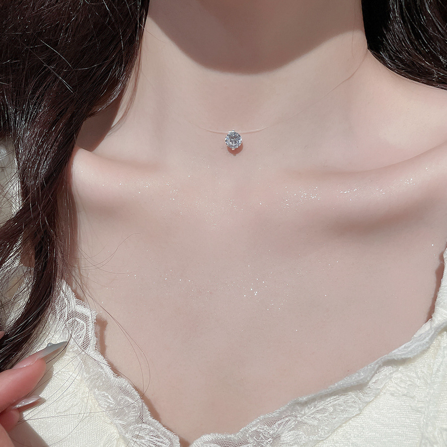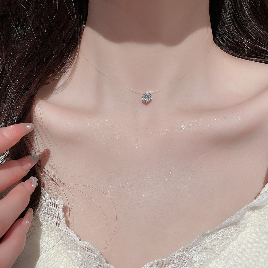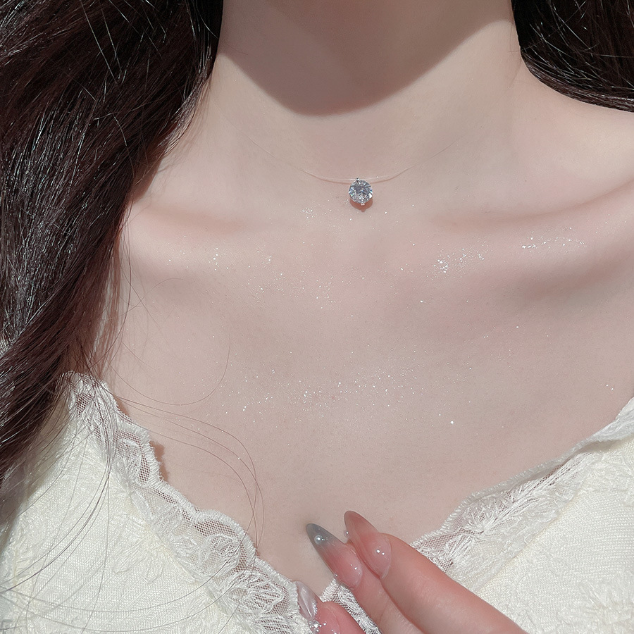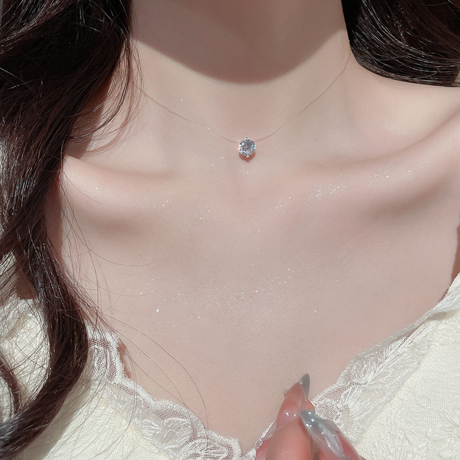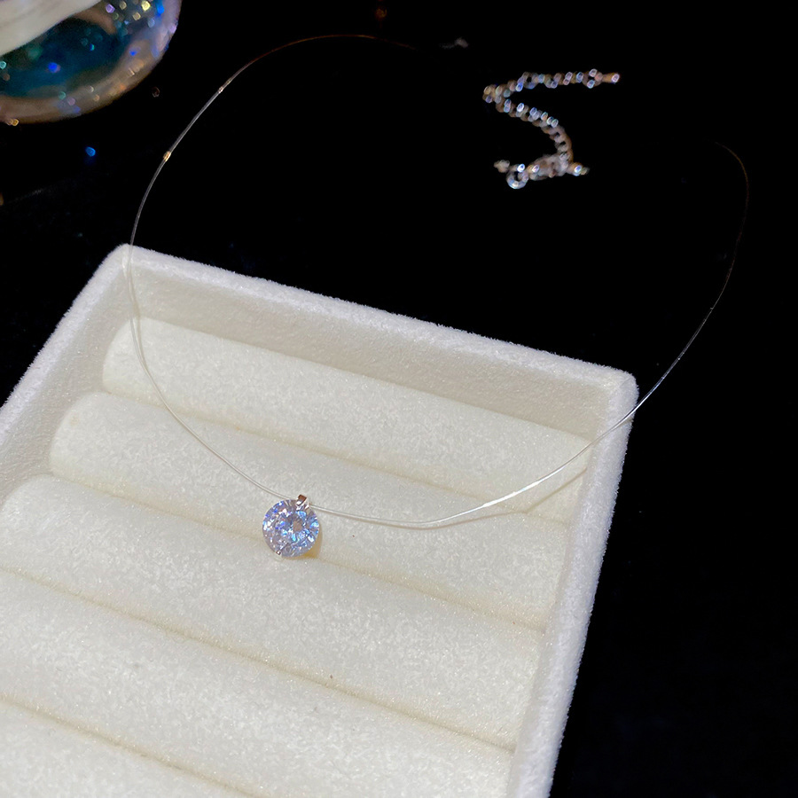 Collar con colgante redondo de circón, nicho femenino, diseño simple, cadena de clavícula, lujo ligero, collar de temperamento de alta gama al por mayor