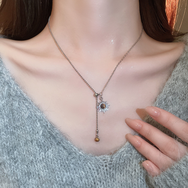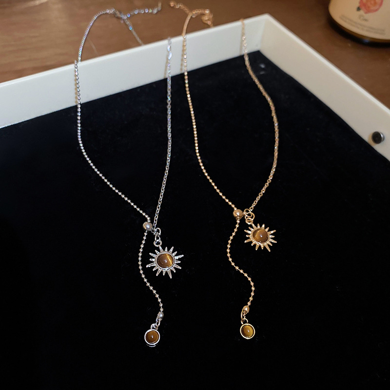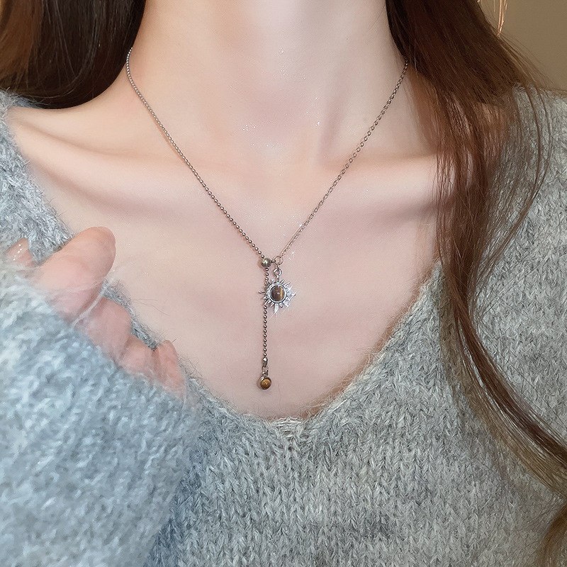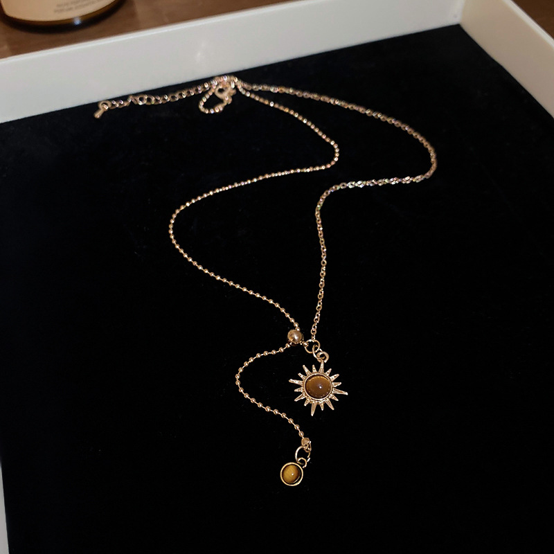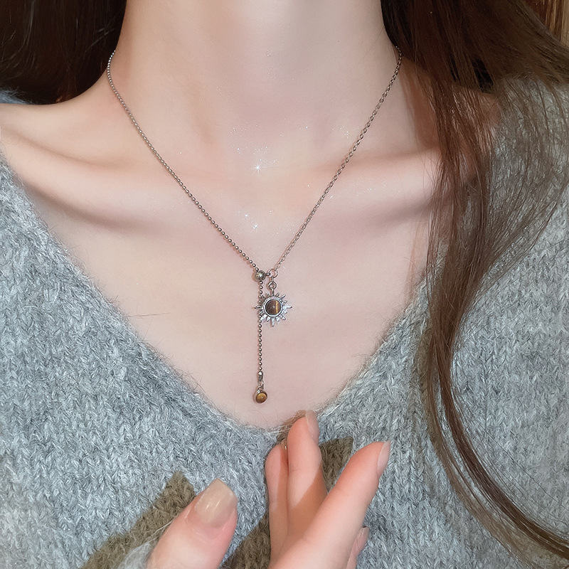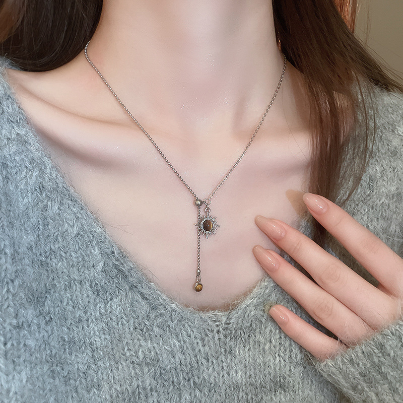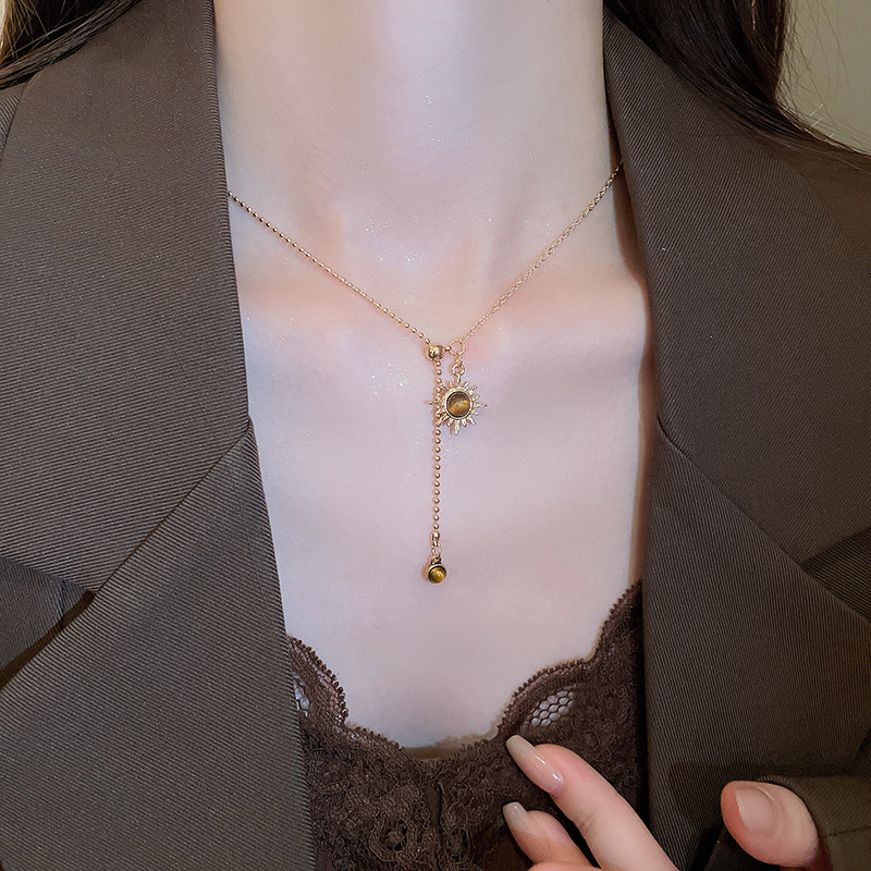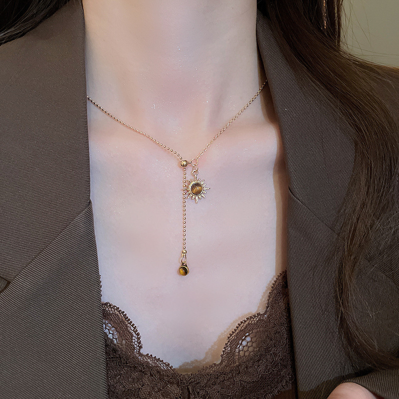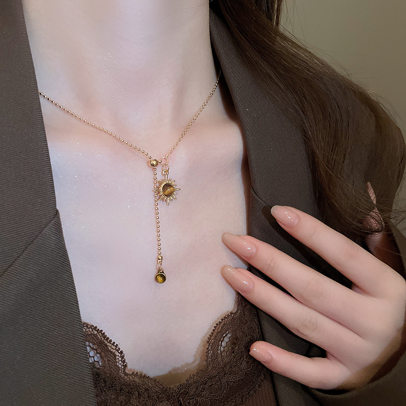 Collar colgante de girasol estilo ojo de tigre, cadena de clavícula de temperamento de lujo ligero, personalidad de estilo antiguo, joyería de cadena de cuello de sentido avanzado