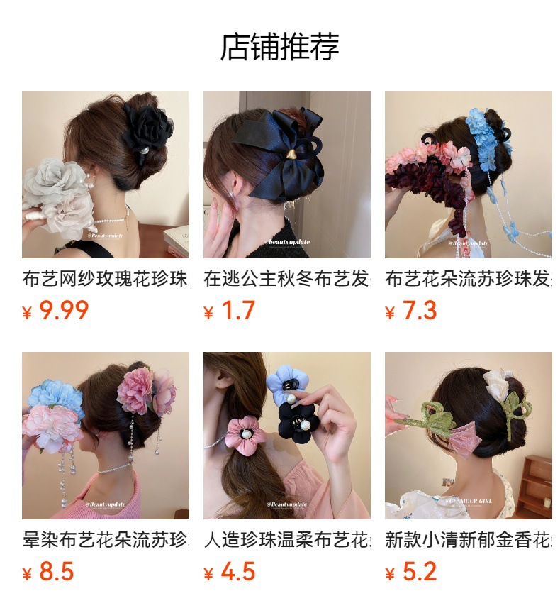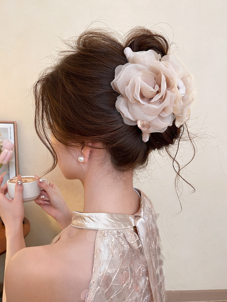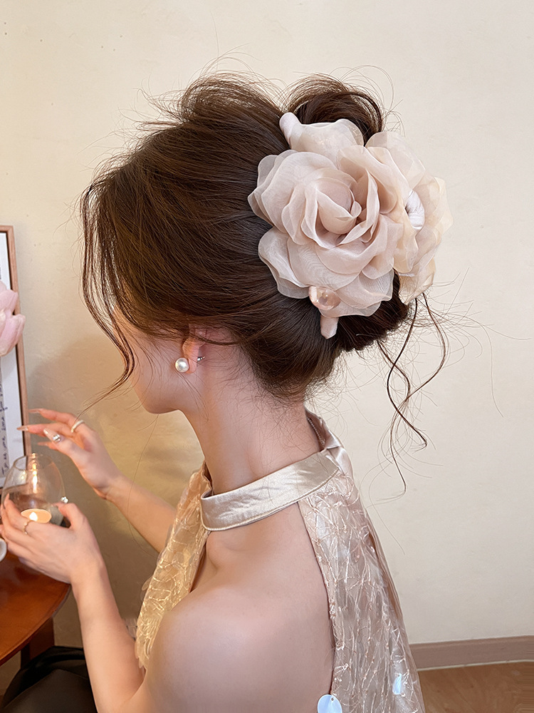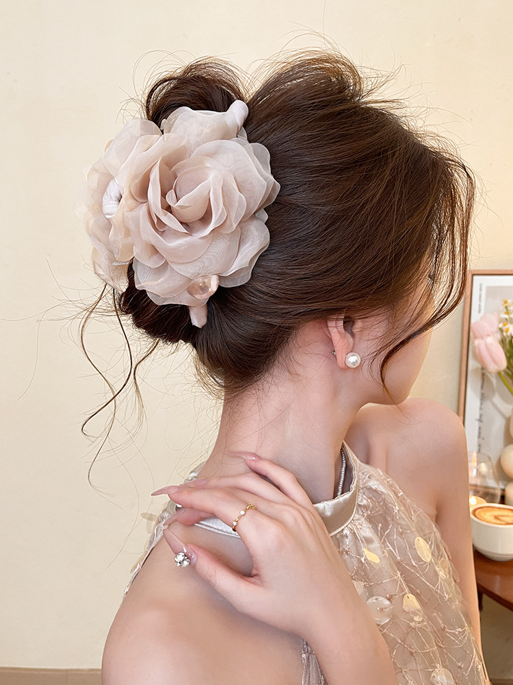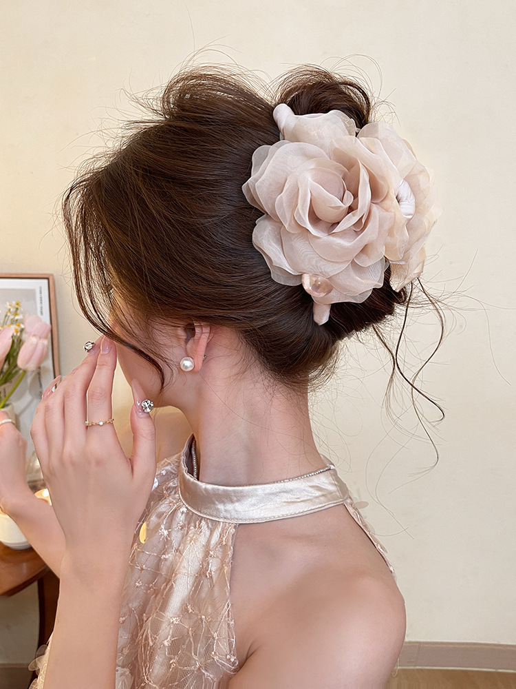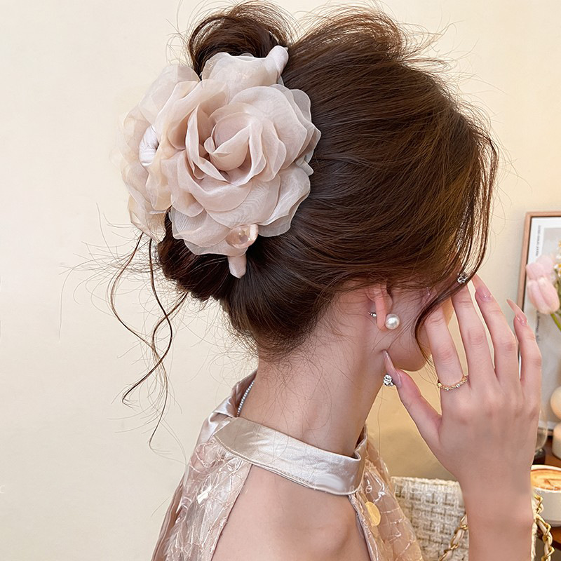 Hilo de malla de tela pinza para el cabello de perlas de flor de rosa sensación de alta calidad, pinza para el cabello de tiburón, pinza de agarre de todo fósforo de moda, accesorios para el cabello