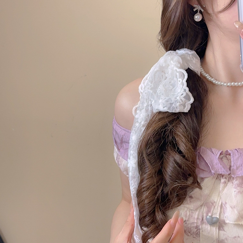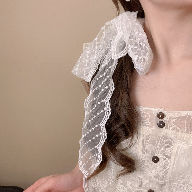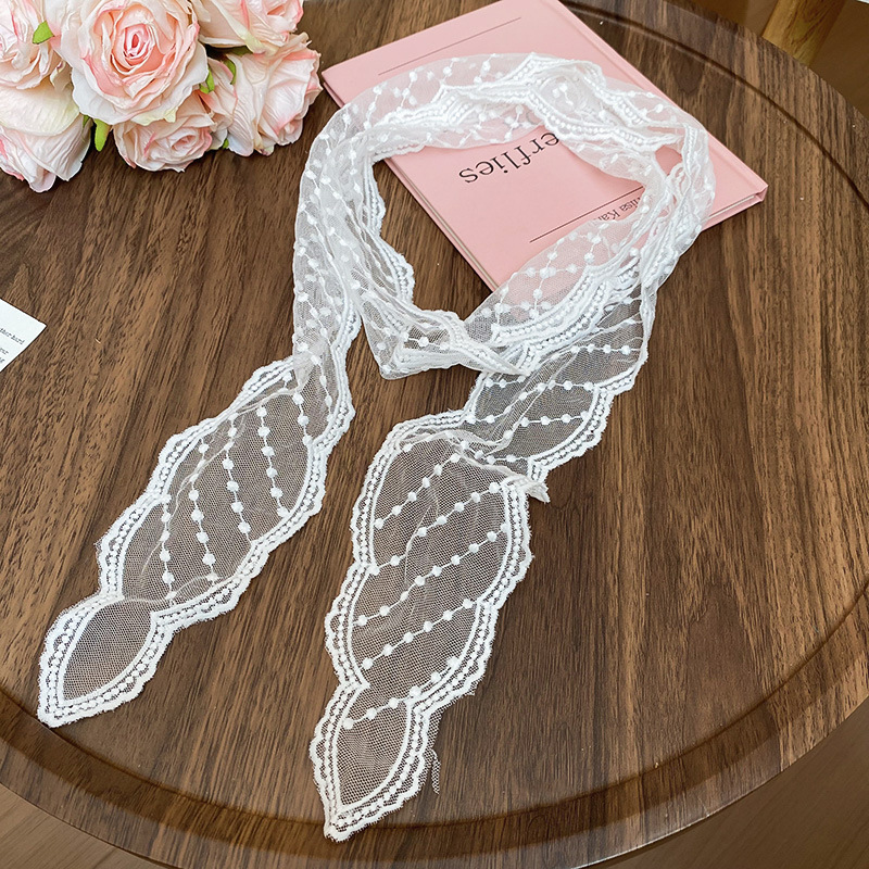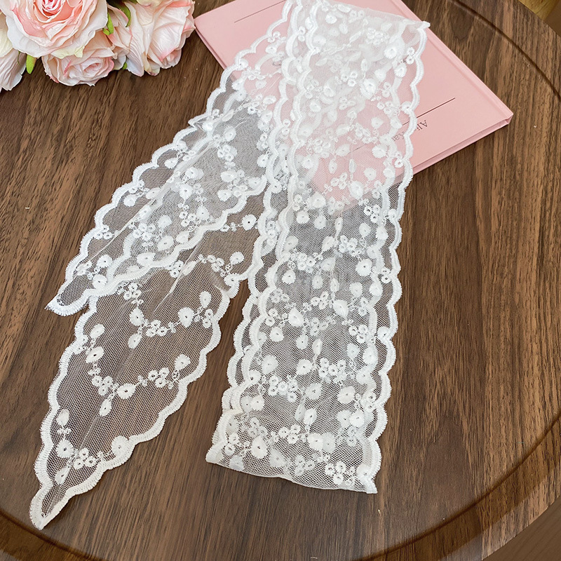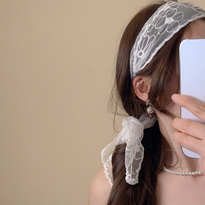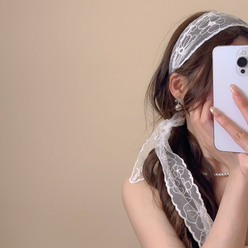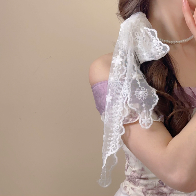 Versión coreana de la bufanda de seda bordada de encaje, banda para el cabello, lazo para el cabello casual de temperamento salvaje, tocado de vacaciones de moda, accesorios para el cabello, sentido de alta gama