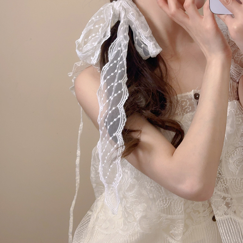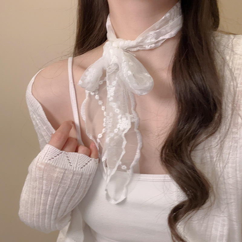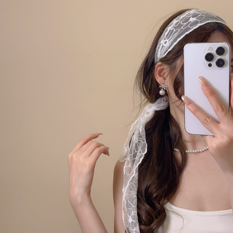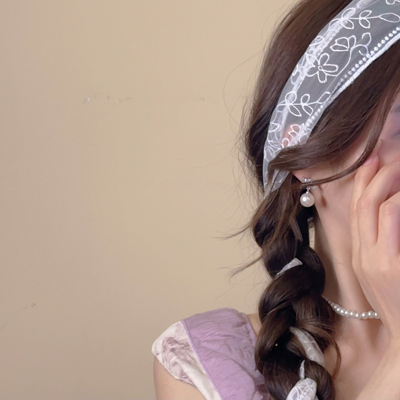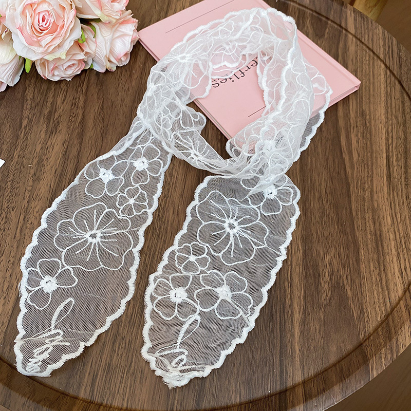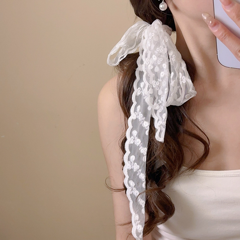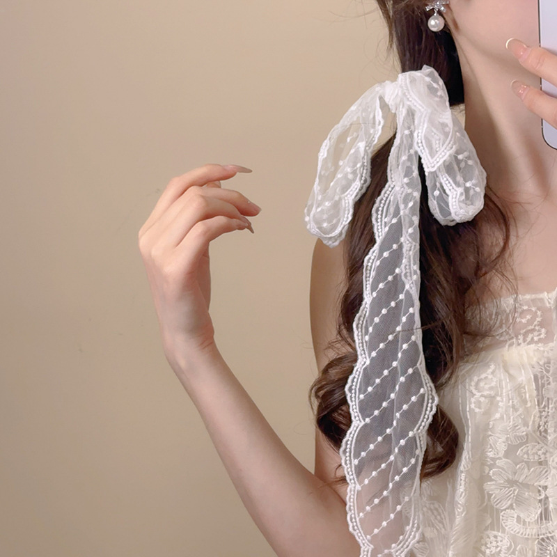 Versión coreana de la bufanda de seda bordada de encaje, banda para el cabello, lazo para el cabello casual de temperamento salvaje, tocado de vacaciones de moda, accesorios para el cabello, sentido de alta gama