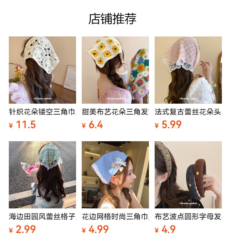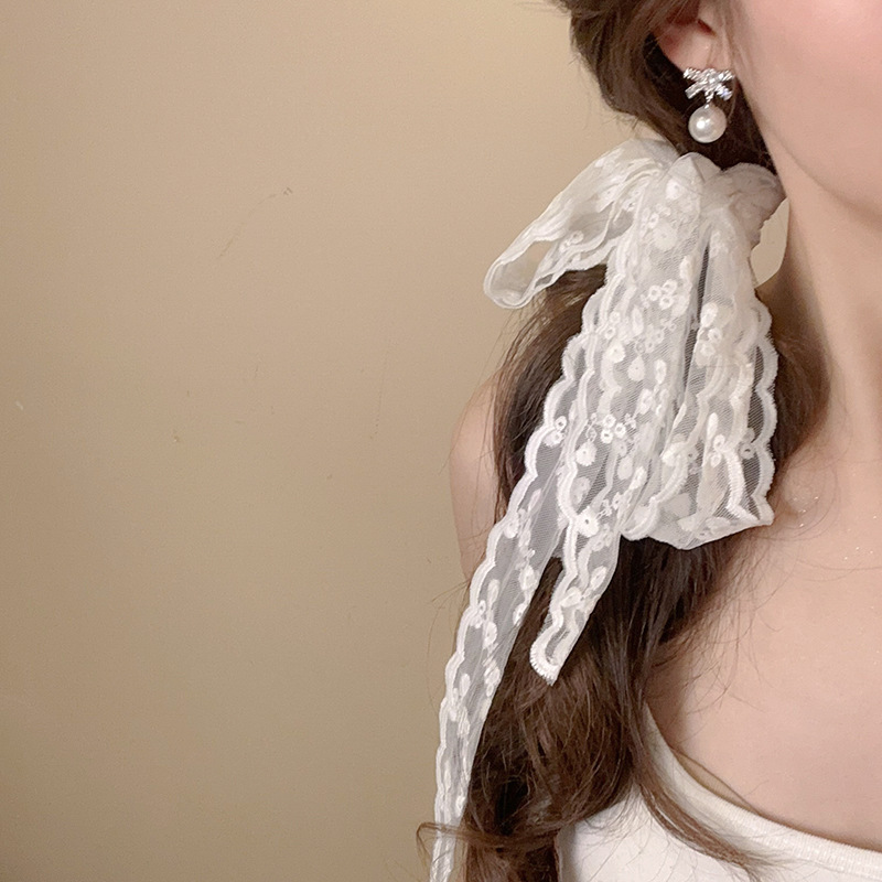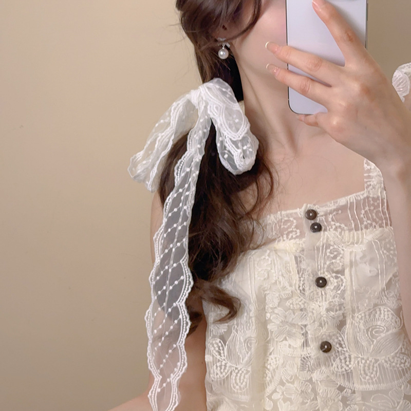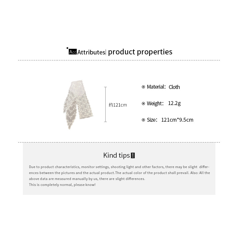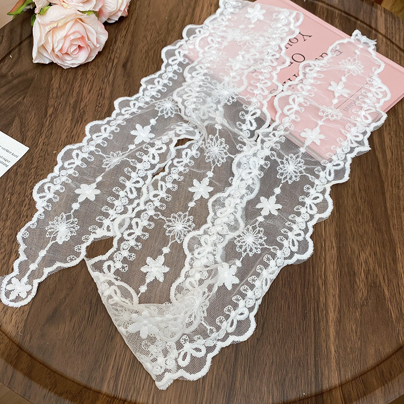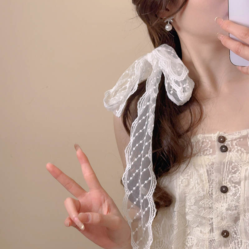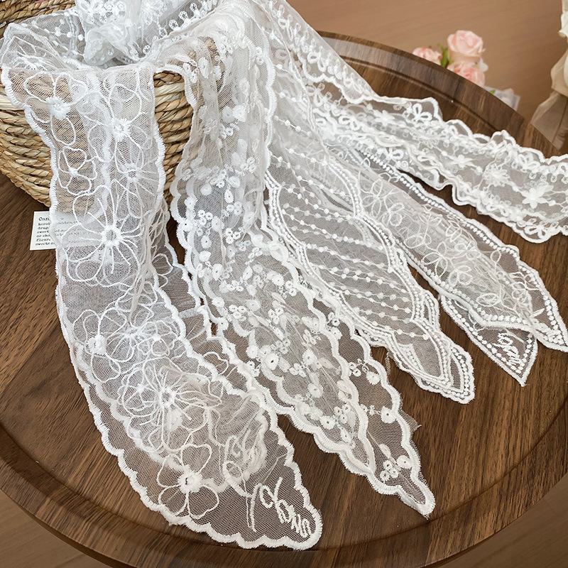 Versión coreana de la bufanda de seda bordada de encaje, banda para el cabello, lazo para el cabello casual de temperamento salvaje, tocado de vacaciones de moda, accesorios para el cabello, sentido de alta gama
