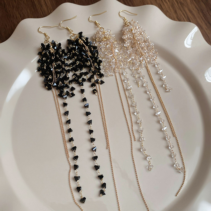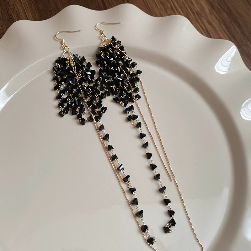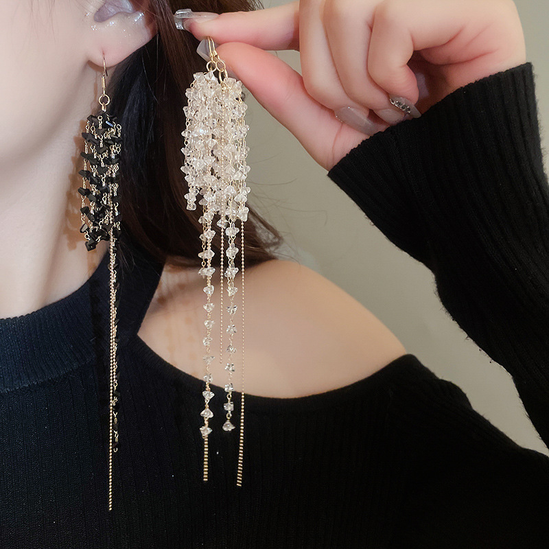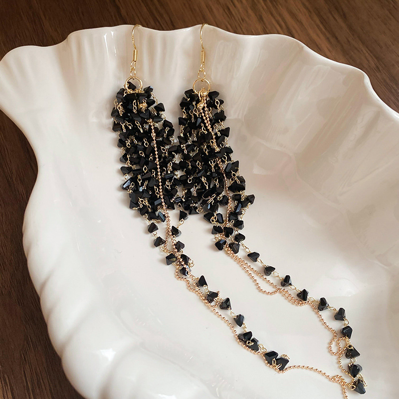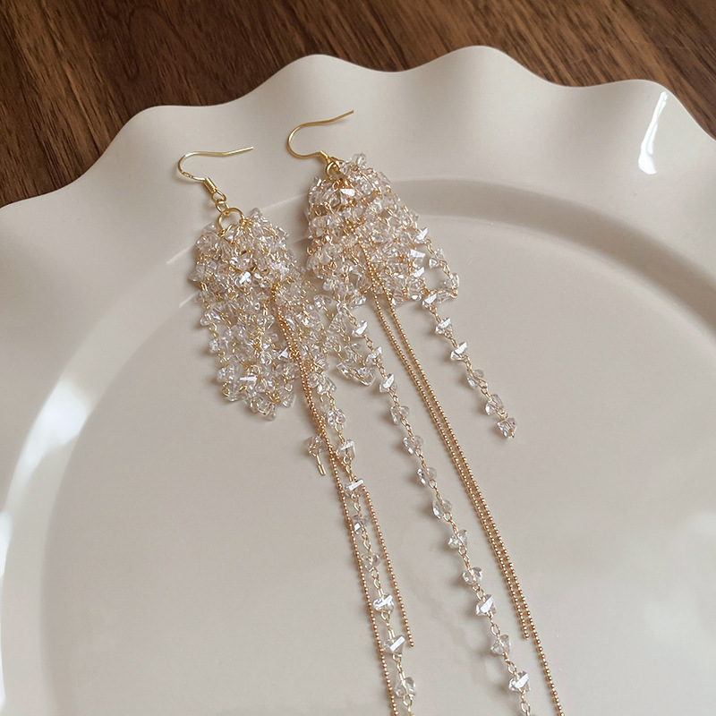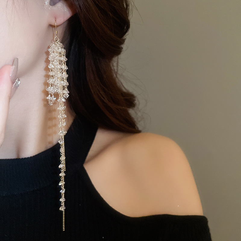 Pendientes de borla de cuentas de vidrio de súper hadas Pendientes de personalidad de temperamento de moda Pendientes de diseño exagerado de nicho Sentido de lujo ligero