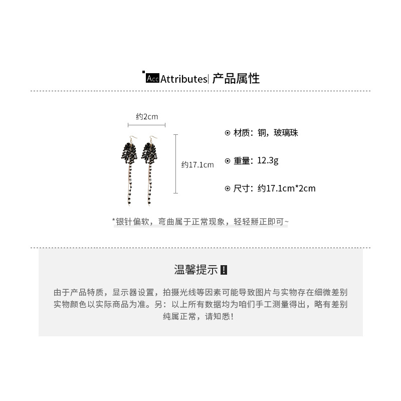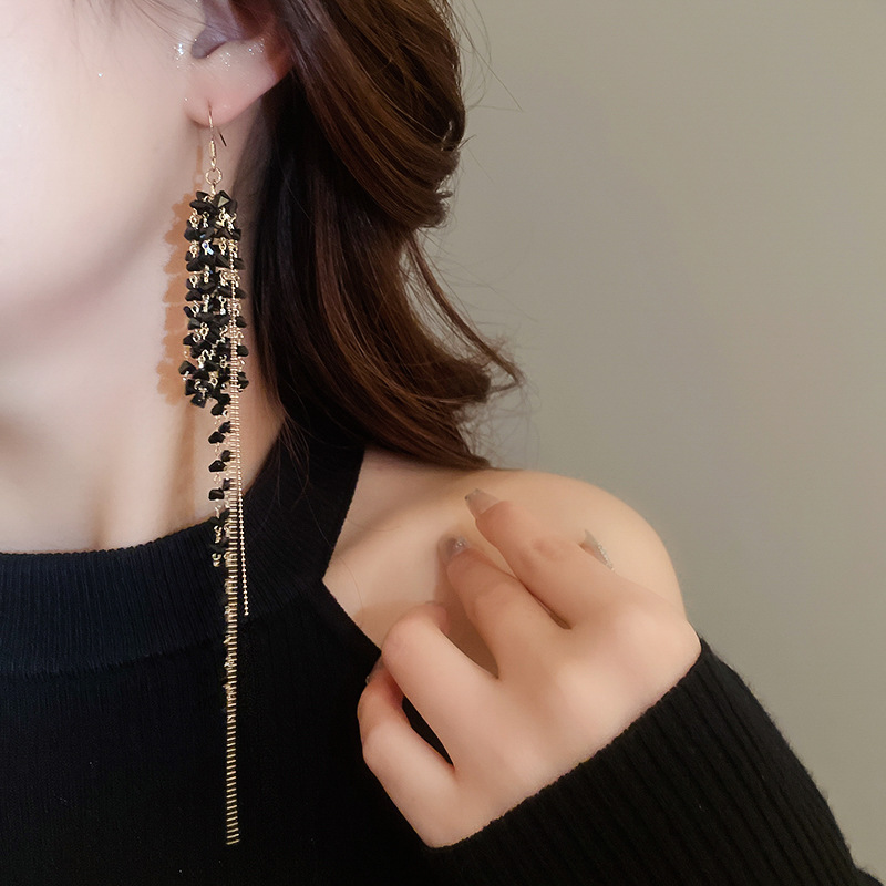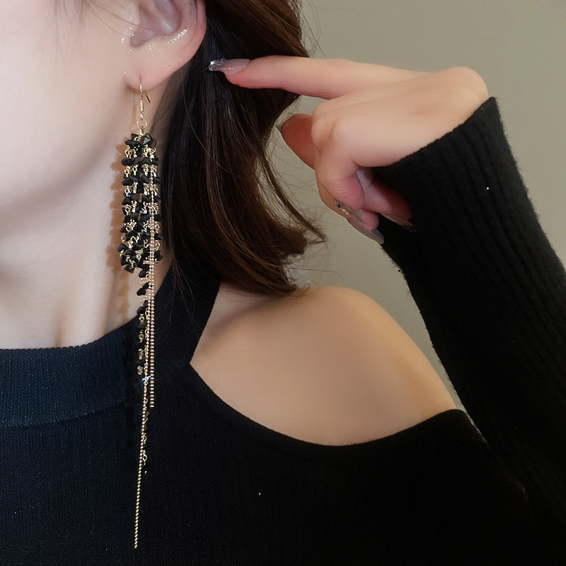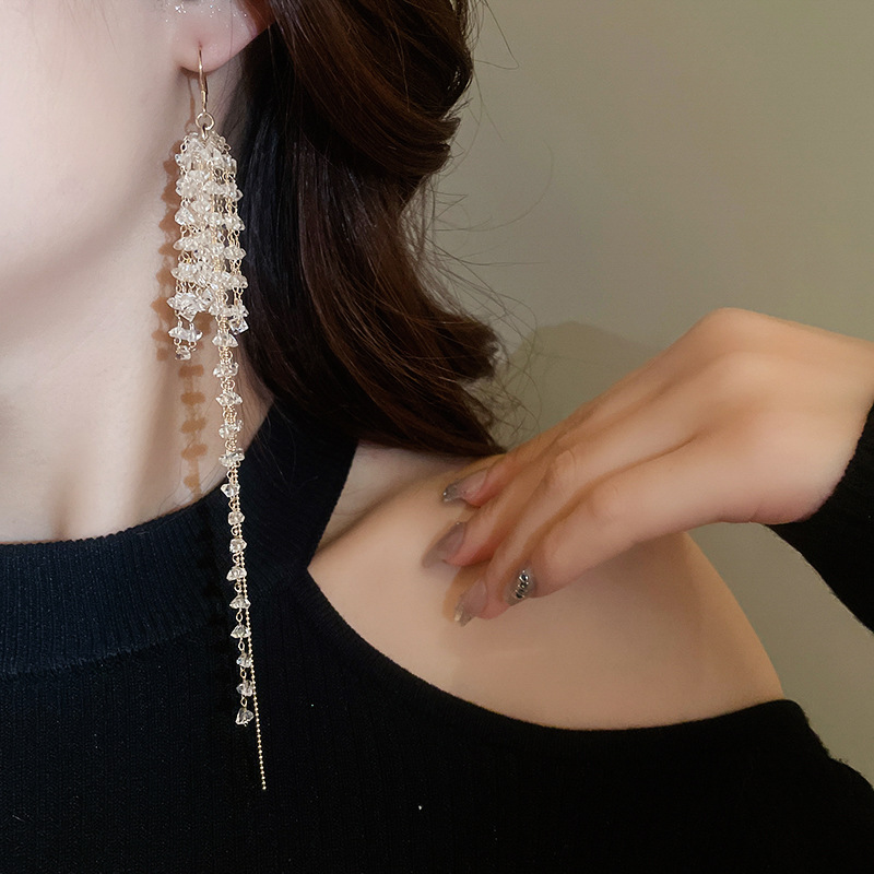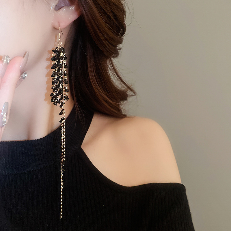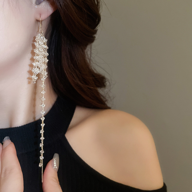 Pendientes de borla de cuentas de vidrio de súper hadas Pendientes de personalidad de temperamento de moda Pendientes de diseño exagerado de nicho Sentido de lujo ligero