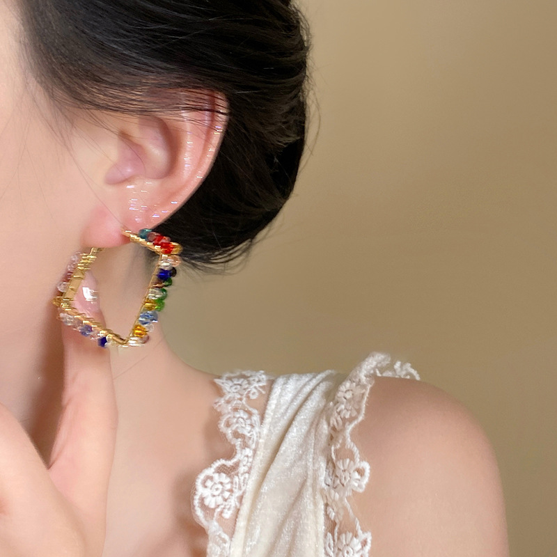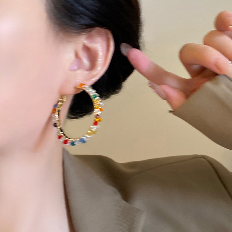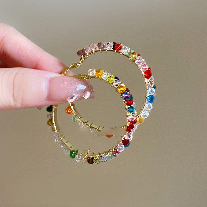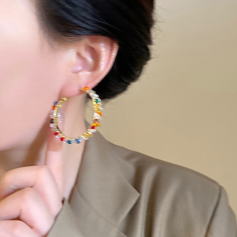 Pendientes enrollados de cristal redondo de color de aguja de plata Pendientes pequeños y frescos de moda coreana Pendientes de temperamento Diseño de nicho
