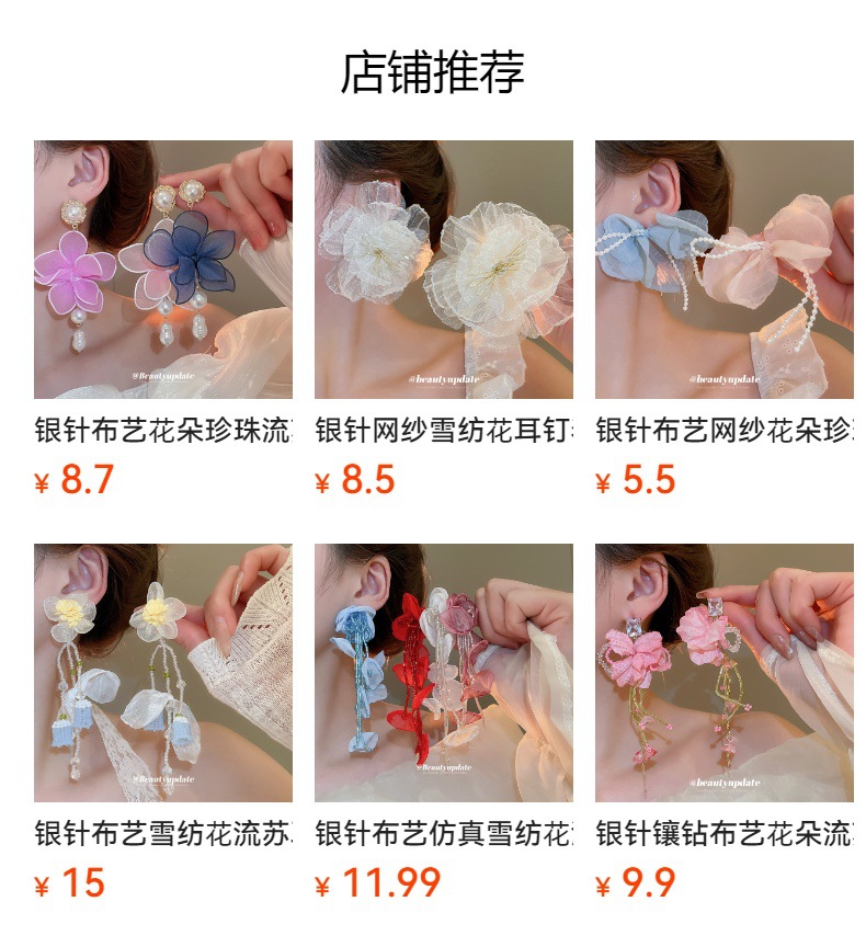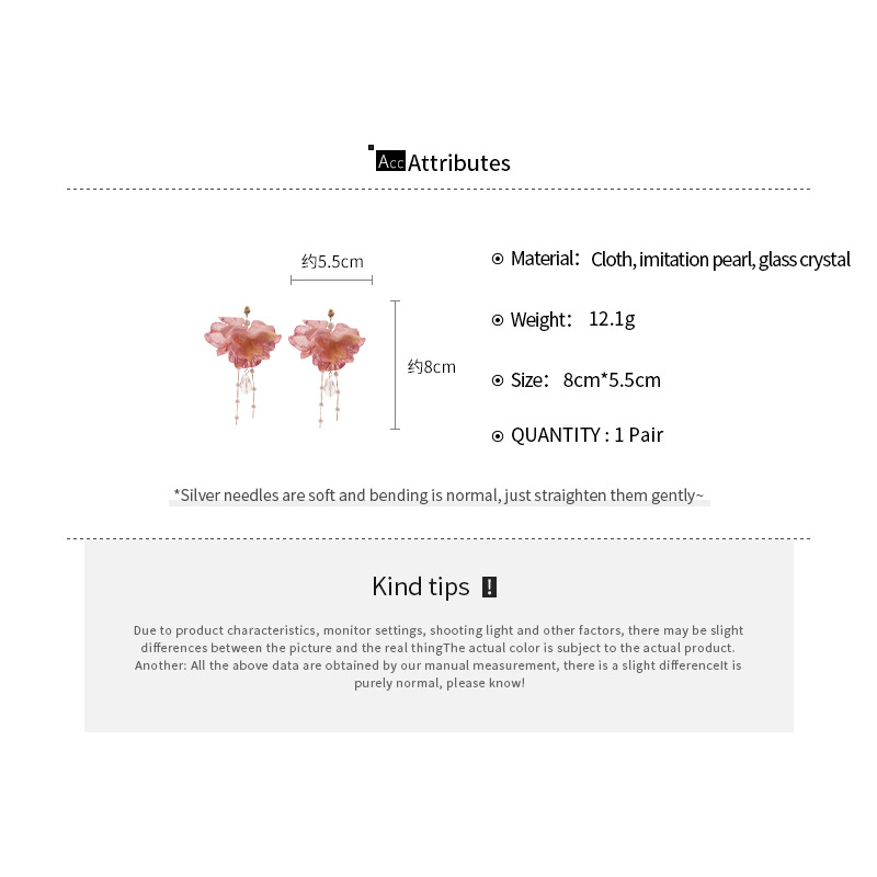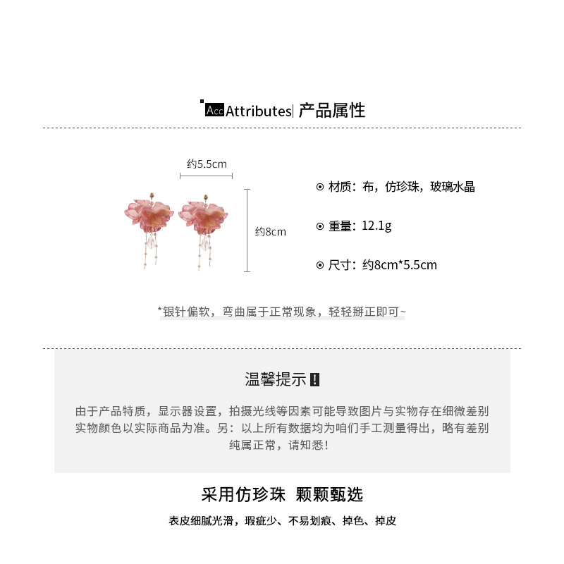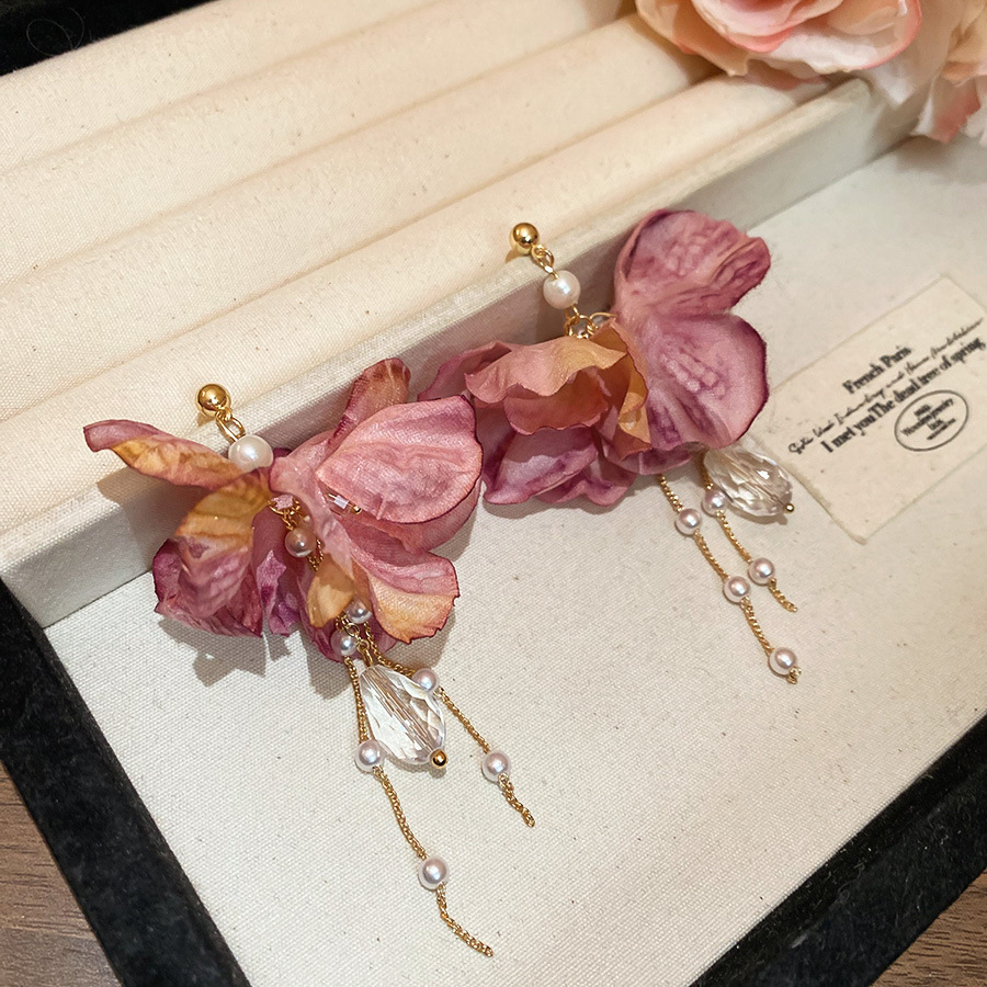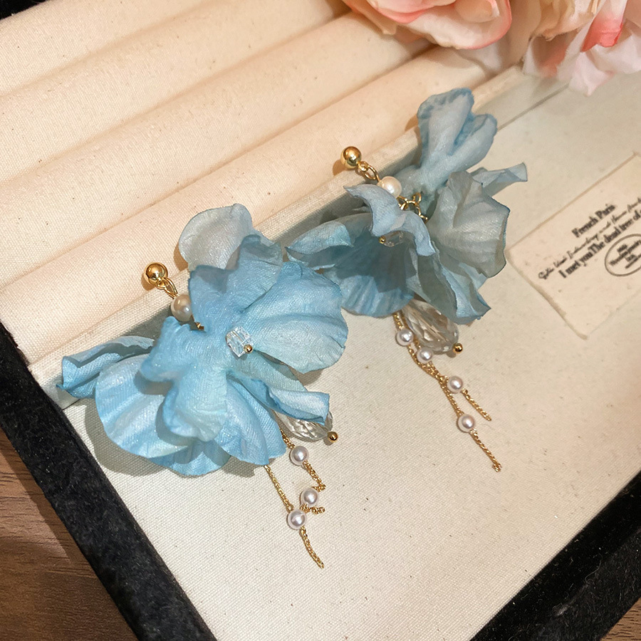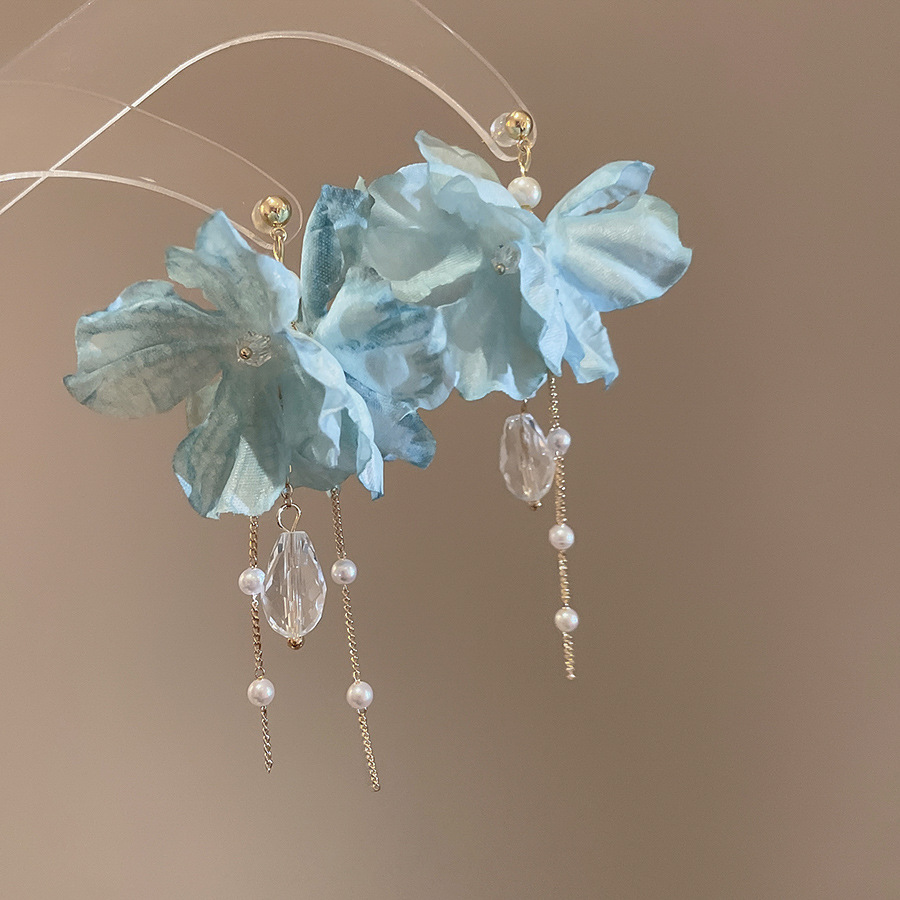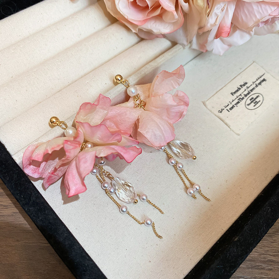 Pendientes de perla de cristal de cristal de flor de tela de aguja de plata Pendientes de todo fósforo de temperamento suave Pendientes de lujo ligero de alta gama