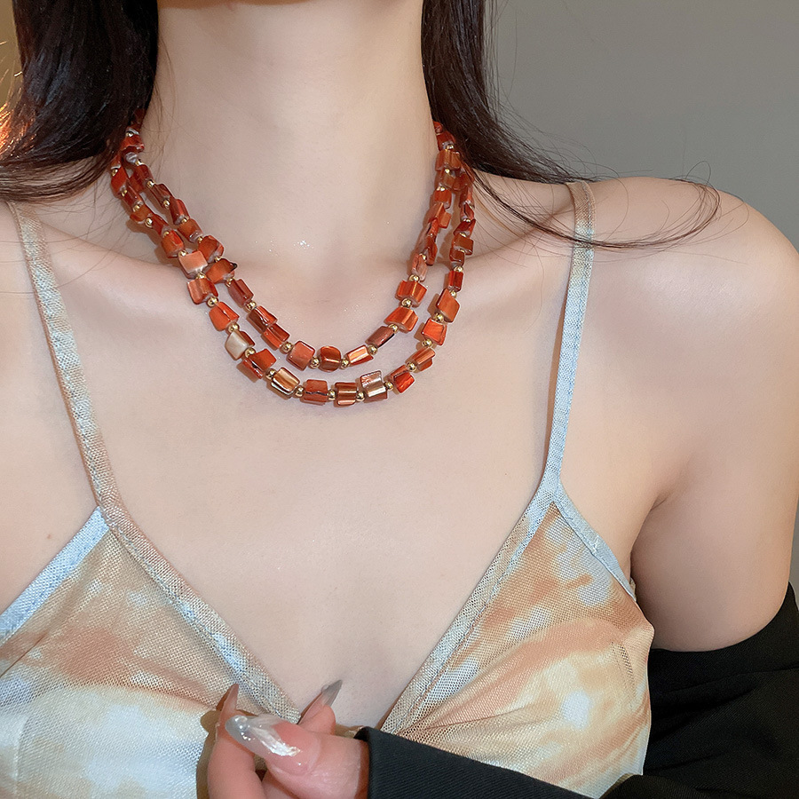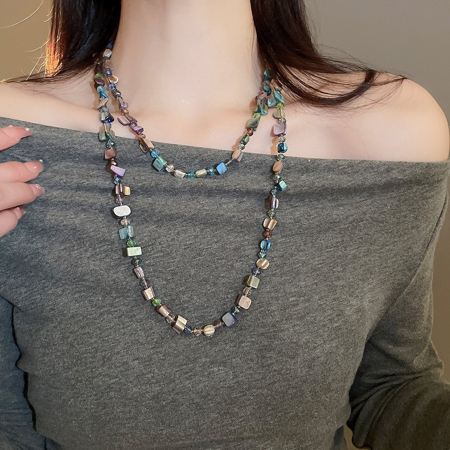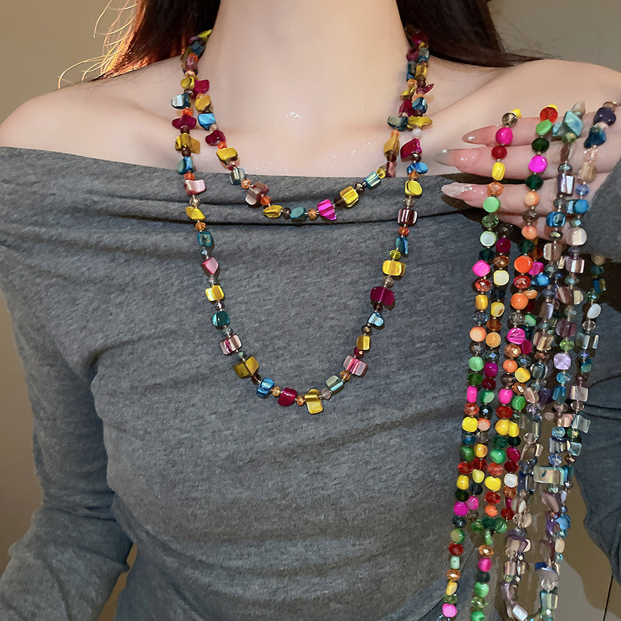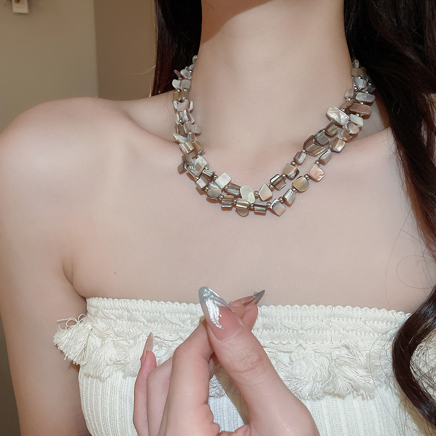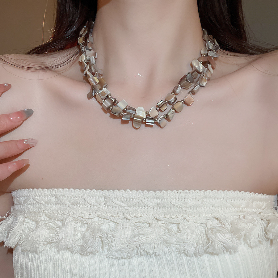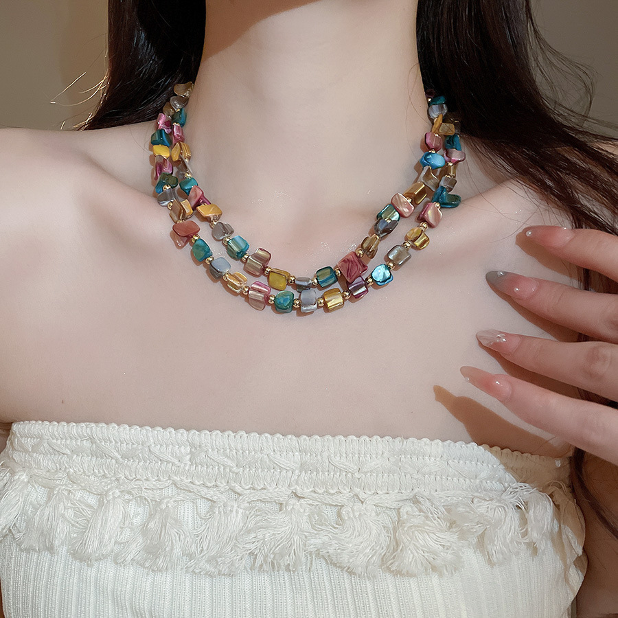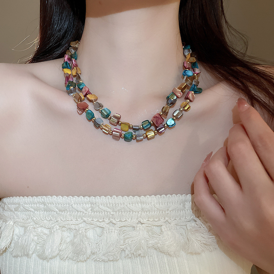 Collar con cuentas de concha de color irregular de verano Cadena de clavícula salvaje retro europea y americana