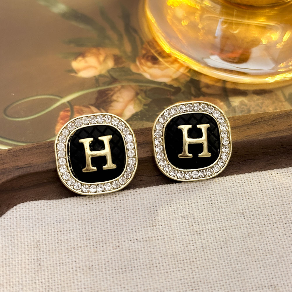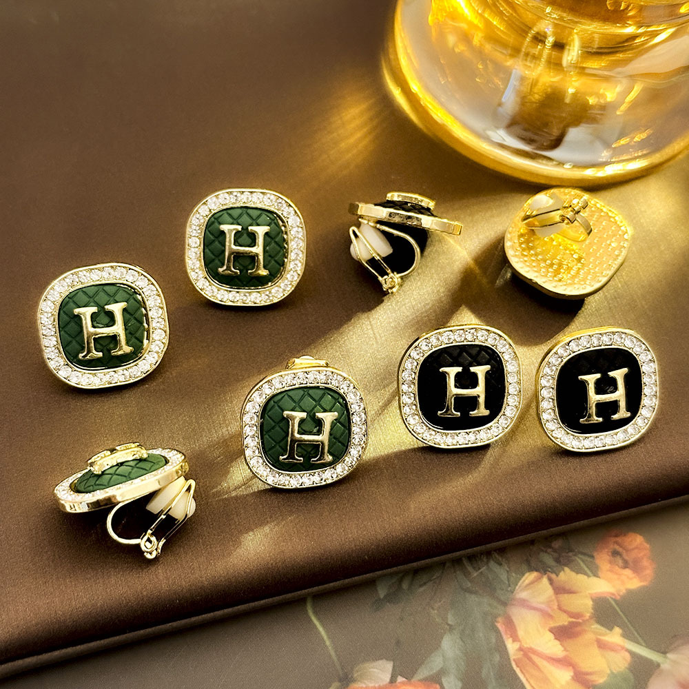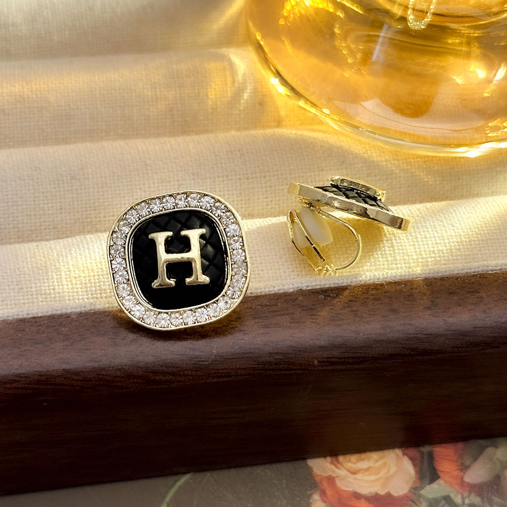Pendientes de letras H geométricas con incrustaciones de diamantes de fragancia pequeña, pendientes de alta calidad indoloros sin agujeros para las orejas, pendientes de temperamento de moda de lujo ligero